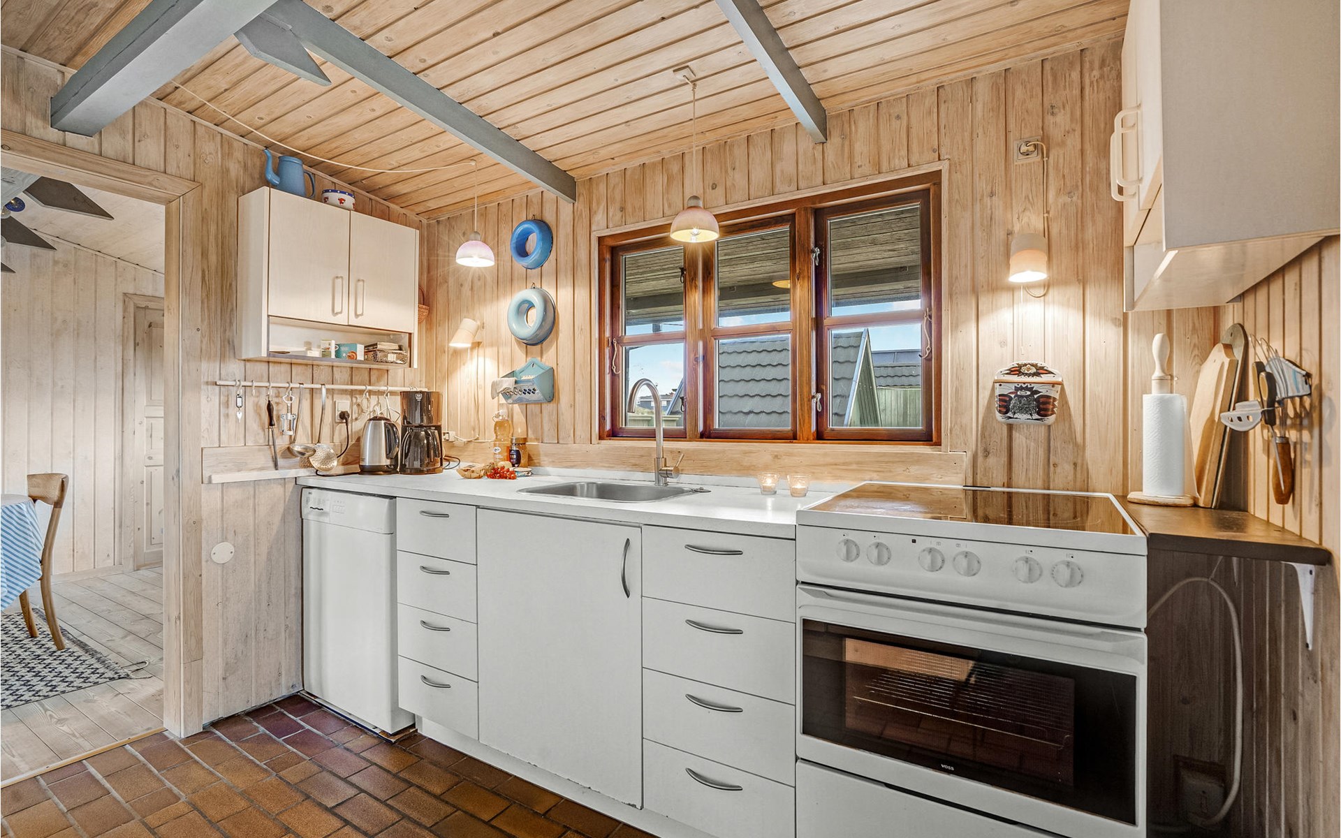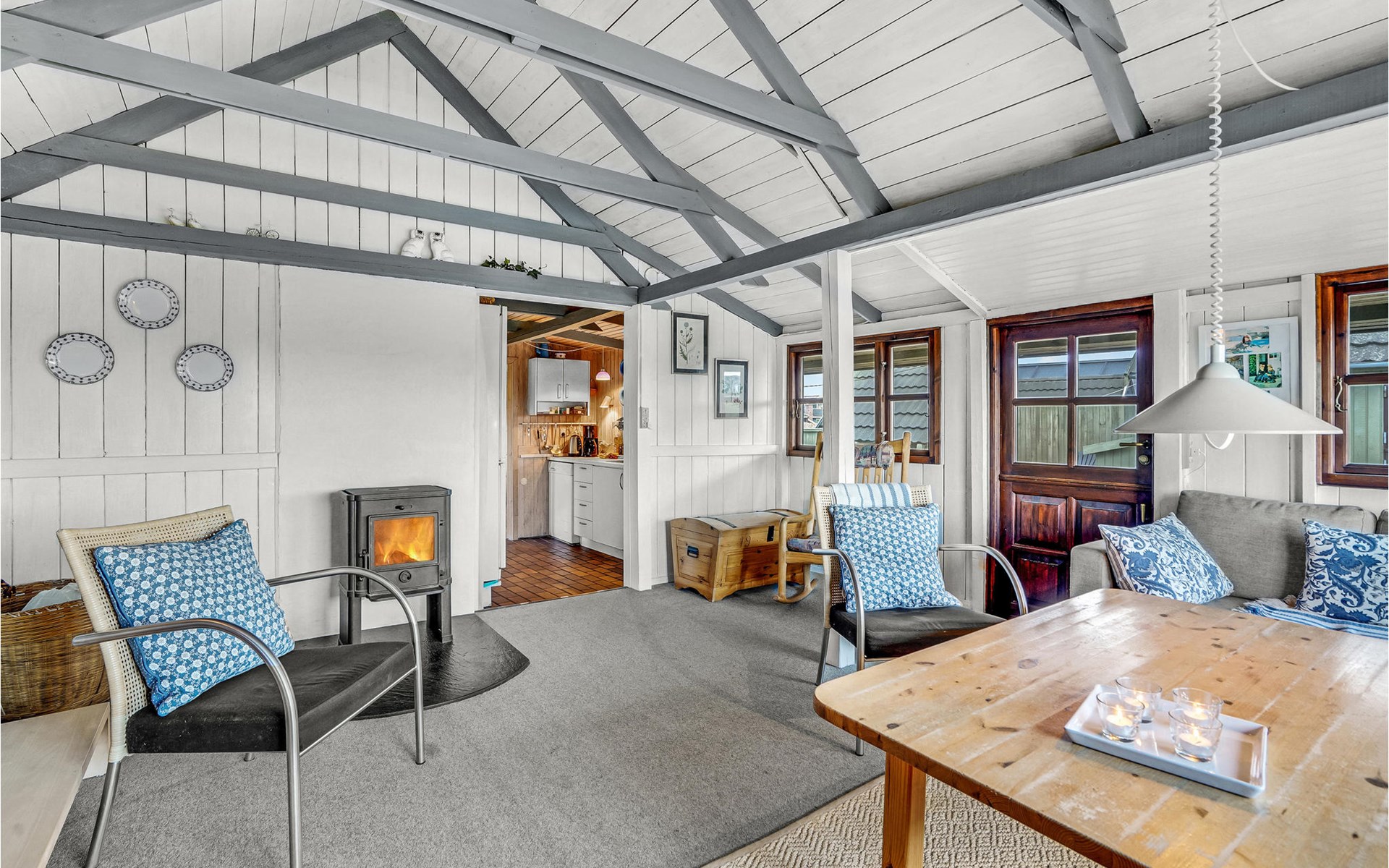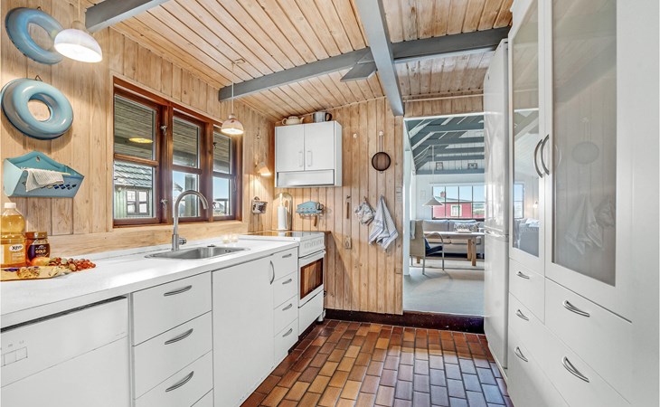 Your holiday home in Rindby is open and inviting and is classically furnished. Here you can enjoy the charming atmosphere and the pleasant light coming in through the mullioned windows while you warm up in front of the wood-burning stove after a long walk. In the spacious kitchen there is plenty of room for culinary projects, while your children can have fun with board games or puzzles at the dining table. The house also has an enclosed courtyard between the holiday home and the outbuilding.