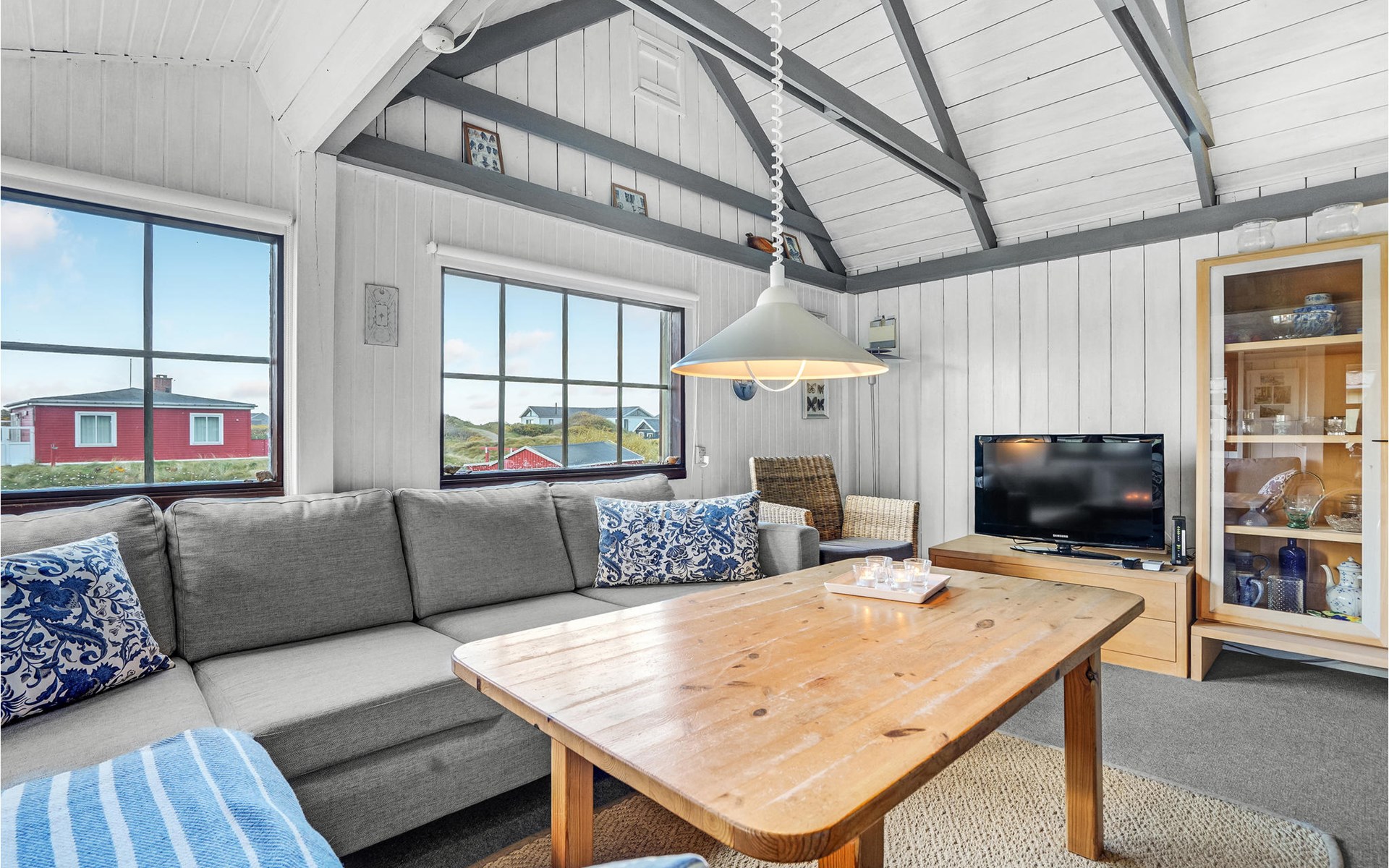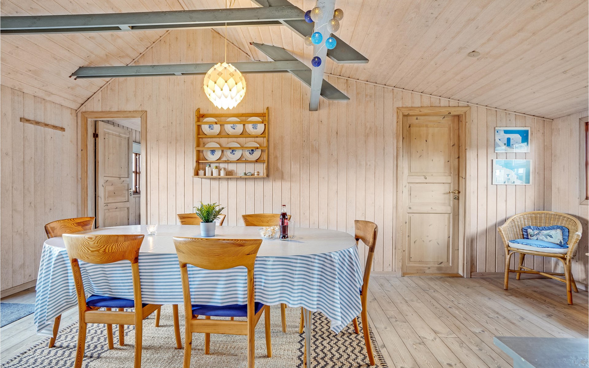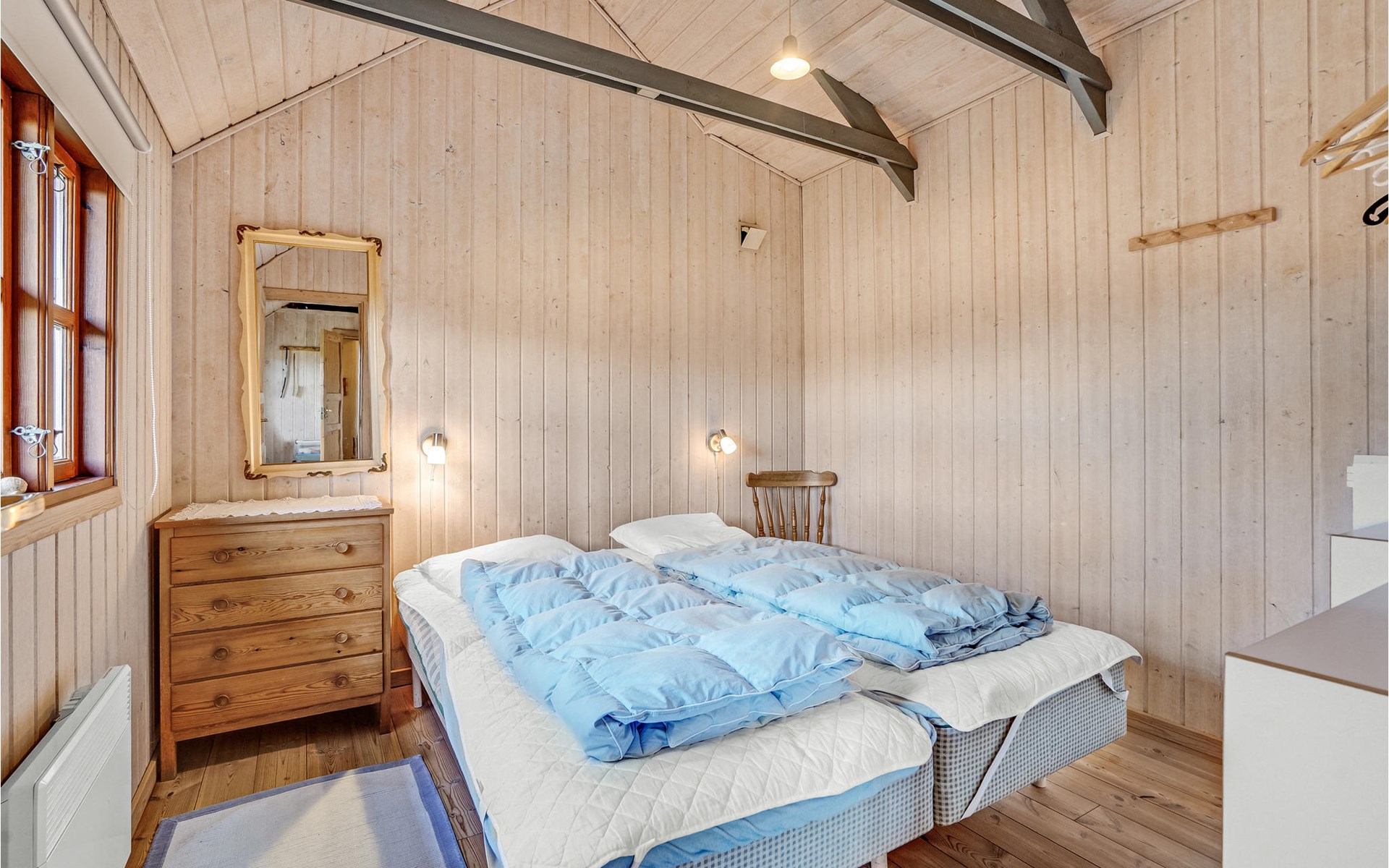 Your holiday home in Rindby is open and inviting and is classically furnished. Here you can enjoy the charming atmosphere and the pleasant light coming in through the mullioned windows while you warm up in front of the wood-burning stove after a long walk. In the spacious kitchen there is plenty of room for culinary projects, while your children can have fun with board games or puzzles at the dining table. The house also has an enclosed courtyard between the holiday home and the outbuilding.
