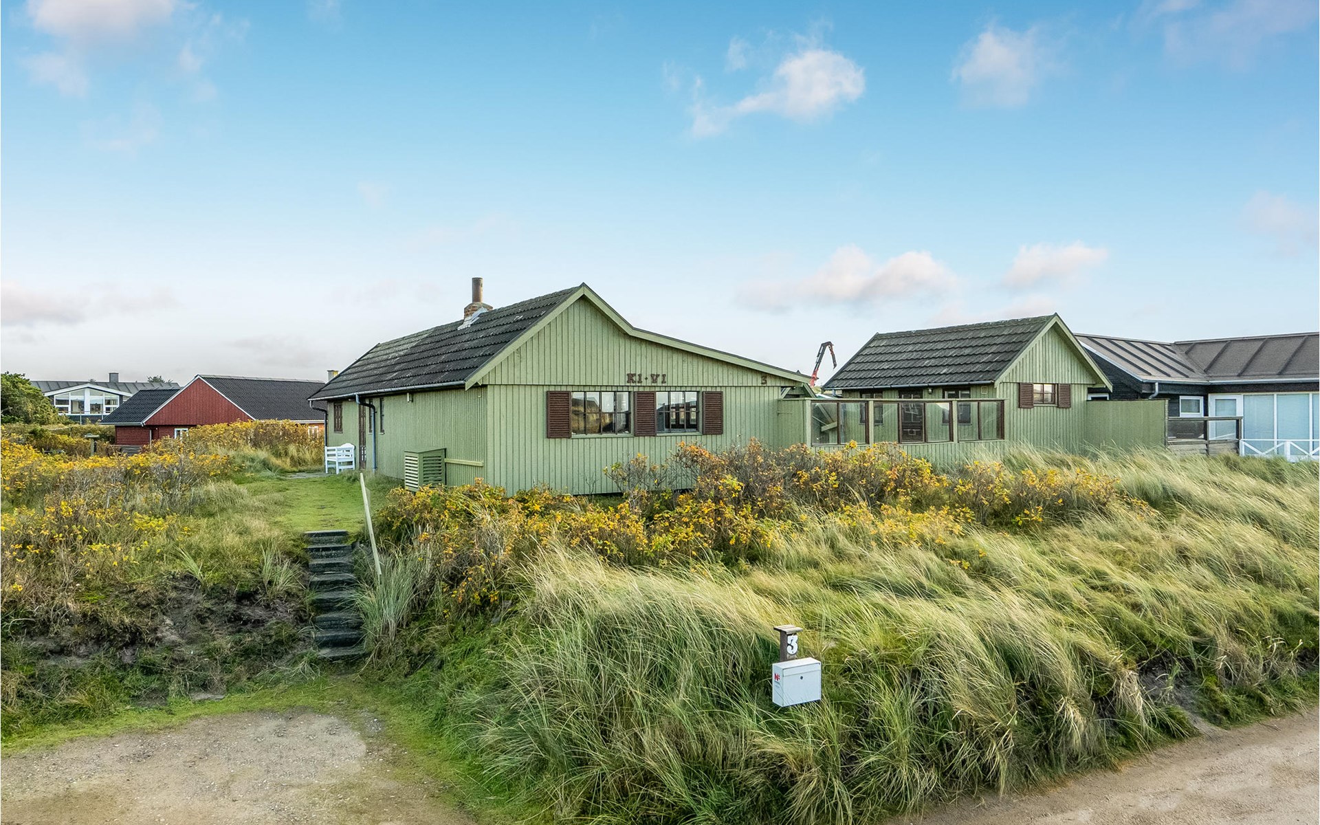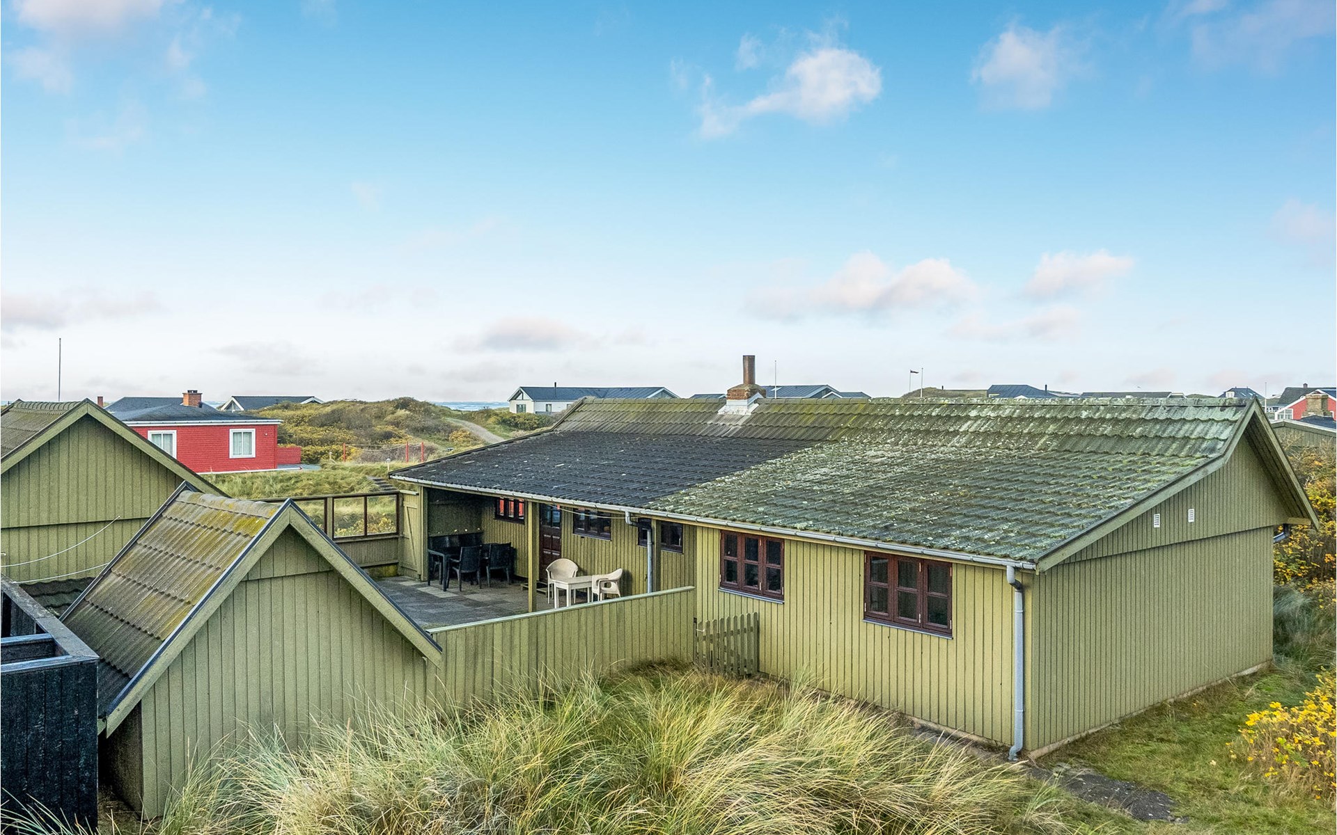 This cosy wooden house is located on an elevated dune plot close to the beach.