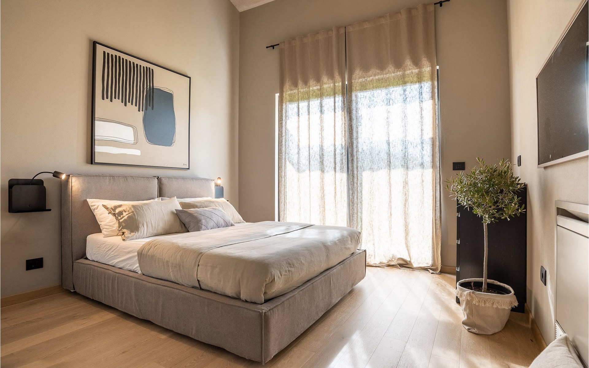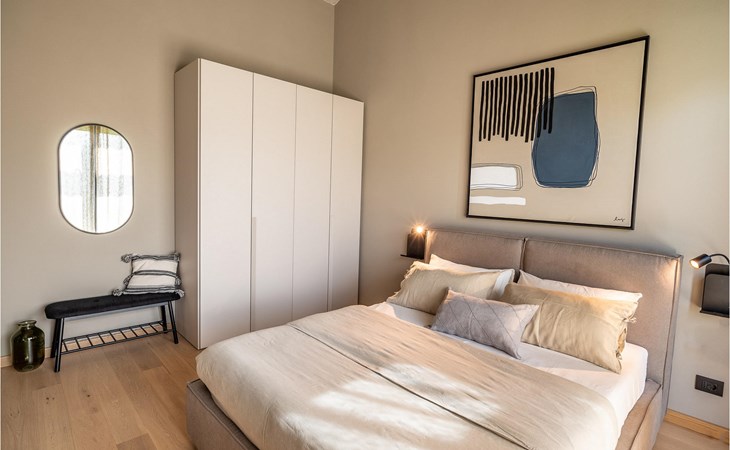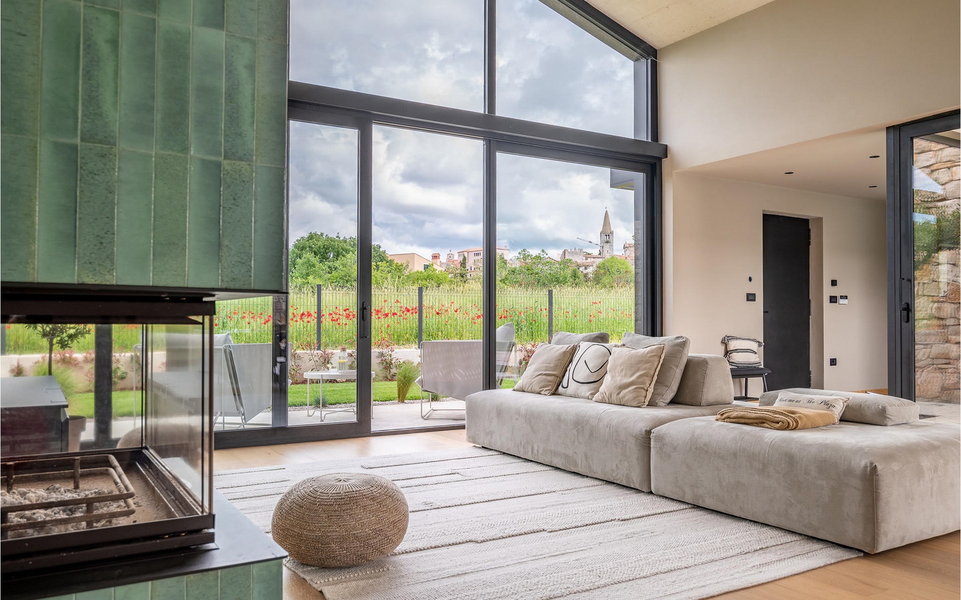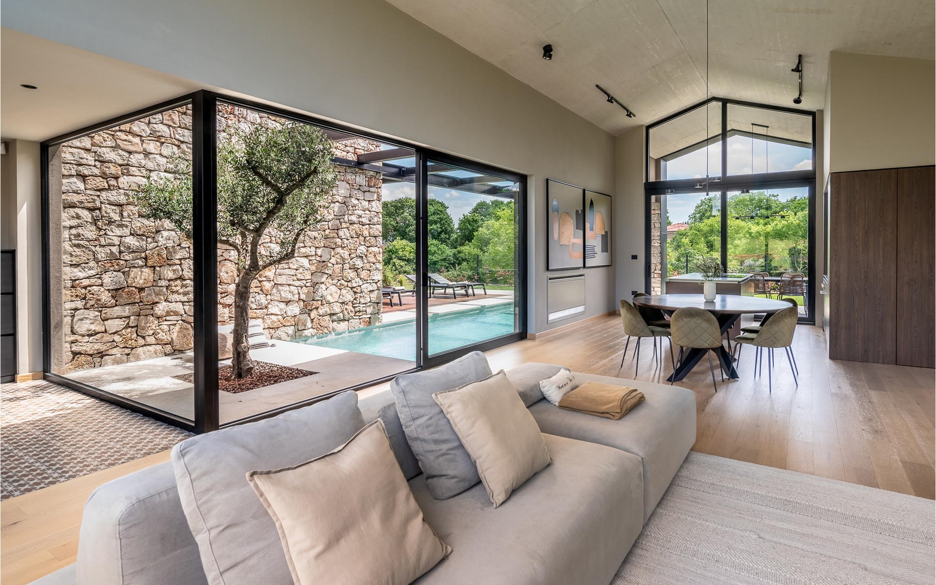 The luxury villa Silente is located in Istria, in the small stone town of Bale. This place bears the title of one of the most beautiful jewels of Istria and is located on the west coast of Istria. Istria is a well-known tourist destination for domestic and foreign guests who have decided to spend a wonderful vacation in peace and quiet while exploring historical sights and natural beauties. If you want to treat yourself and your family to an unforgettable vacation, now is the time! Villa Silente will delight you at first sight thanks to its wonderful contemporary architectural style. It was built in 2023 and offers a living area of 200 m2. The total area of the property is 874 m2. It is 7.7 km to the clean Adriatic Sea, which is not far as you are sure to arrive by car. You should definitely not miss a visit to the stone beach of Colone, where you will have as much fun as your heart desires in your favorite company. It has two beautifully furnished bedrooms with double beds (160 x 200). The villa also has two bathrooms with shower cubicles. The living room is really something special, it contains a sofa, a coffee table and a TV. There is also a romantic fireplace and right next to the living room there is a direct exit to the outdoor terrace with seating. You will certainly spend the morning hours there drinking coffee and reading your favorite book. A dining room with dining table and a modern and fully equipped kitchen are just part of the luxury that awaits you! The outdoor terrace offers the best: refreshment on hot summer days in a heated pool of 27 m² and 1.4 meters deep. There are 4 sun loungers on the lawn for you to rest and relax. You can use a barbecue, a washing machine and an iron. A high chair and a baby crib are available for children. Additional services offered by prior arrangement and for a fee are: Cook, babysitter, cleaner, gardener, transfer from the airport and private excursions. This historic stone town is situated on a hill and is surrounded by olive groves and vineyards. The picturesque Istrian medieval town is only 13 kilometers from Rovinj and 20 kilometers from Pula. These towns are also worth visiting and exploring. Taste the delicious gastronomic offer in the restaurants and enjoy like a king! Welcome to the beautiful Villa Silente!