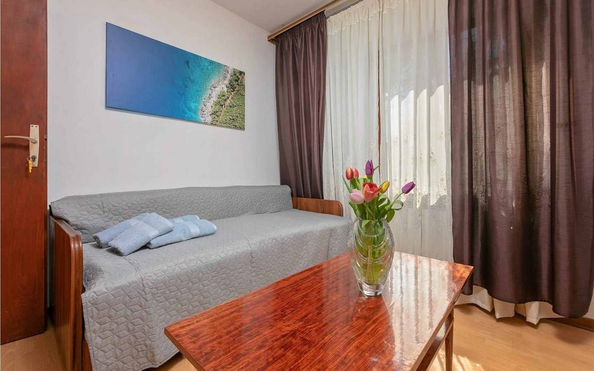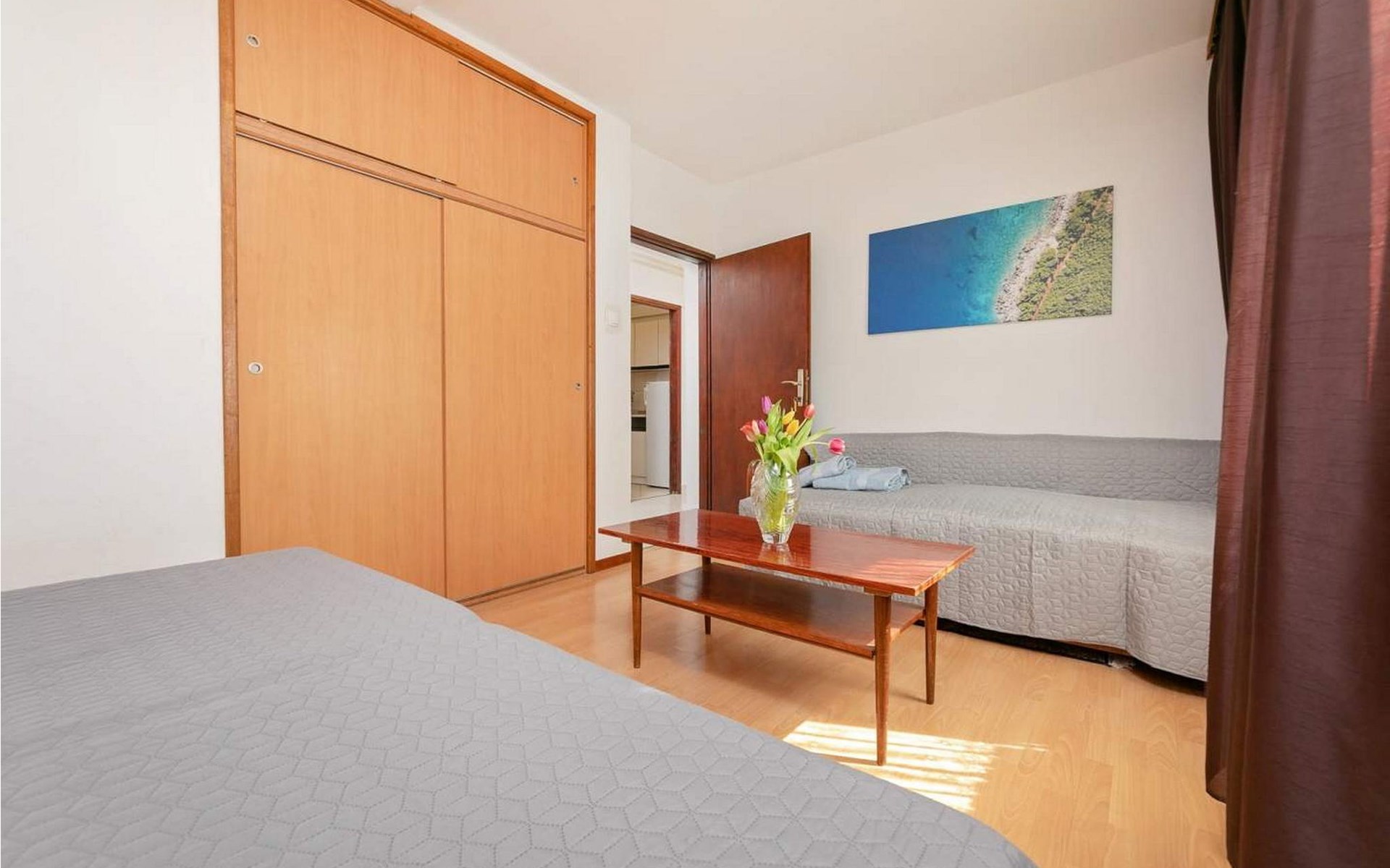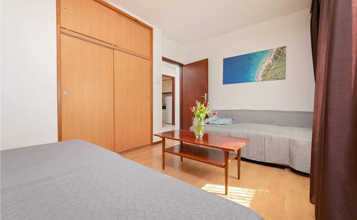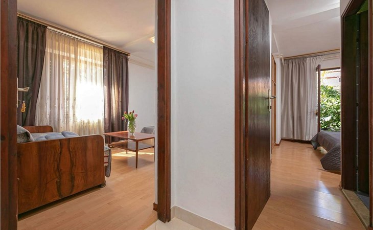 Welcome to Apartments Sunset, ideally located in a quiet neighbourhood in the wider centre of Pore. These charming flats are set in a detached house and offer easy access to local amenities such as shops, restaurants, bakeries and butchers, all just a 2-3 minute walk away. Guests can enjoy the communal garden with a barbecue for al fresco dining and each flat has its own parking space for added convenience. Flat Sunset Pore 2 is located on the ground floor and is perfect for 4 guests. It has a fully equipped kitchen, dining room and two double bedrooms. One bedroom has an en-suite shower/WC and there is an additional shower/WC in the hallway. The flat also has a lovely terrace with seating area, which offers direct access to the garden for a peaceful retreat. The pebble beach and bustling centre of Pore are just 800 metres from your doorstep, making this an ideal base for relaxing and exploring. Please note that this property does not accept youth groups or stag and hen parties. A youth group at this property consists of people aged 26 years or under.