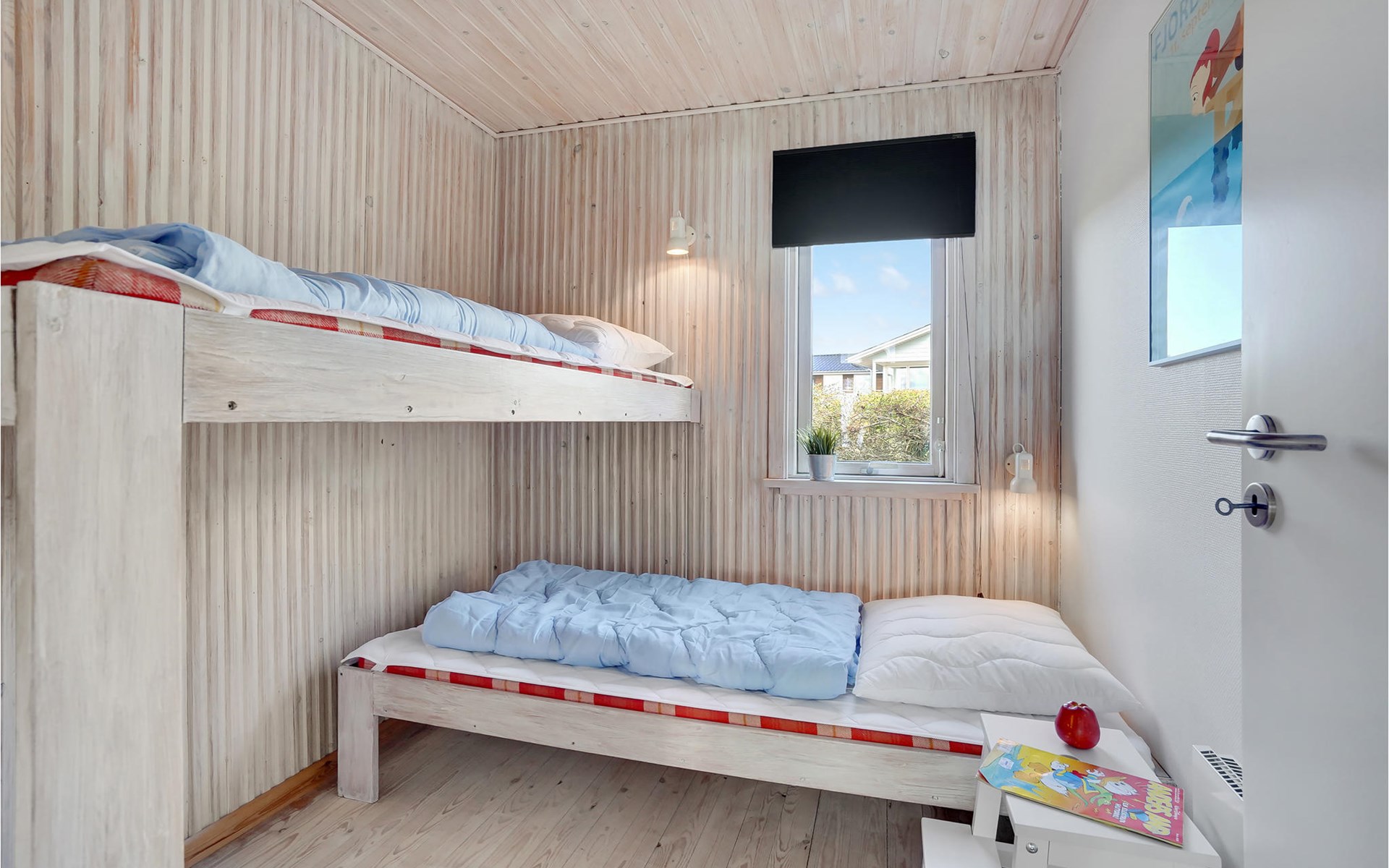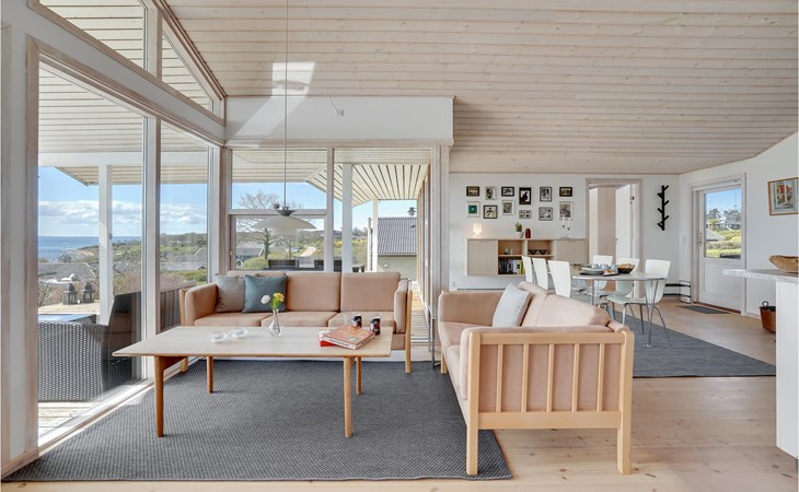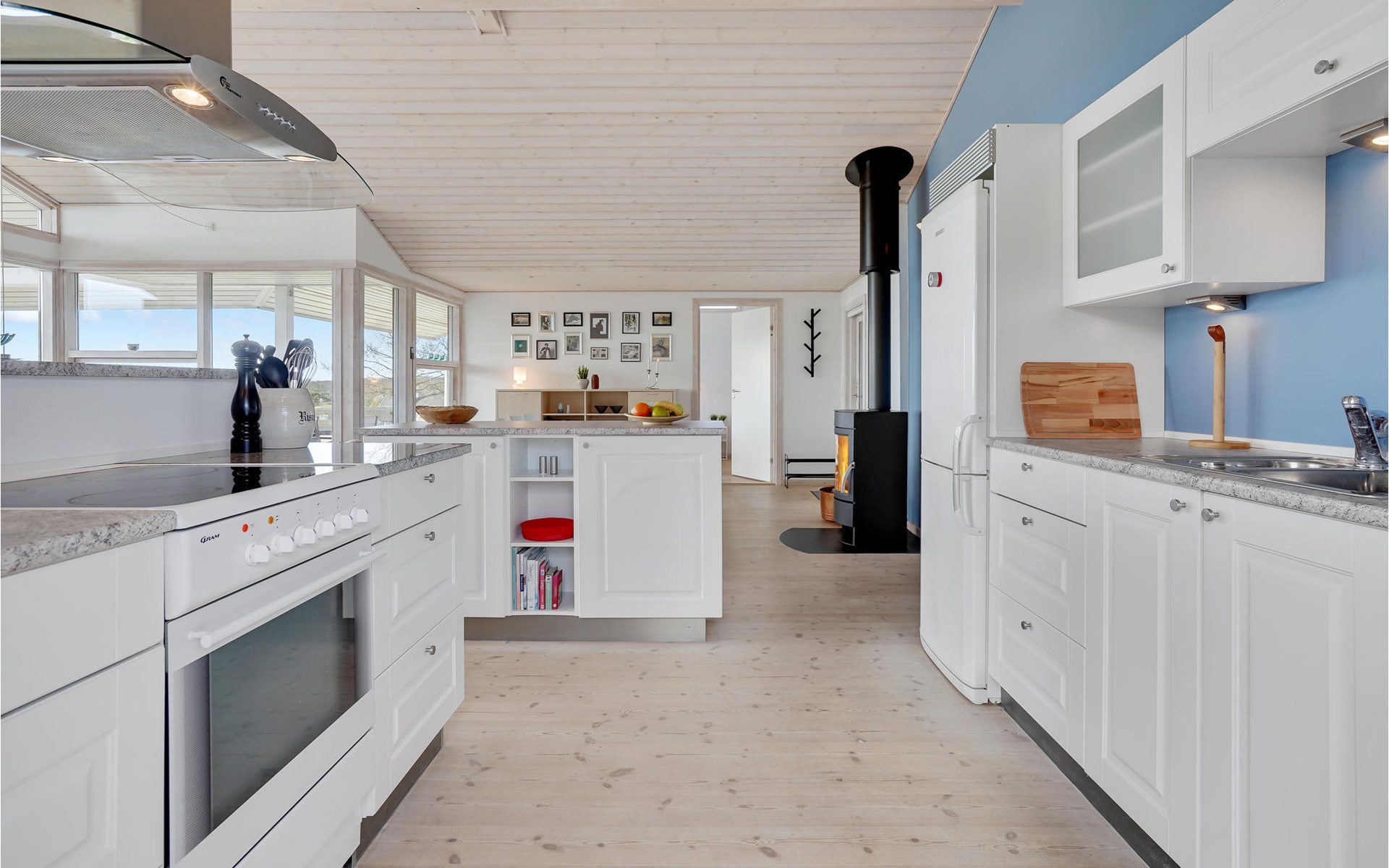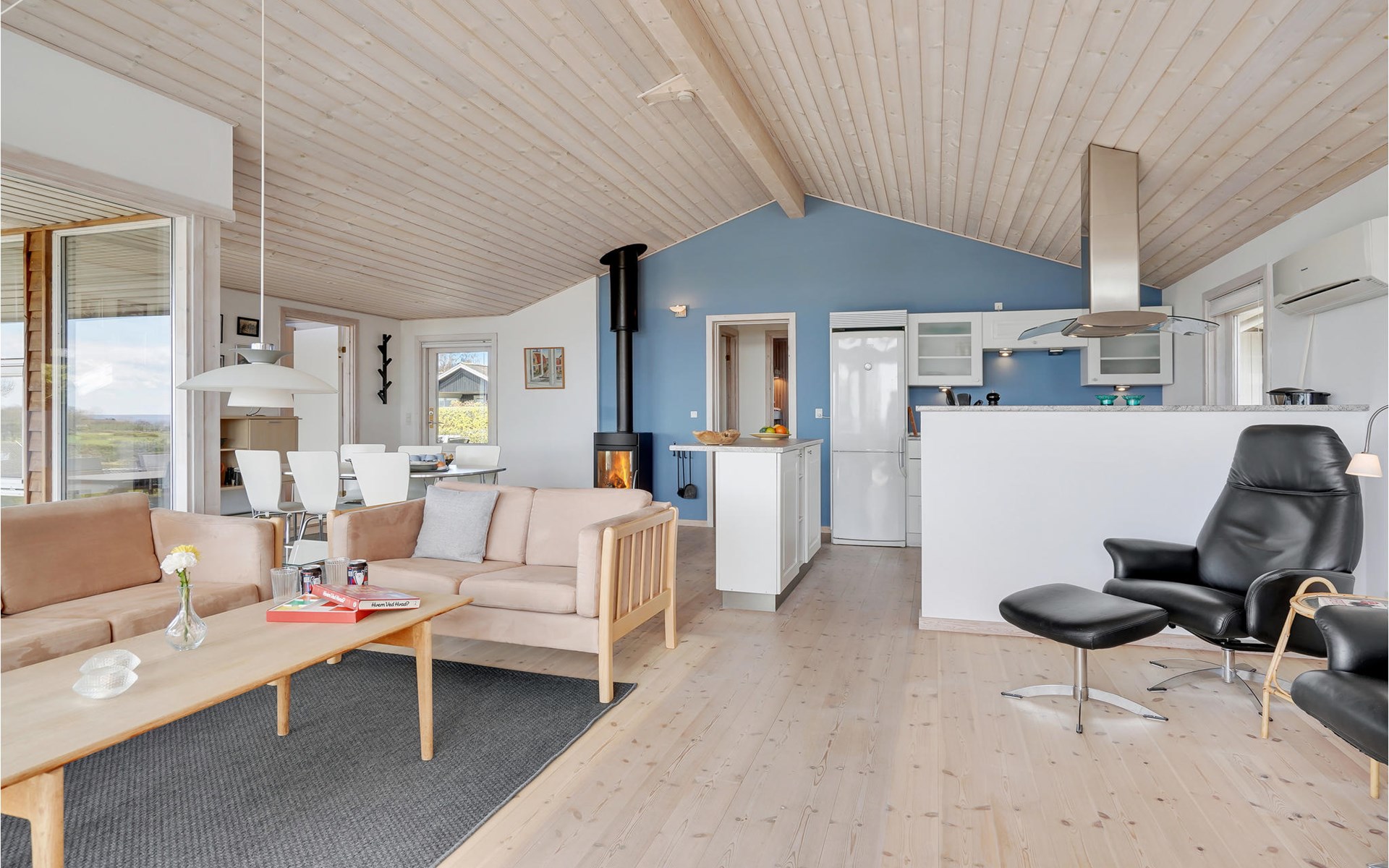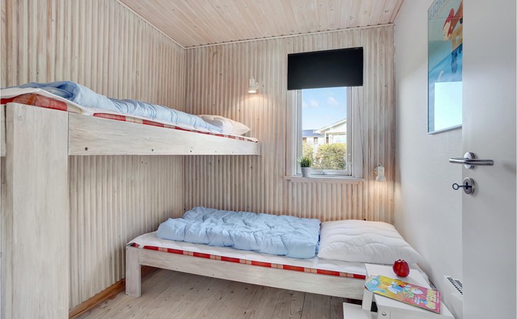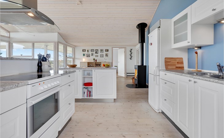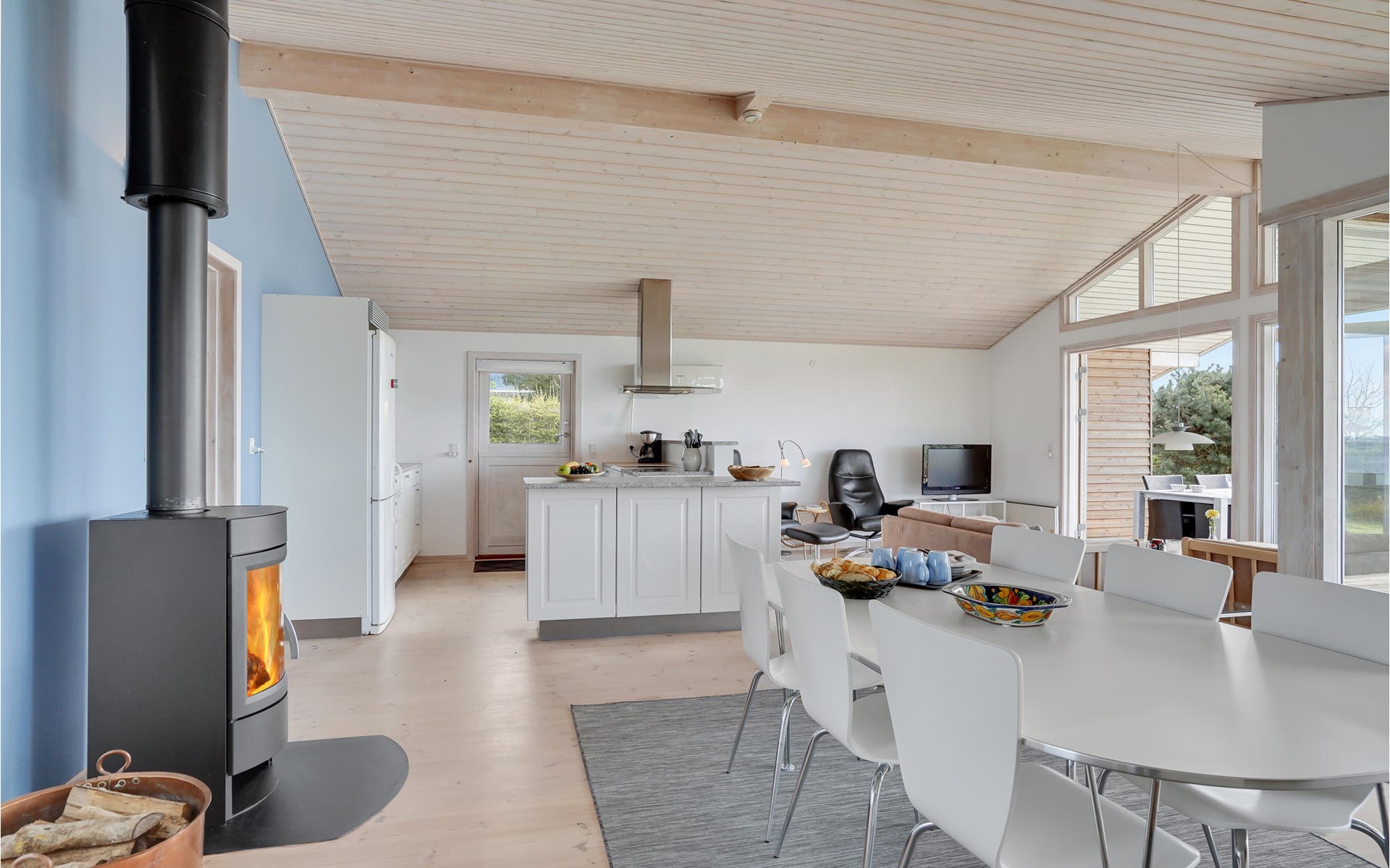 The center of the house is the open and bright living area with open kitchen and dining area, where good family life can take place on vacation. Relax here on the sofa with a good movie or cook the family and friends a delicious meal from the well-equipped kitchen. After a long walk, a fire in the fireplace spreads warmth and coziness. You also have three bedrooms with two double beds and one bunk bed at your disposal.