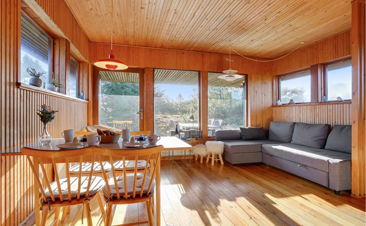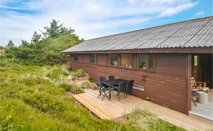 A cozy cottage with simple furnishings. Here you stay in the middle of the beautiful countryside near Grærup Strand and only a few minutes walk from a very nice beach on the North Sea coast. The cottage is furnished in retro style. The covered terrace faces south and on the large, hilly and secluded natural plot, planted with heather, there are good opportunities to find win shelter. At sunset you can experience the most beautiful colors in the sky before the sun sinks into the sea.
