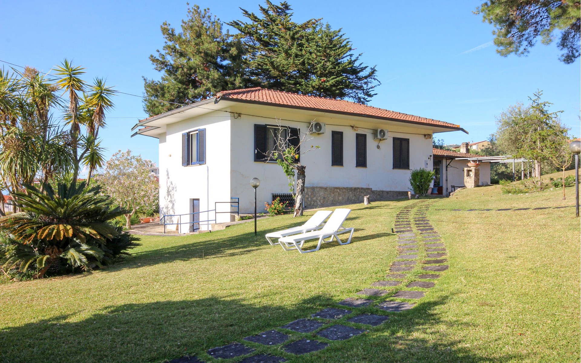 Spend your holiday among palm trees and pine trees in this comfortable holiday home with sea views.