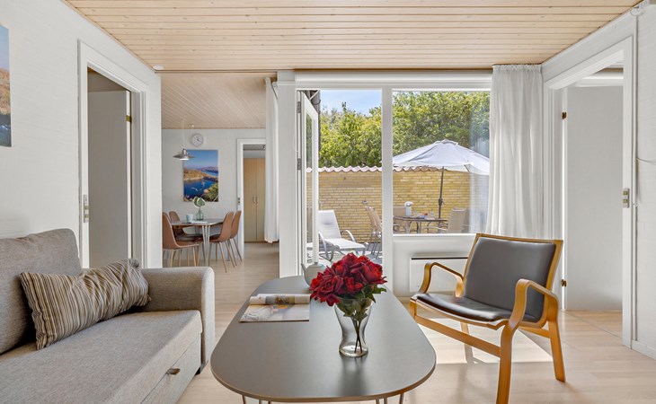 Welcome to this private terraced holiday home in Allinge, a place of peace and relaxation. The enclosed holiday home offers you a secluded courtyard, ideal for undisturbed hours outdoors. The tasteful interior of the house, with modern furniture and bright, friendly rooms, creates a cosy atmosphere. Enjoy cosy evenings in the spacious living area or on the inviting terrace.