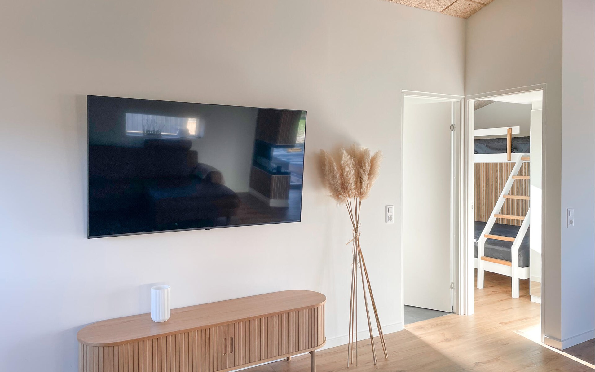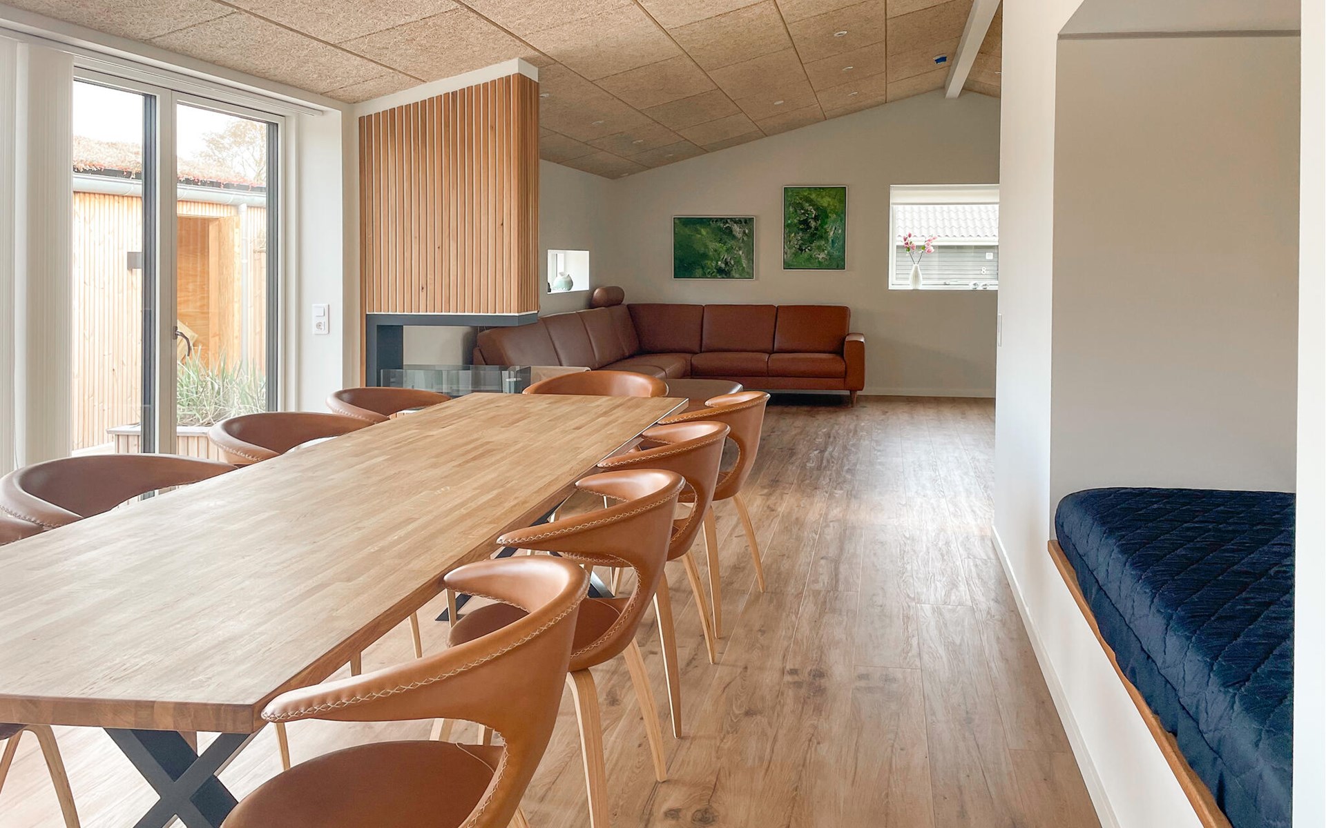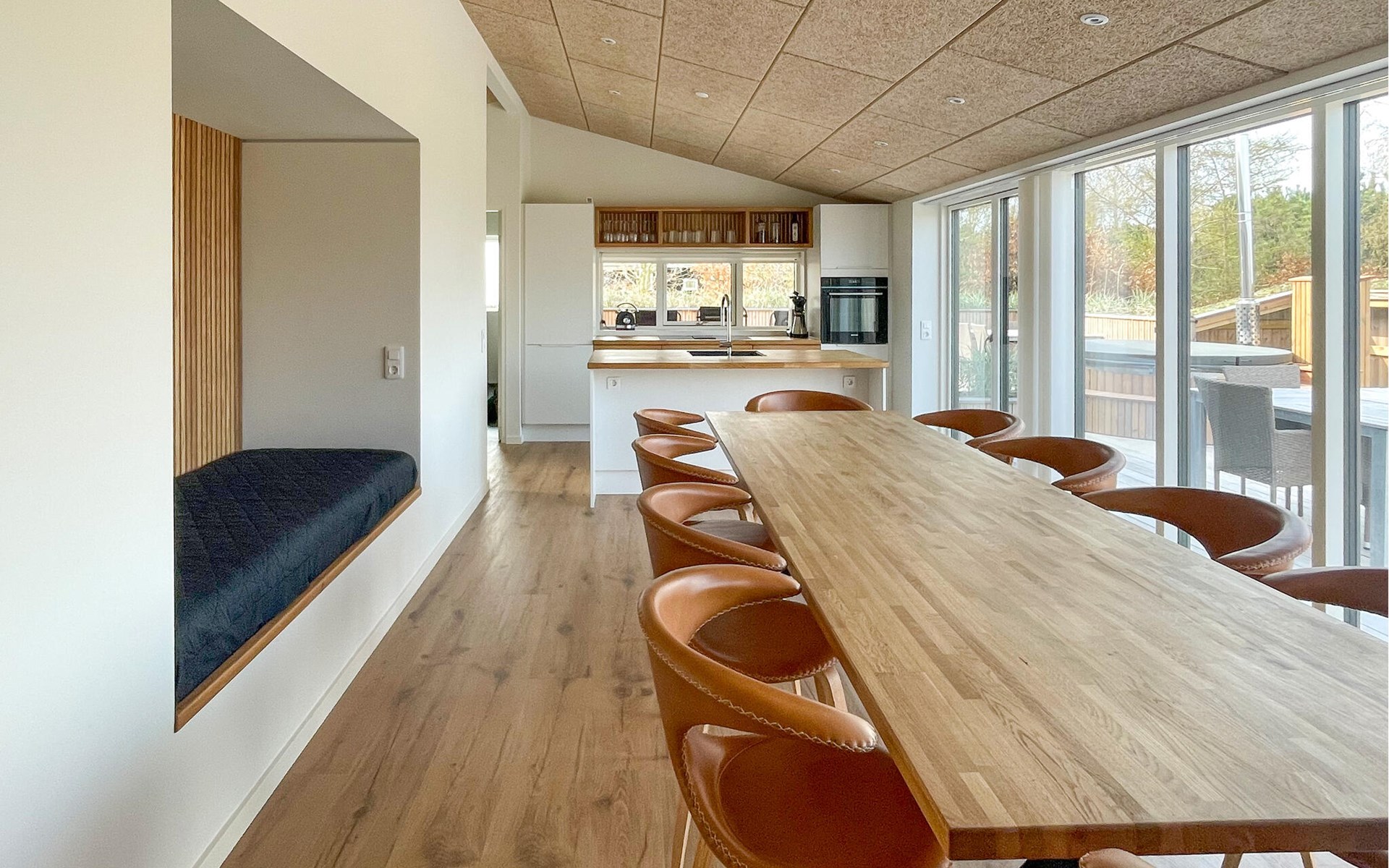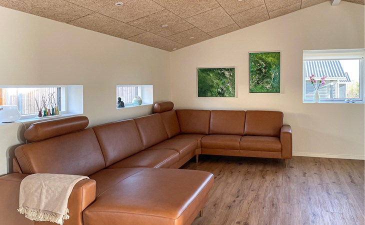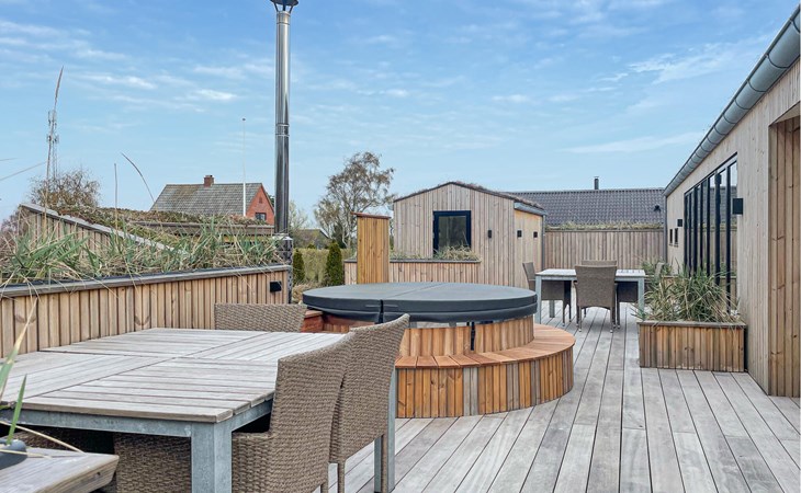 This holiday home impresses with its clear design and high-quality furnishings. Enjoy an ambience that radiates tranquillity and at the same time creates space for spending time together. Make yourself comfortable, unwind and enjoy your free holiday time to the full. Prepare your meals in the modern kitchen and take a seat together at the large dining table with stylish chairs. Afterwards, lean back on the day bed in the living area, read a book or watch the play of light in nature through the large windows.