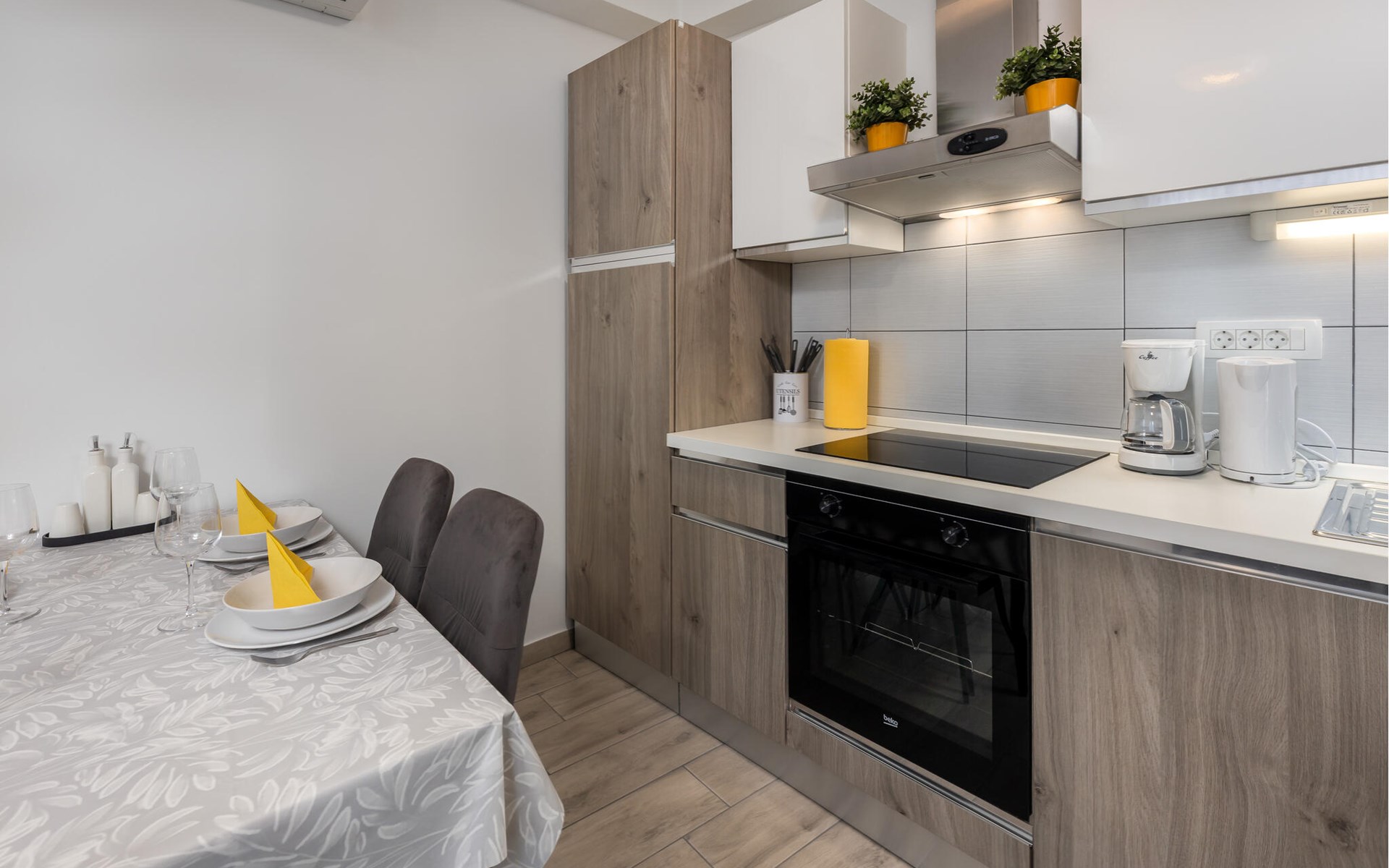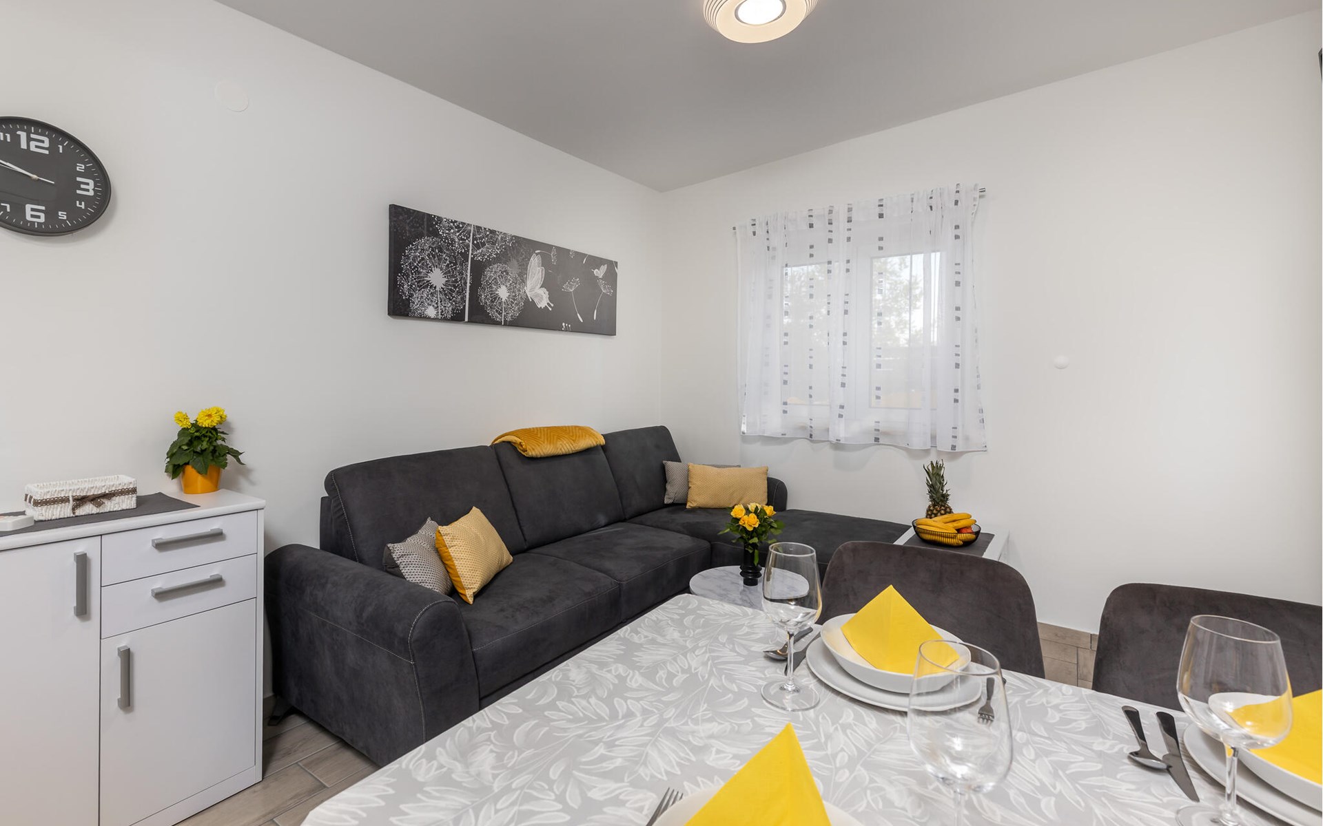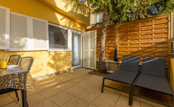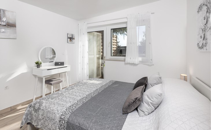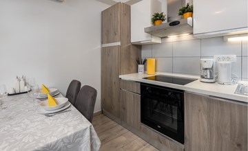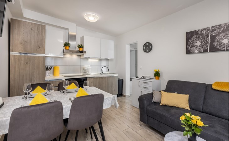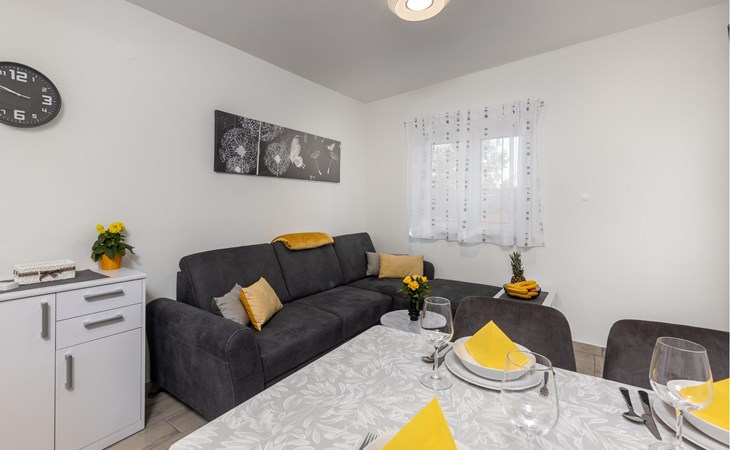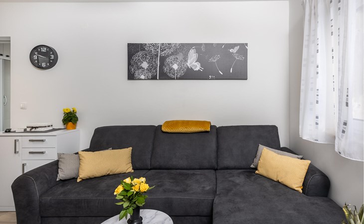 Just a few steps away from a refreshing swim, this modern and well-kept holiday apartment offers you a cosy retreat for a sunny holiday on the Adriatic. Prepare culinary delights in the open-plan kitchen and enjoy them at the inviting dining table. After a long day, relax on the cosy sofa and devote yourself to a good book or an exciting board game.