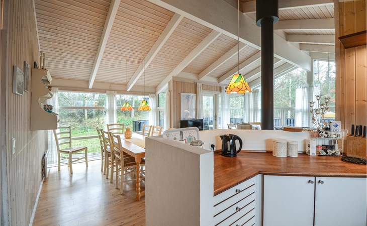 At one, in the area absolutely best bathing beaches, in child-friendly environment, this magnificent vacation house is built in 2003. It is situated on a magnificent undisturbed plot, in the middle of a developed but peaceful area at a walking distance from the beach. The house is well suited for one or two families and the stay can be fully enjoyed in all seasons. The area offers many good excursion possibilities. Nearby you will find Mols Bjerge u. the town of Ebeltoft with u.a. Frigates Jylland. In less than an hour you can drive to Århus, Djurs Sommerland & the Kattegat Center.