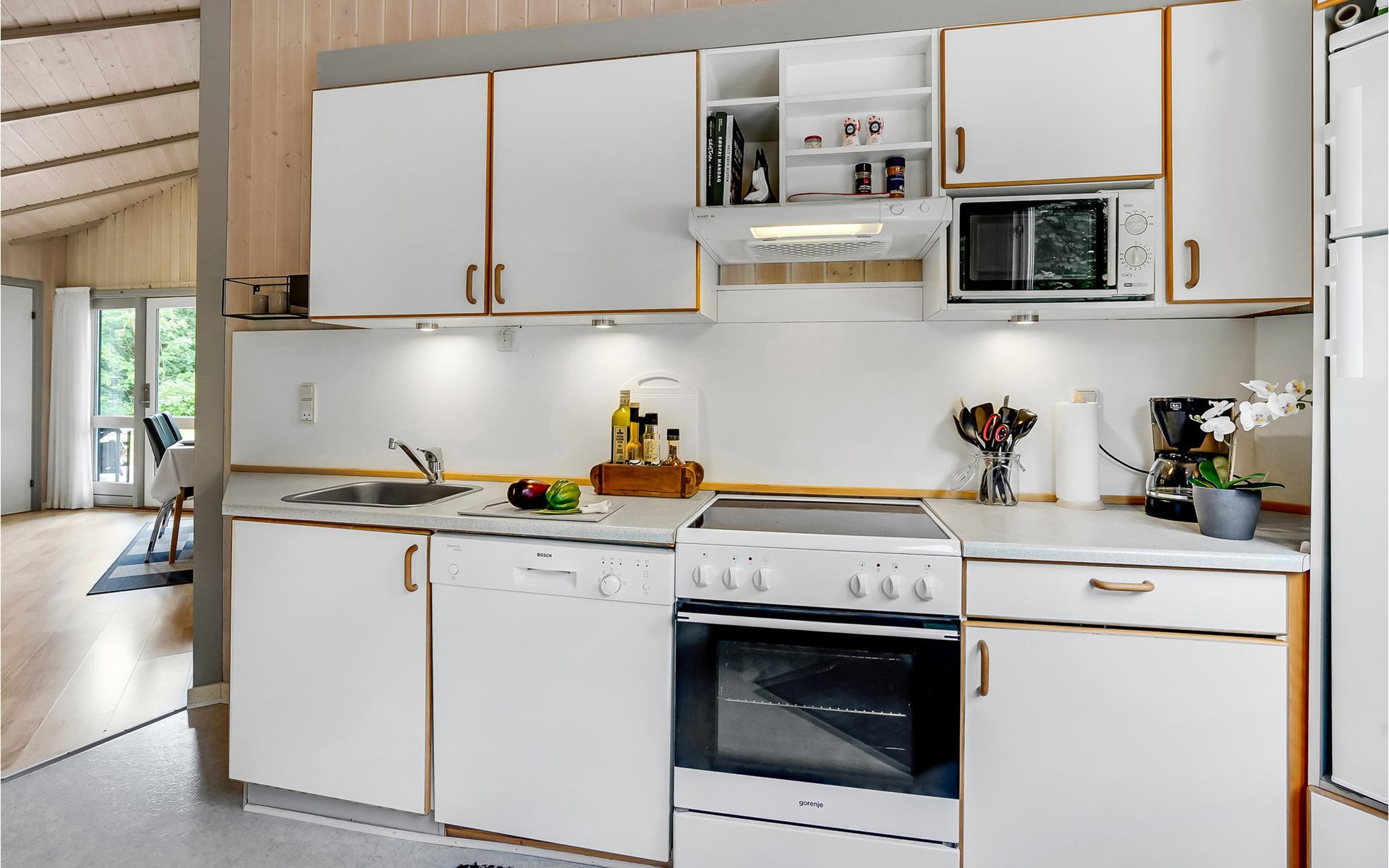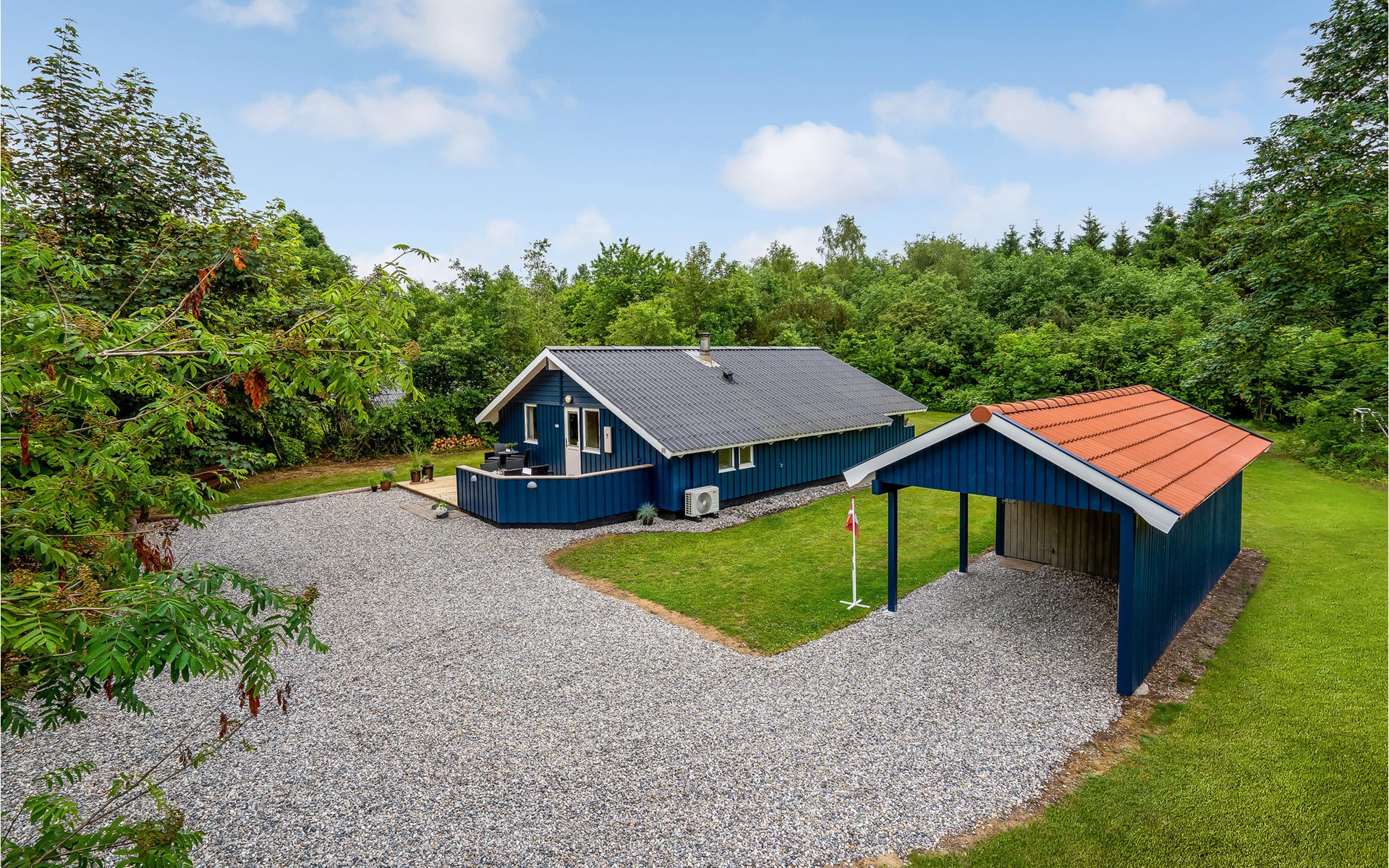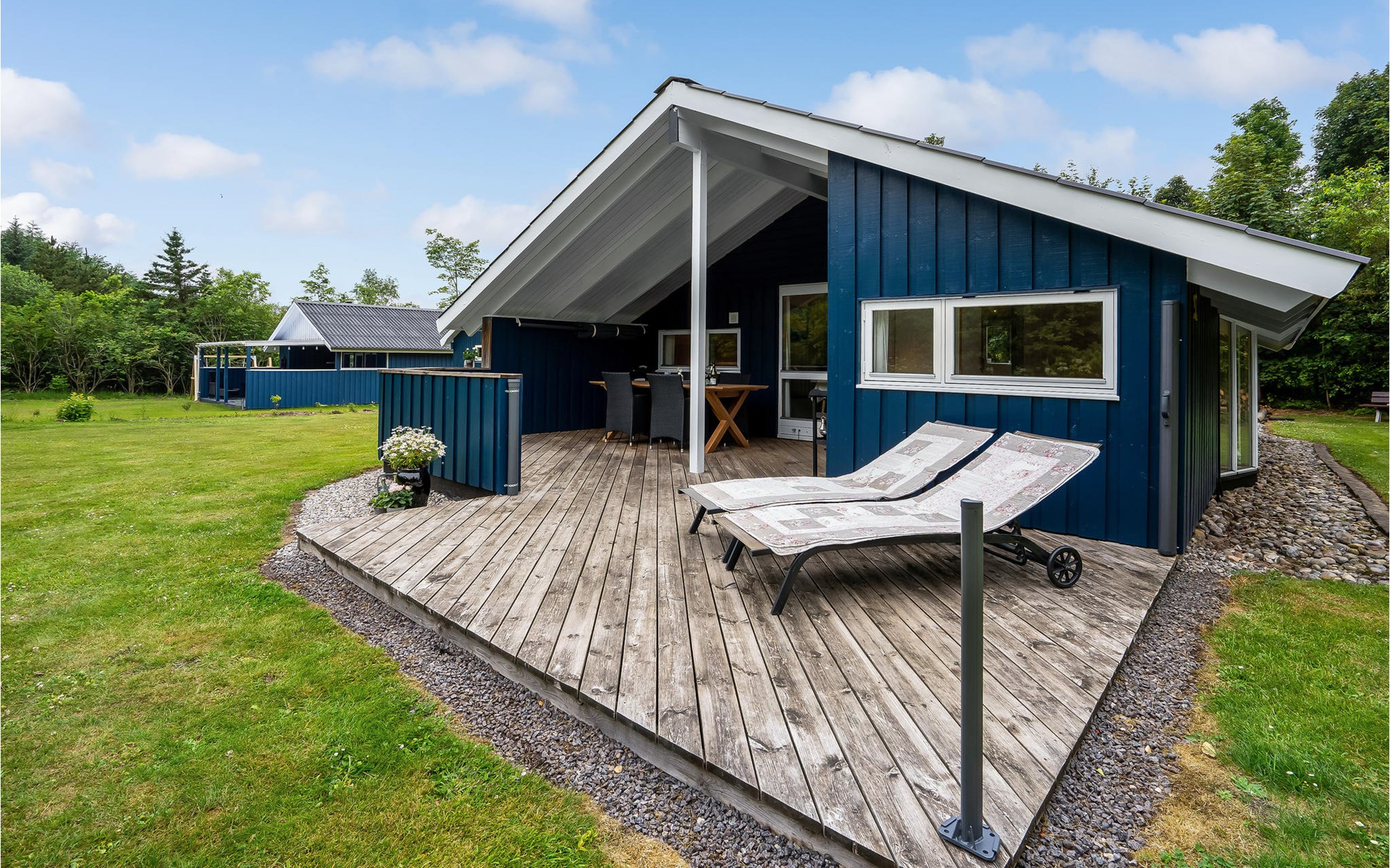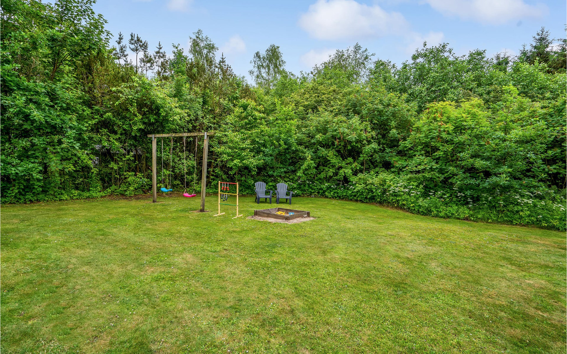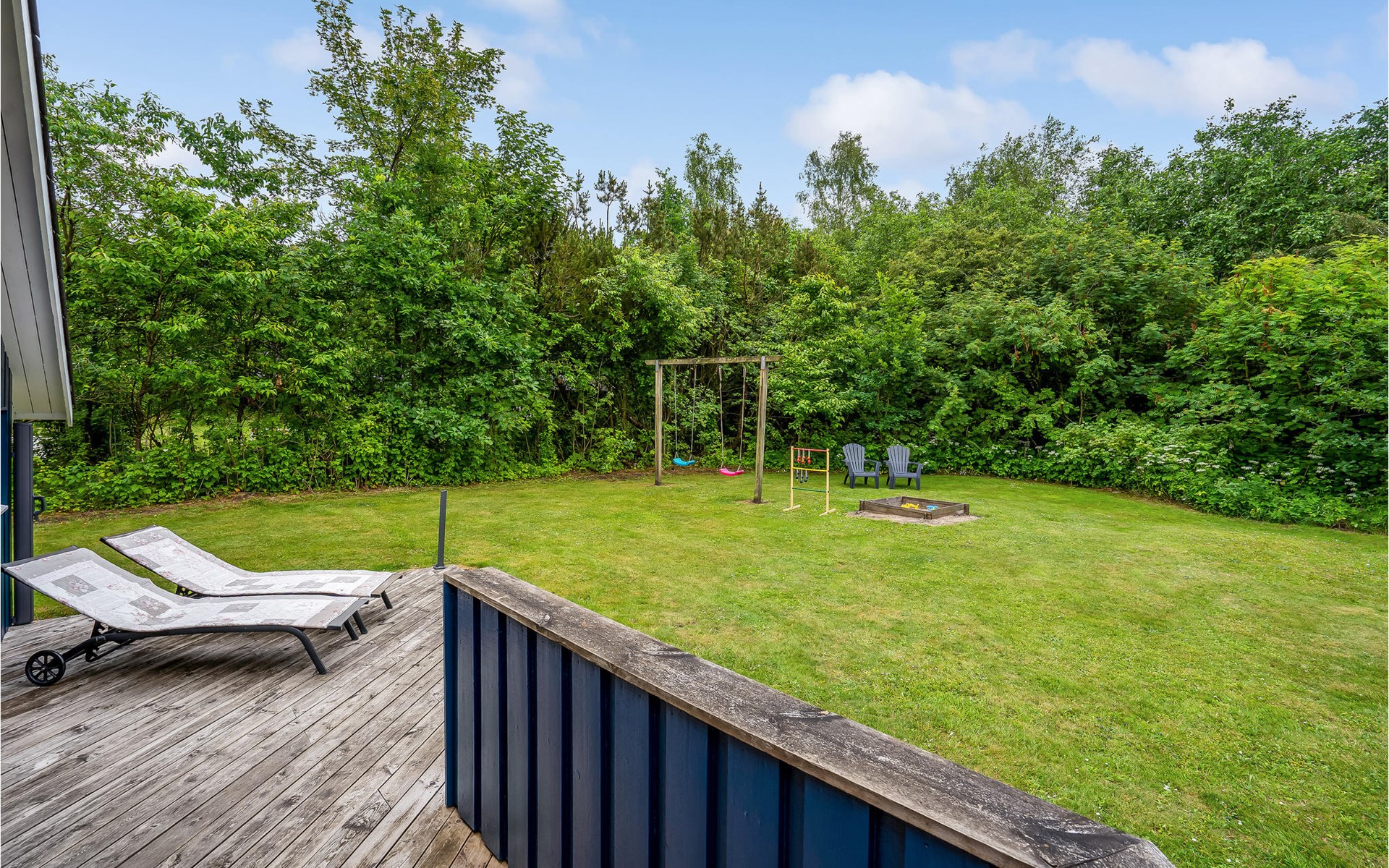 The large plot with lawns invites you to play and sunbathe. Enjoy long summer evenings on one of the terraces with garden furniture and barbecue. There are power connections in the garage so that you can charge two electric bikes.