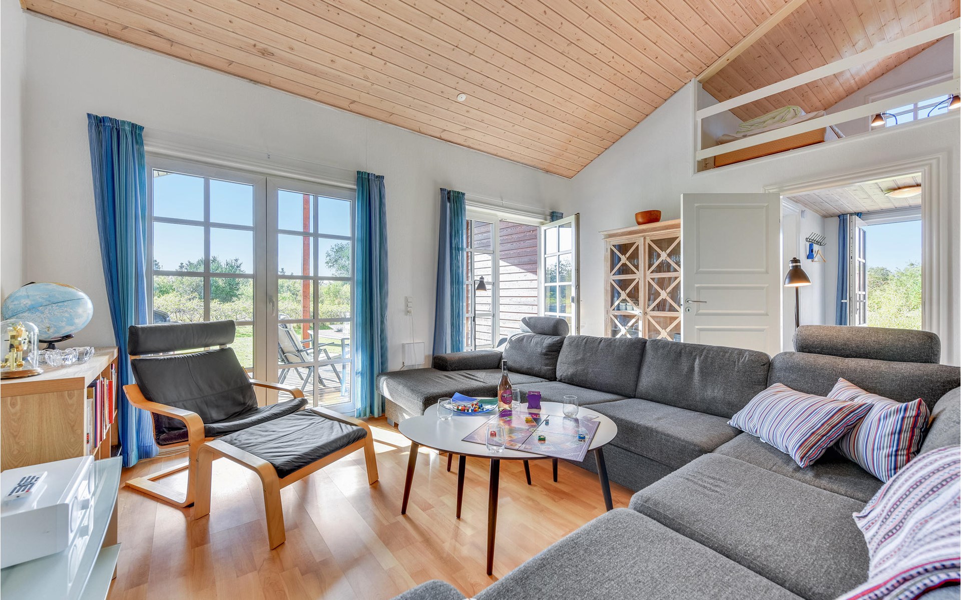 When you start the day on the terrace with your morning coffee, you don't have to worry about wind or weather. The terrace is covered and screened on three sides. The perfect place for many wonderful outdoor vacation times. Inside, high ceilings and a cozy loft overlooking the eat-in kitchen await you.
