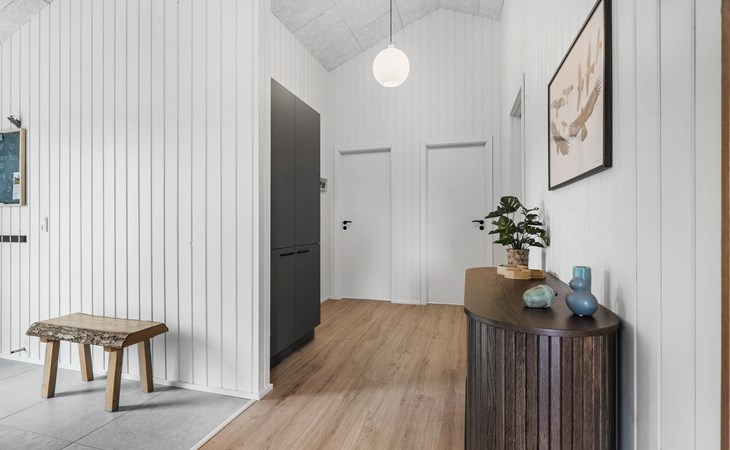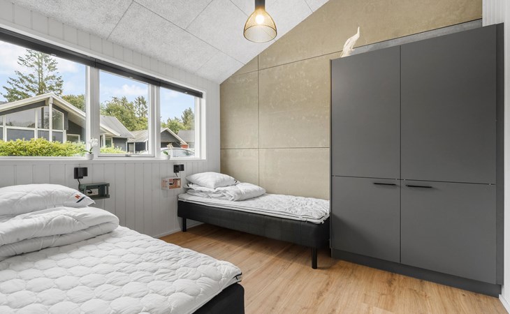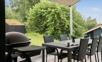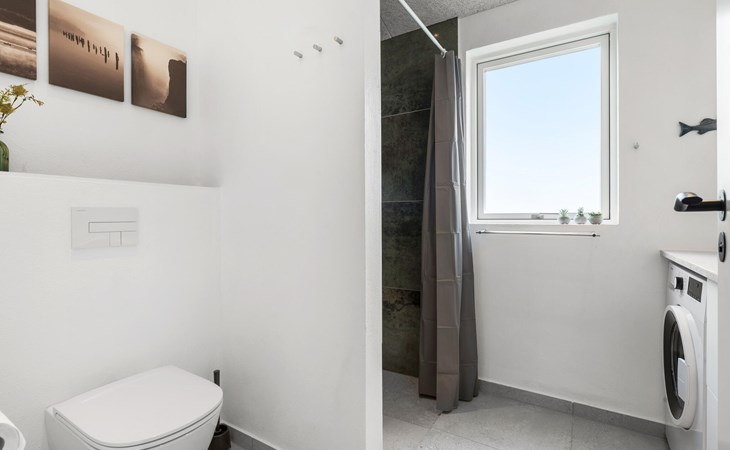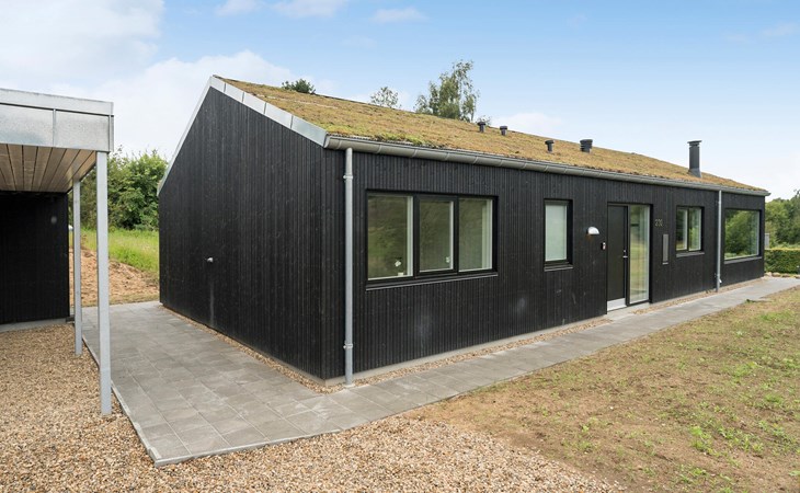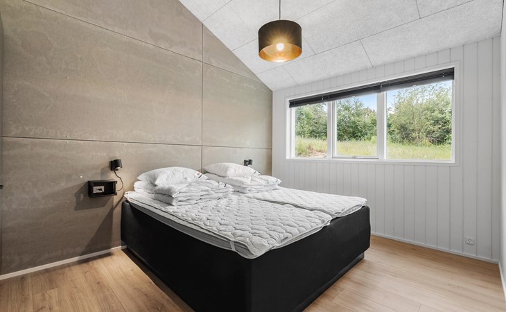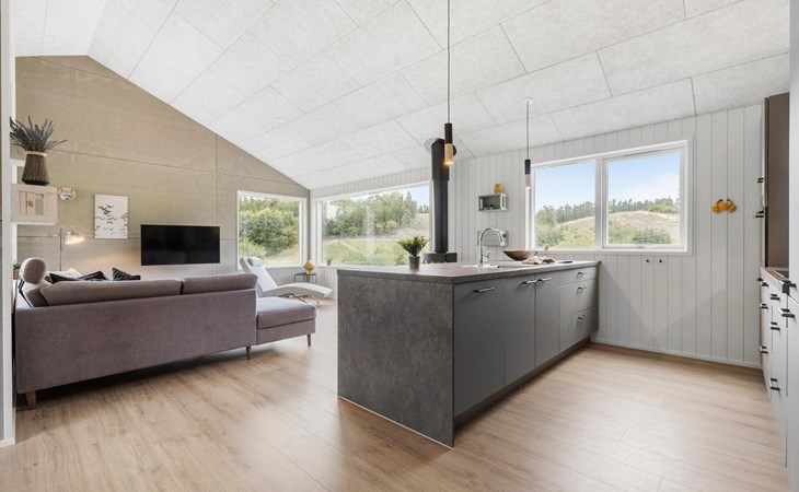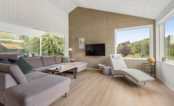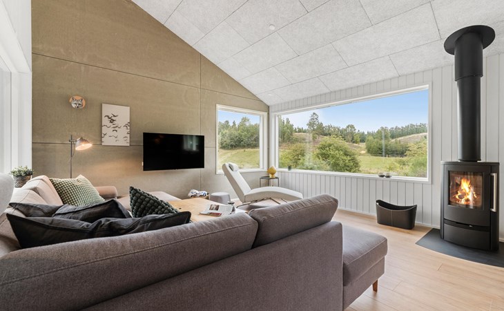 This modern, light-flooded holiday home in Funder Kirkeby is a place to feel at home. The large windows offer a view of the greenery, while the attractive design and cosy wood-burning stove create a homely ambience. Retreat to the reading alcove or treat yourself to an afternoon nap. Above the alcove in the living area is a loft for playing. Listen to your children's laughter while you work your magic in the open-plan kitchen in the evening and give free rein to the culinary arts.