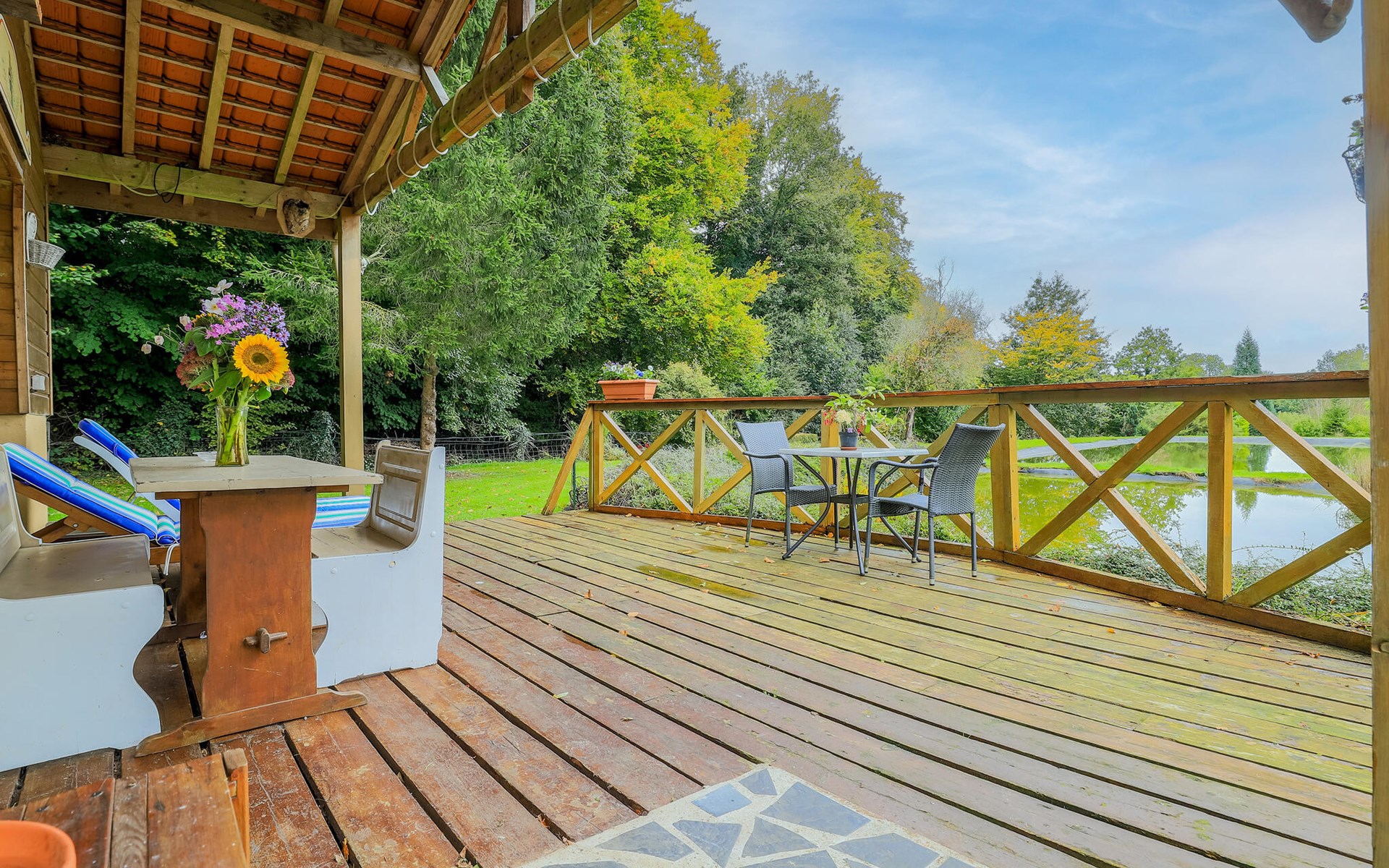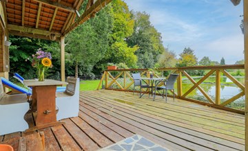 Linger on the wooden terrace with a direct view of the private pond, perfect for a relaxing fishing session or simply to switch off. The spacious garden offers you plenty of room to unwind.