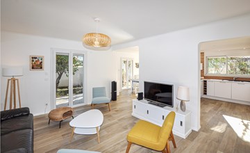 This beautiful semi-detached house in Canet Plage with a well-kept terrace and a quiet location on the edge of this popular holiday resort is the ideal accommodation for your time out. The beautiful sandy beach is just a short walk away, ideal for daily visits to the beach. The modern and bright living room is equipped with stylish furniture and large windows that create a pleasant ambience. The open-plan kitchen with breakfast bar invites you to prepare delicious meals. Enjoy them in the adjoining dining area with a view of the garden. For a sporty change of pace, there is a table tennis room in the holiday home