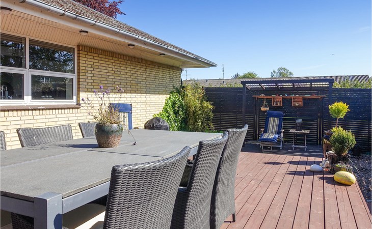 Welcome to this attractive and spacious vacation home with underfloor heating throughout the house, which provides a pleasant atmosphere. The natural center is the living room with dining area where you can relax and watch TV. The large windows let in plenty of light. In the large, open and well-equipped kitchen it is a pleasure to cook while the music blares from the radio. In addition, the house consists of three good bedrooms, a nice bathroom, a guest toilet and a utility room with washing machine and freezer.