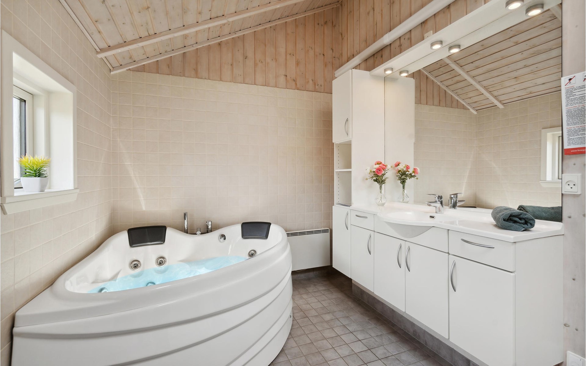 Enjoy relaxing vacations in this cozy wooden house with sauna and whirlpool tub. The house is well equipped with appealing comforts that make it easy for you to feel at home. Either relax in the sauna or read an exciting book on the sofa, with a view of the crackling fireplace, or gather here in the evening for a movie night. The garden also awaits with playground equipment and space for romping, barbecuing and spending evenings together outdoors.