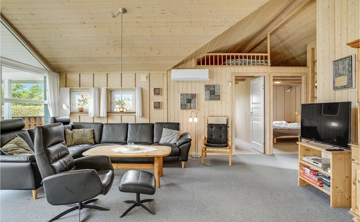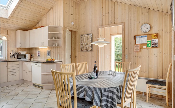 This luxury house is located in a beautiful new vacation home area near Bork Havn. The area is very suitable for surfers and nature lovers with the Ringkøbing fjord and many nature and cycling trails. At the fjord, the bird life is also extremely impressive. The cozy cottage has been furnished with attention to detail. Also with the quality no compromises were made. Both the kitchen-living room and the bathroom with sauna and whirlpool are equipped with underfloor heating. This vacation home offers you the opportunity for a beautiful vacation in every season.
