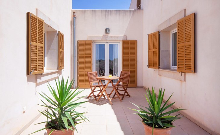 "Ses Portes" puts you close to the most beautiful beaches in the south of the island. It is located in the countryside between Campos, where there is a lively weekly market on Thursdays and Saturdays, and the former fishing village of Colonia de Sant Jordi, which offers all the benefits of the nearby sea. Beaches such as Es Trenc (11 km) or Cala Pi (26 km) are best reached by car. We recommend a visit to Ses Salines, a nature reserve with salt pans, which is 6 km away.