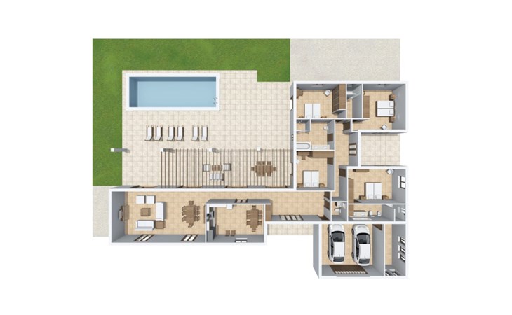 At the recently built villa "Ses Portes", the bright blue sky is clear, offering perfect temperatures and a gentle sea breeze that is filled with holiday vibes. This may sound idyllic, but it is the reality when you escape to this peaceful retreat.