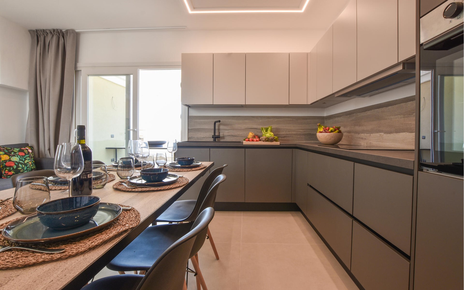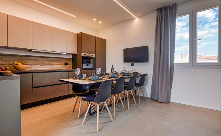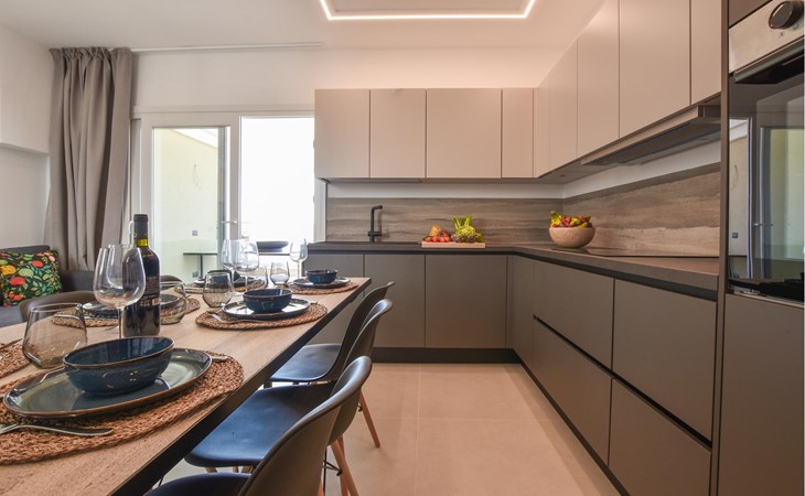 Experience a relaxing stay in your stylish holiday apartment, which is located in a picturesque street with Mediterranean flair. Be enchanted by the elegant architecture and cosy atmosphere of your apartment. Start your day in the inviting living area, which is furnished with a comfortable sofa. Fortify yourself with a sumptuous breakfast in the open-plan dining kitchen before setting off on new exploratory tours.