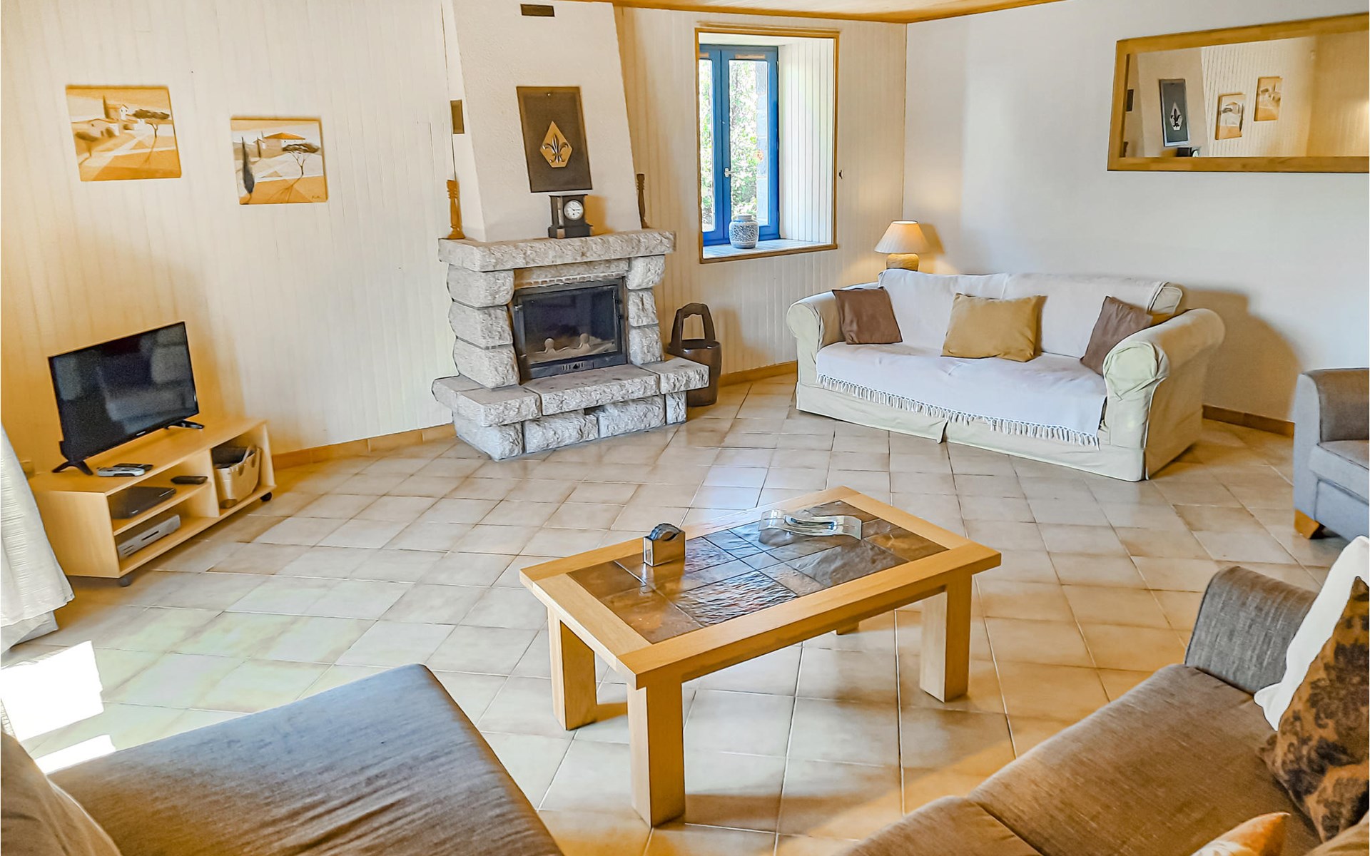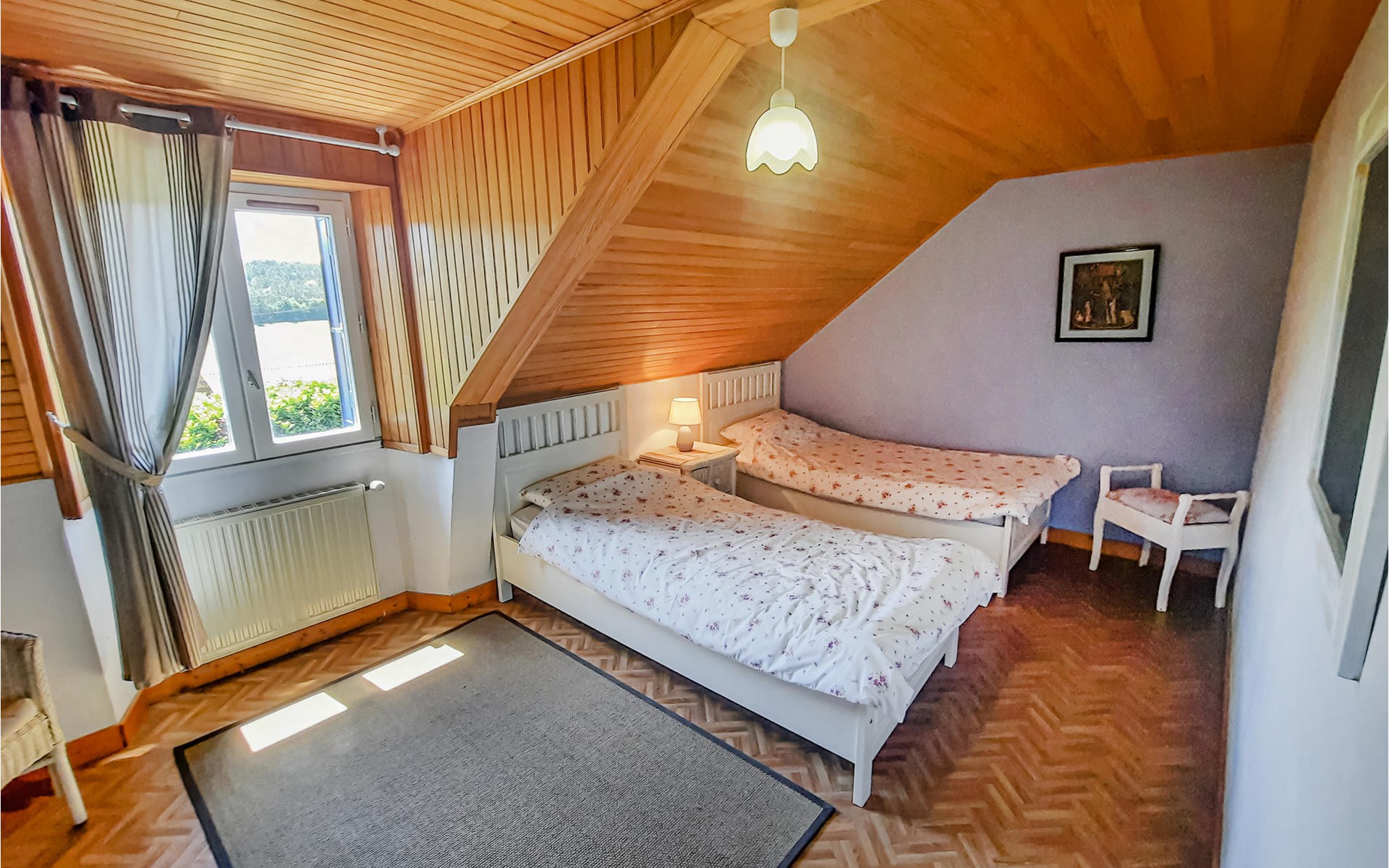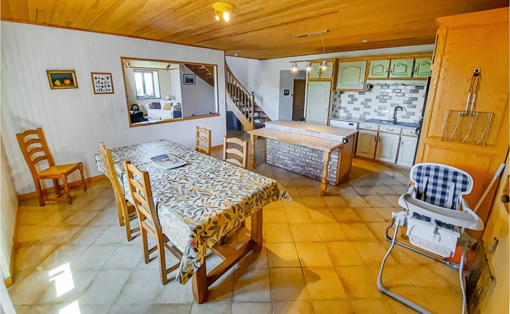 This house half is located in a quiet hamlet and spoils its guests with a magnificent view of the rural surroundings. The interiors are comfortable and spacious and ideally suited for a family vacation. This beautiful region boasts picturesque rivers and lovely towns where you can find many local products and produce. There are several activity options to choose from: Biking, hiking, kayaking or fishing against a peaceful, rural backdrop. Check out the charming villages of Rochefort-en-Terre (13.5 km) and Malestroit (14 km), and Ploërmel (29 km) has a lovely lake with a swimming beach and water sports. Stroll through the city of Vannes (47 km), which makes a charming impression with its old fortifications. 15 minutes away, Largoët Castle awaits you with one of the highest defense towers in all of France. The aquarium house is an experience for young and old, as well as the Île-aux-Moines, an island with a unique flora and fauna. This pleasant vacation home promises vacationers an unforgettable time in Morbihan.