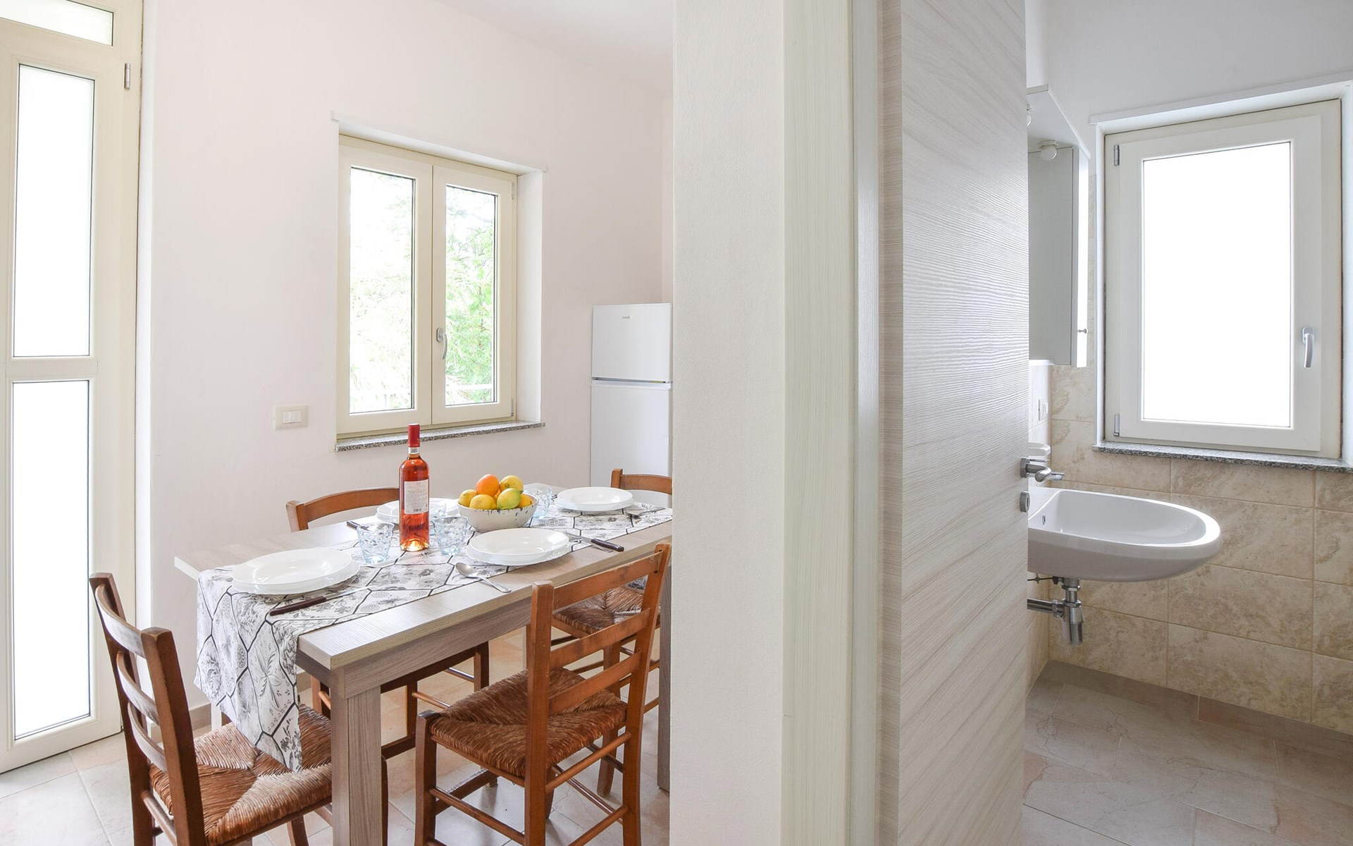 Welcome to this bright and practically furnished holiday apartment, where you can unwind romantically as a couple or as a small family. Plan your adventures over delicious pasta dishes at the inviting dining table, treat yourself to soothing siestas while a pleasant breeze flows through the rooms, and look forward to relaxing game nights or quiet reading sessions.