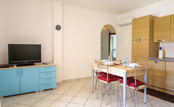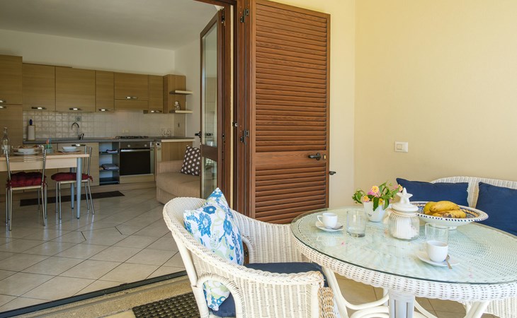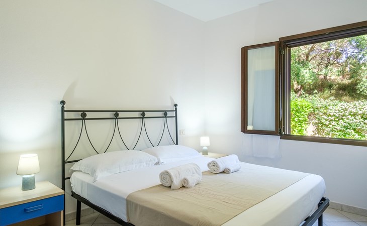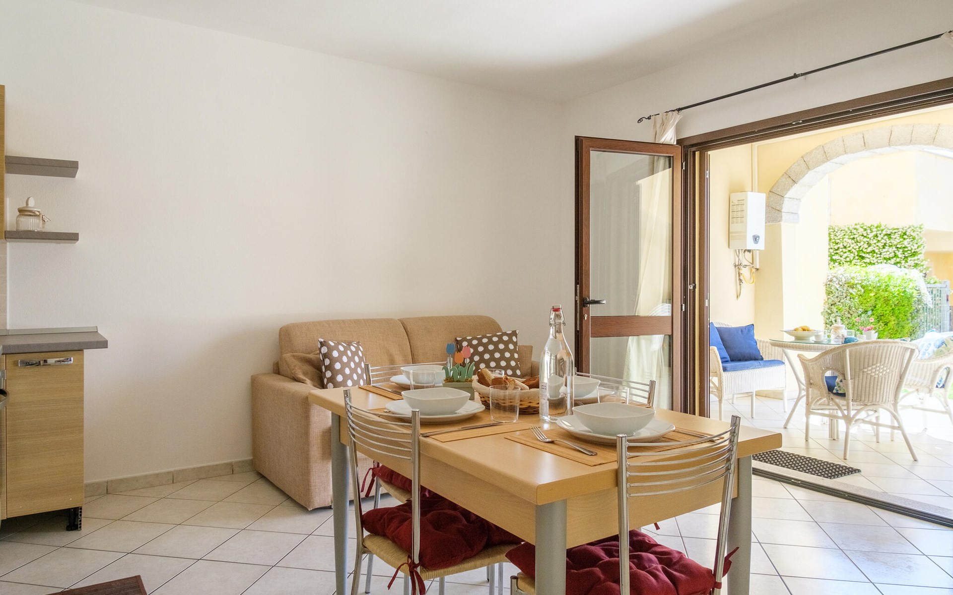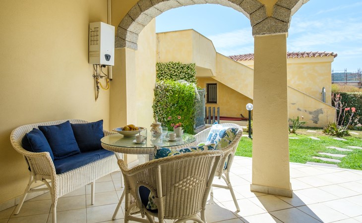 This bright vacation home with space for the larger family is the ideal base for your summer vacation in Sardinia. The kitchen has direct access to the covered terrace where you can enjoy your meals or just a good cup of coffee. The one bedroom has access to the beautifully overgrown garden.