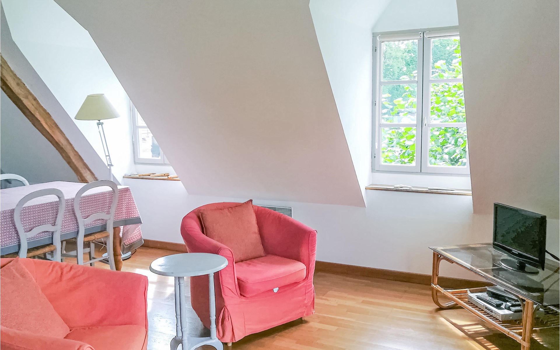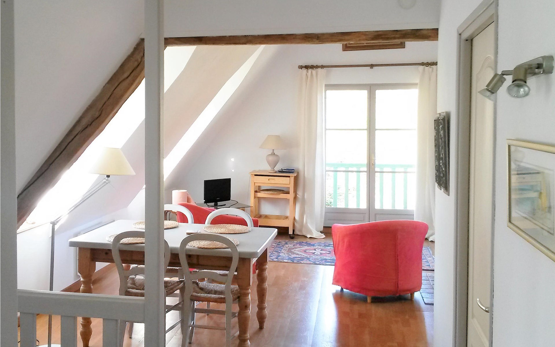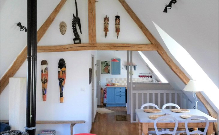 The inviting apartment, which is located in a former barn, welcomes you in a wonderful location surrounded by nature. The beach is just a short drive away. This is the ideal place for a lovely break with the perfect mix of bathing fun and exciting excursions in Normandy. Make plans for your day over breakfast and return to your vacation oasis after your activities, which offers the right setting for your relaxation with its bright rooms and individual decoration.