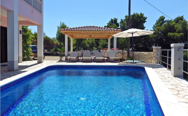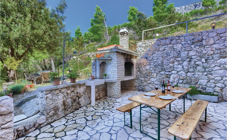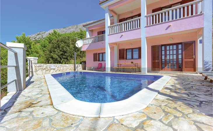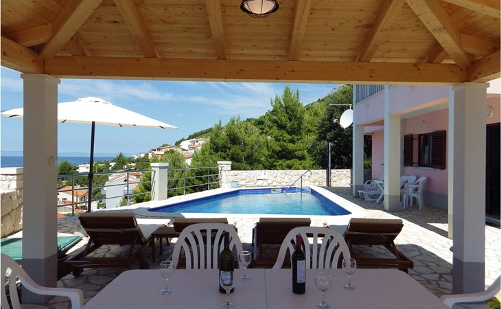 This charming holiday home in Lokva Rogoznica offers you an ideal combination of relaxation and pleasant comfort. Situated on a picturesque hill, you can enjoy the view over the sea and the surrounding islands from the spacious terrace and swimming pool. The attractively furnished interiors create a pleasant atmosphere, while you find refreshment in the pool or relax on the sun loungers. The domicile invites you to socialise with family or friends.