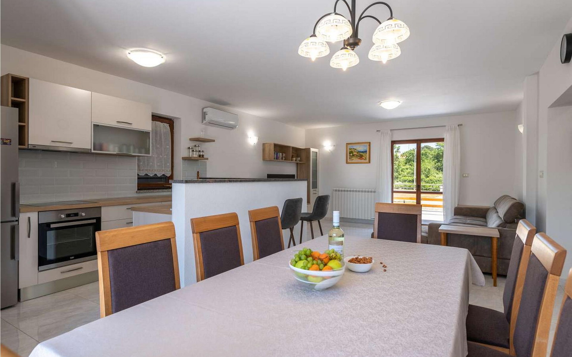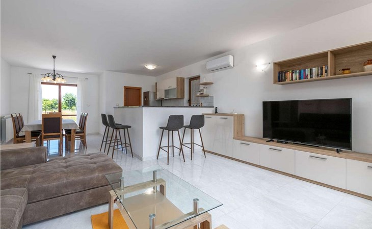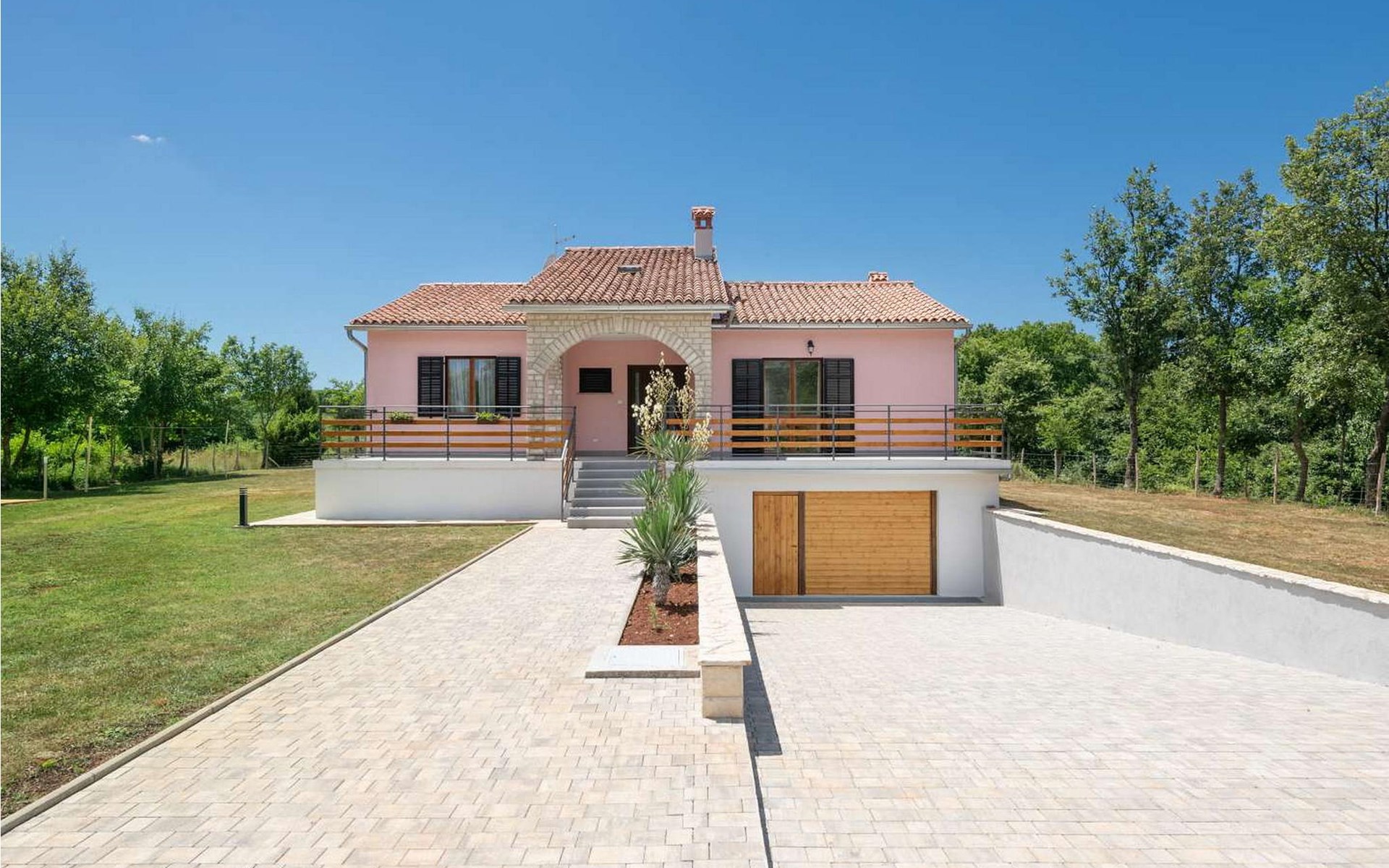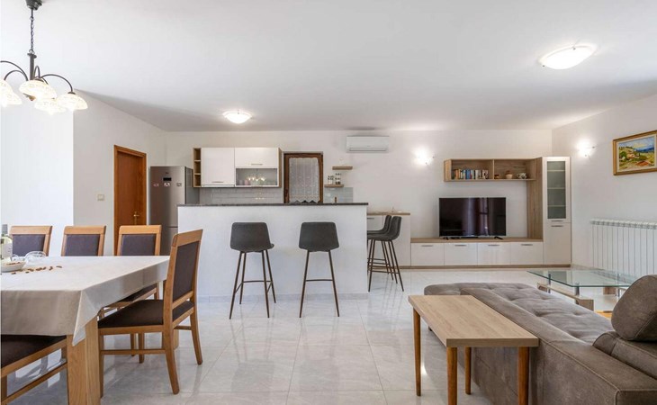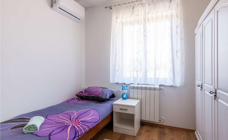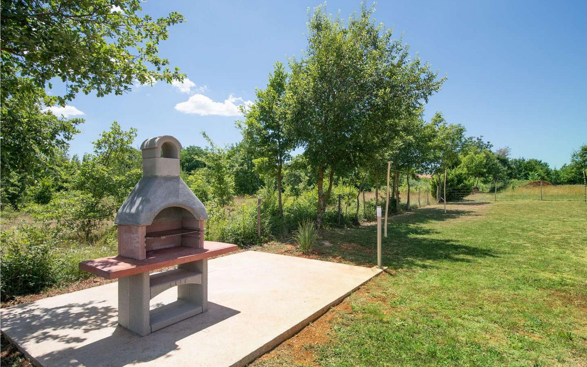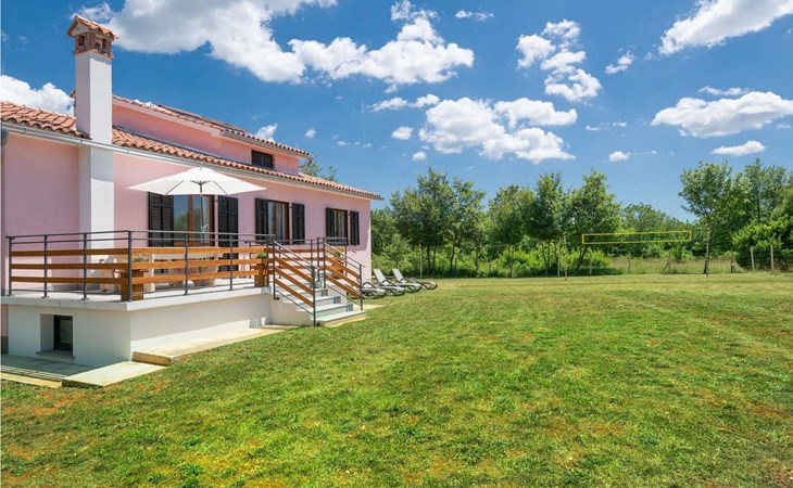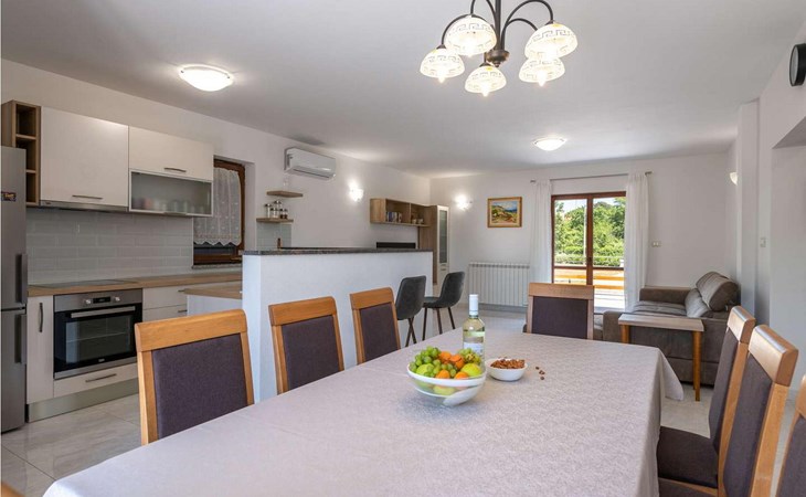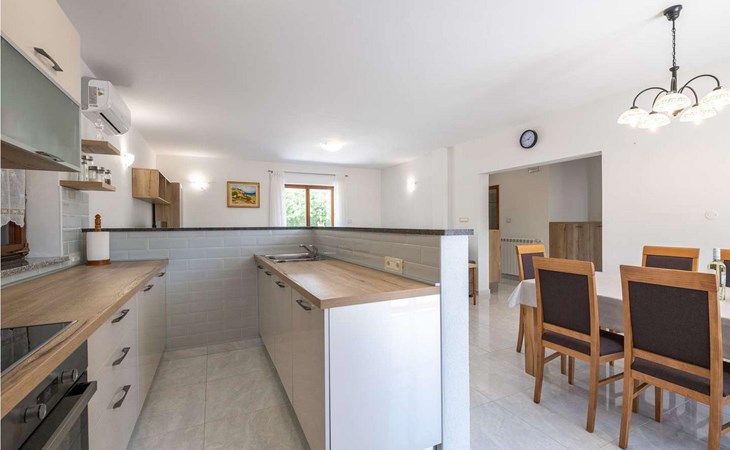 The tourist town Rabac with its beaches and varied gastronomic and sports facilities is 12 km away. On completely enclosed property it offers to the guests two terraces, sun loungers, barbecue, seating set, badminton/volleyball net and several parking spaces.