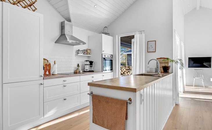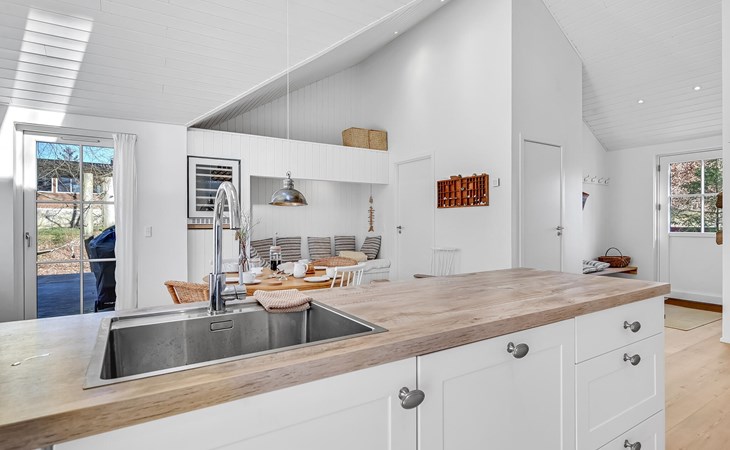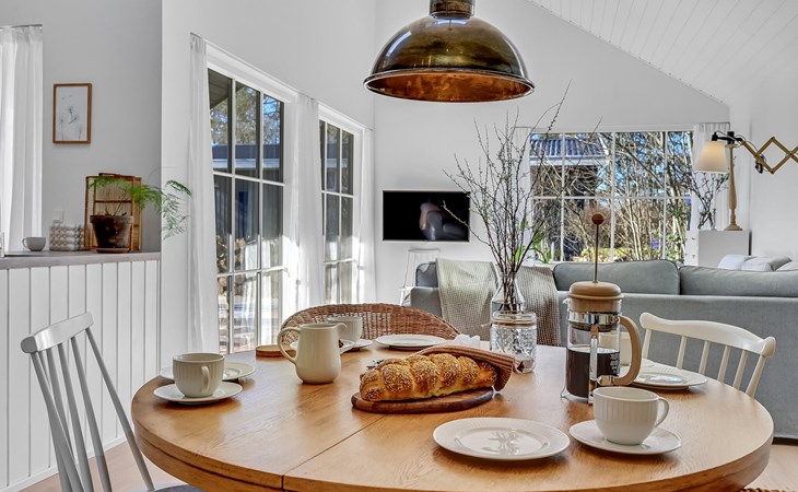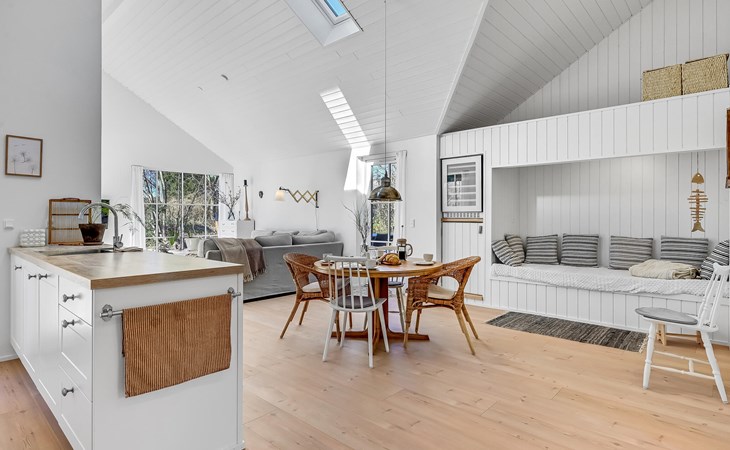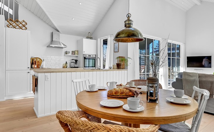 Step into a bright spacious vacation home at Øster Hurup Strand.