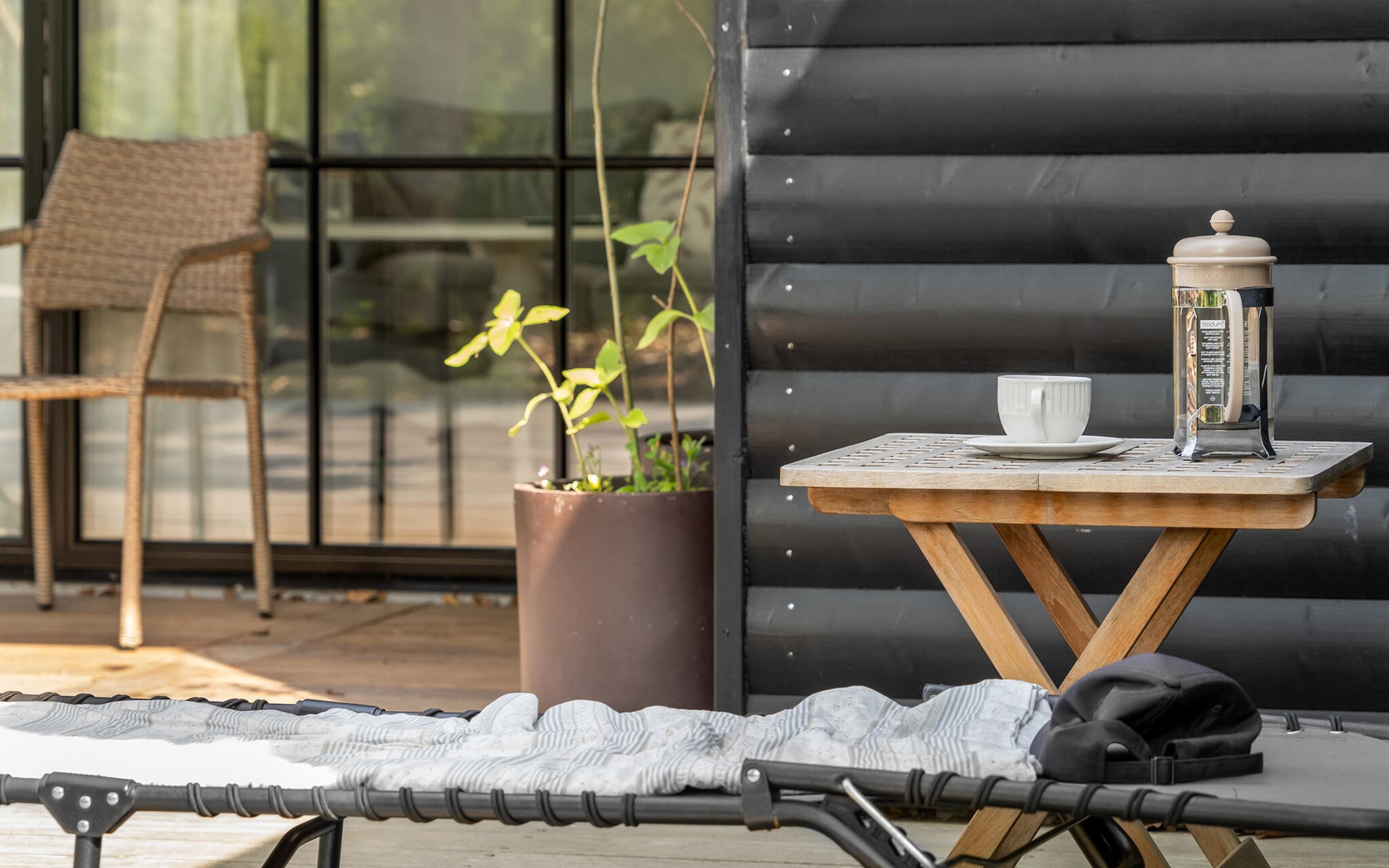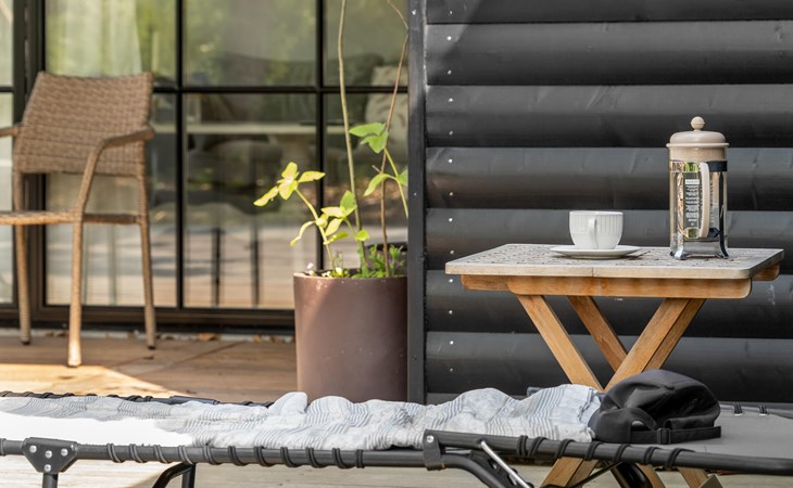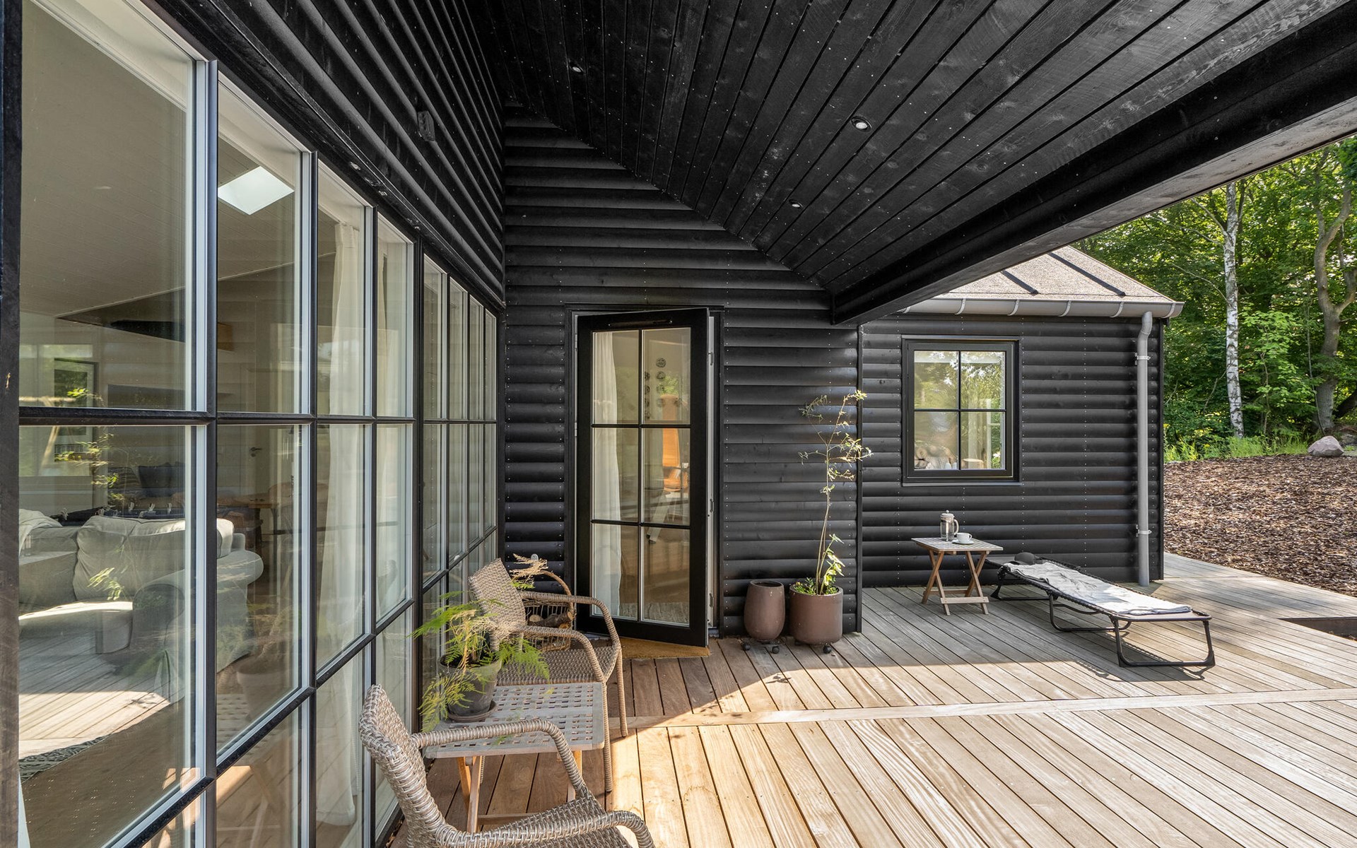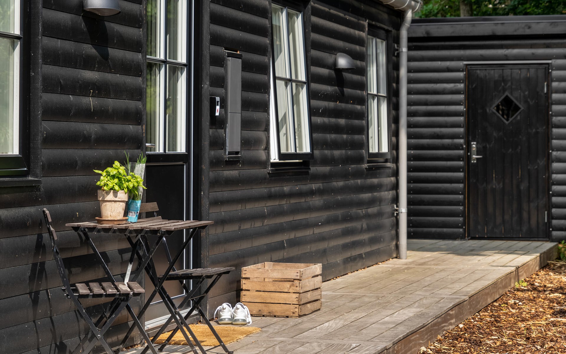 The open terrace with garden furniture and barbecue is a great place to enjoy a barbecue or a delicious breakfast. The Finnish wooden bath and outdoor sauna invite you to relax.