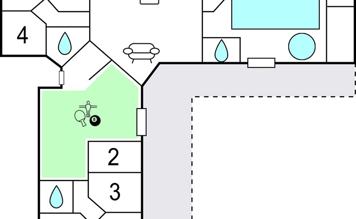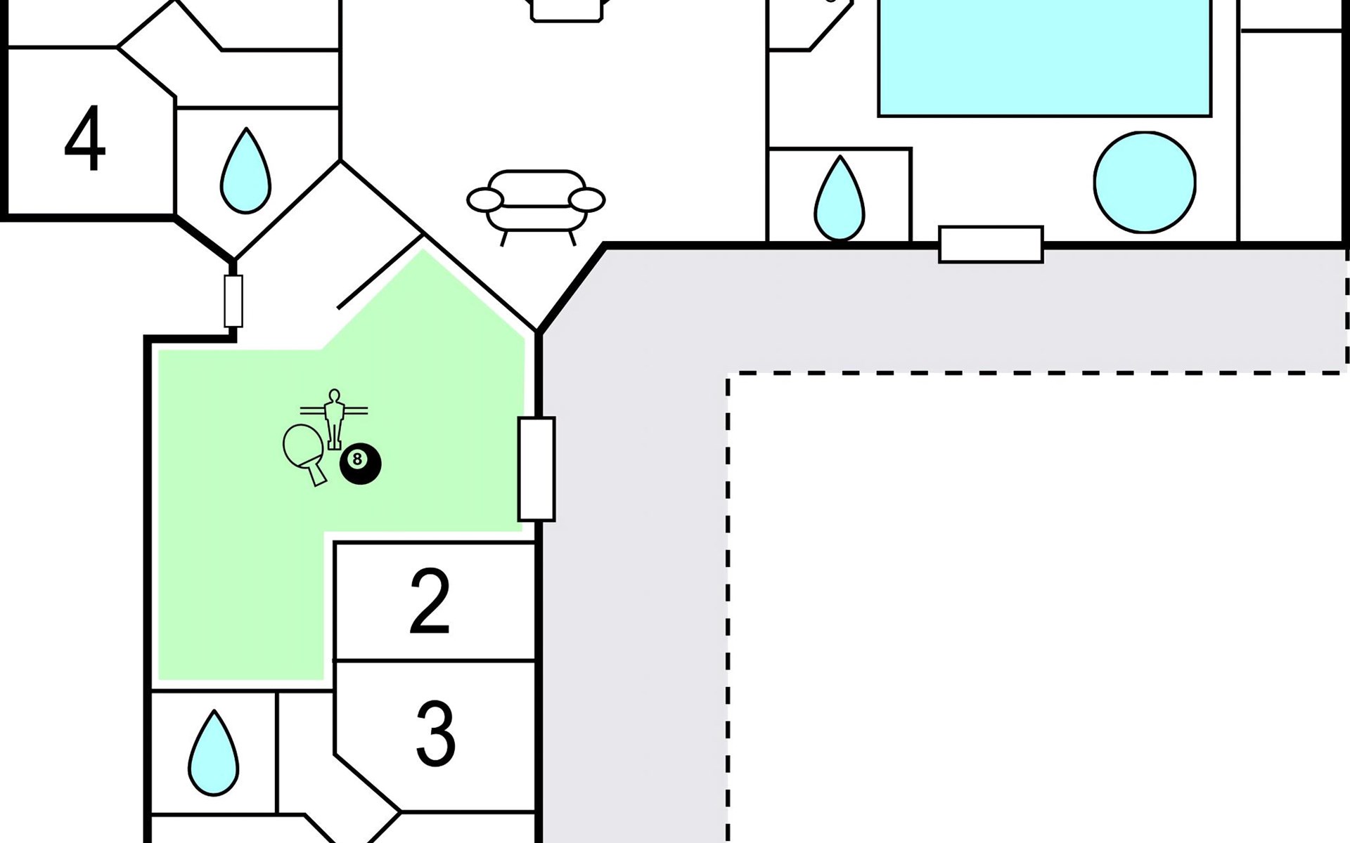 No matter what age group you belong to, Marielyst has a lot to offer you. Perhaps you'd like to doze in the sun on the wide, white beach by the gentle Baltic Sea, or stroll around the town's stores? Take a few laps in the beautiful pool, relax in the whirlpool and play friendly vacation competitions at the billiards or table tennis table. You will also be comfortable in the large kitchen-living room, not least because of the fireplace. In addition to the bedrooms, there are also sleeping spaces on the sleeping lofts. Three bathrooms also ensure little crowding in the morning. Here you can enjoy the outdoors right on several terraces and recharge your batteries. In the summer you also have a large trampoline in the garden. Welcome!