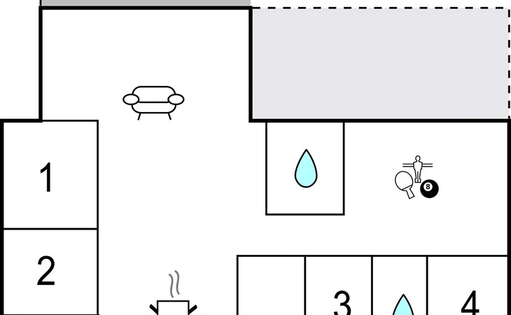 This bright and modern vacation home welcomes up to twelve adults and an additional toddler with its four bedrooms, open loft, two bathrooms, living room with dining kitchen and activity room. You can relax wonderfully in the sauna or the Finnish wooden bath. On the terrace you can have breakfast in the morning or end the day with a glass of wine. A barbecue for cozy barbecue evenings is also at your disposal. In the garden you will find plenty of space to relax and play.