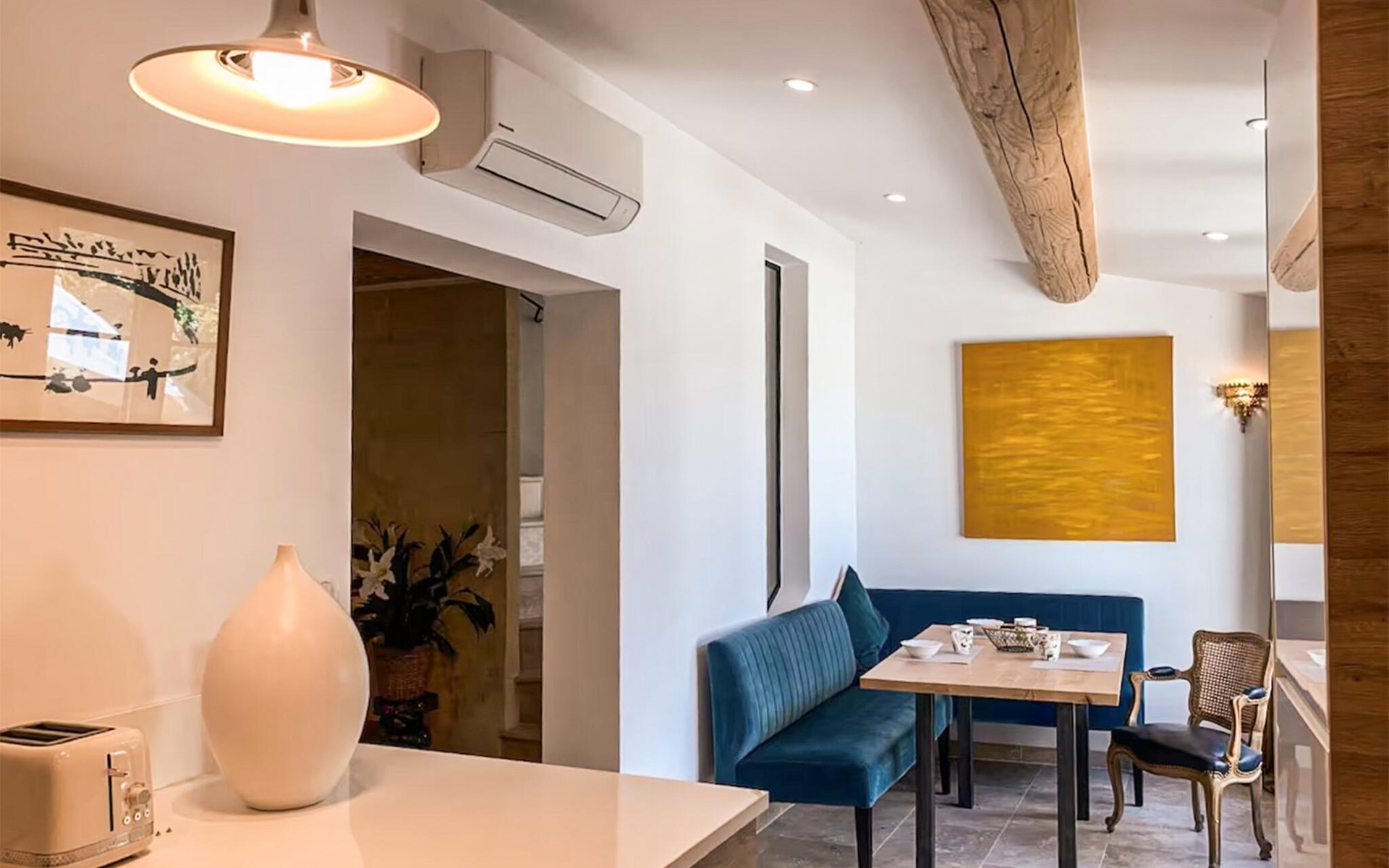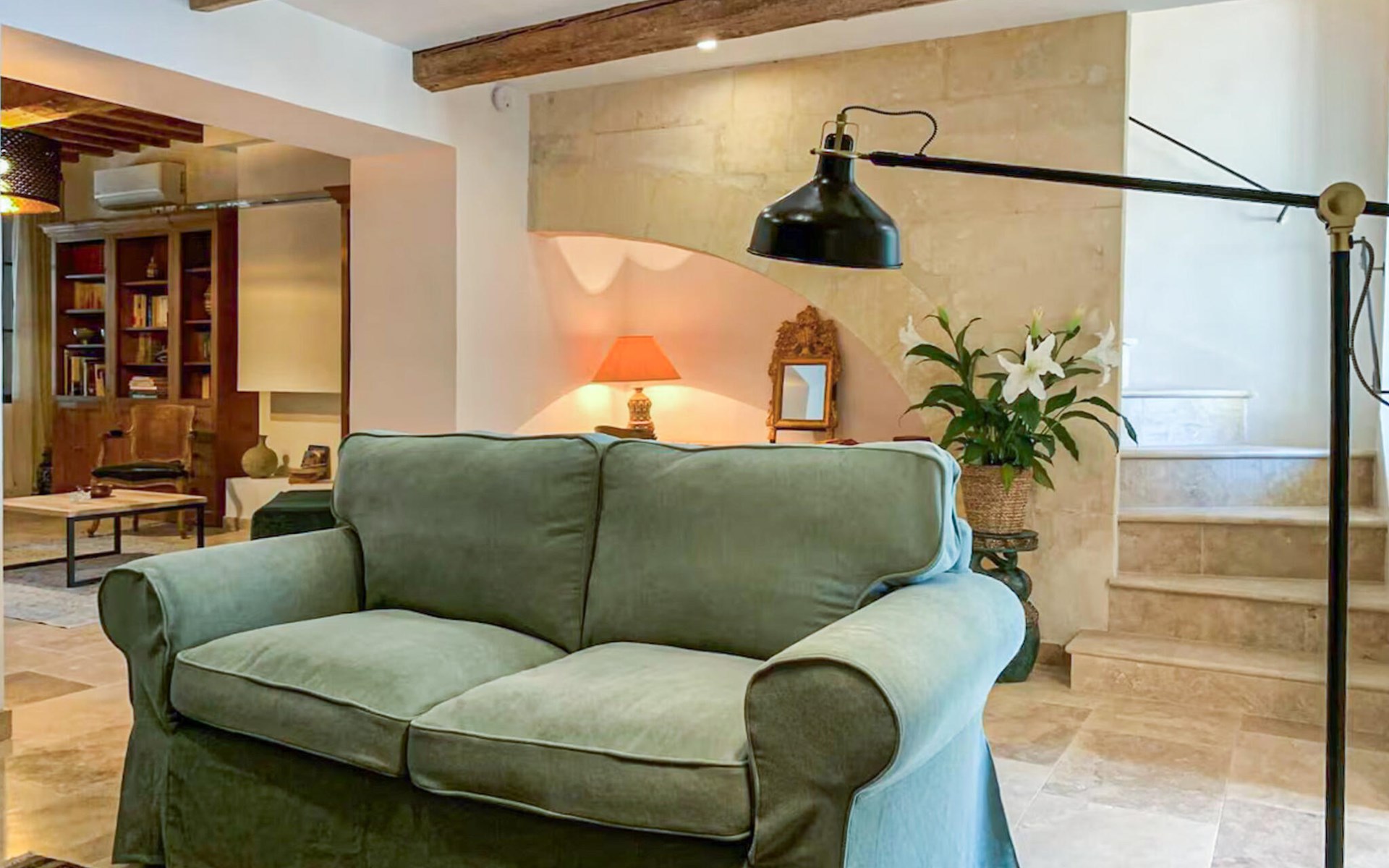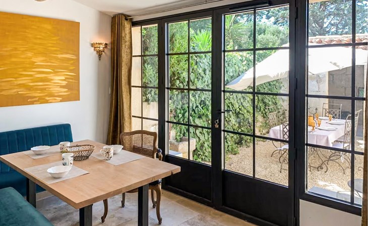 Welcome to this carefully restored and stylishly furnished village house in Fontvieille at the foot of the Alpilles. Conjure up delicious dishes in the modern kitchen and enjoy them in the bright and cosy dining area, where you can enjoy authentic charm and modern comfort. Browse through the in-house library and make yourself comfortable in the elegantly furnished living room.