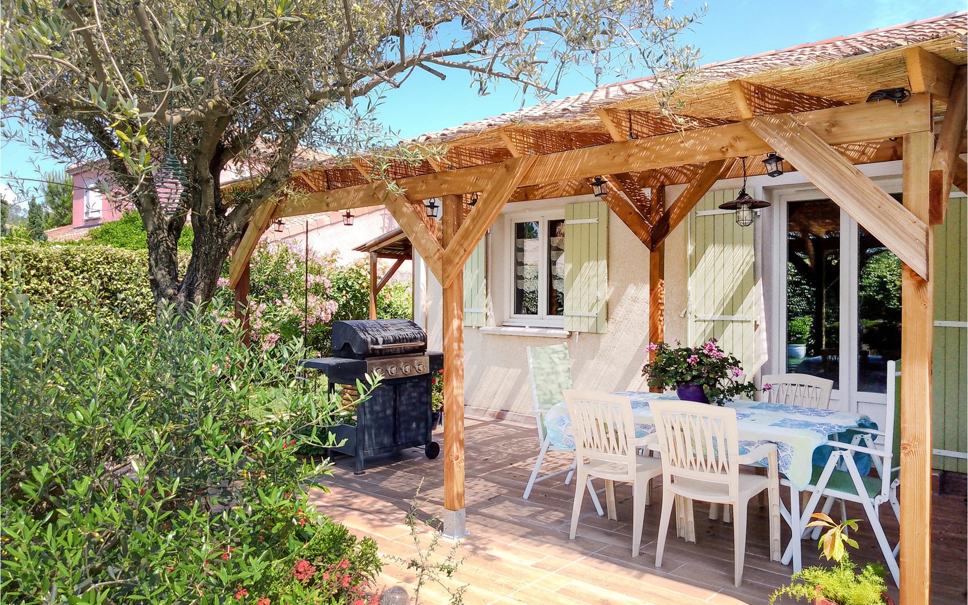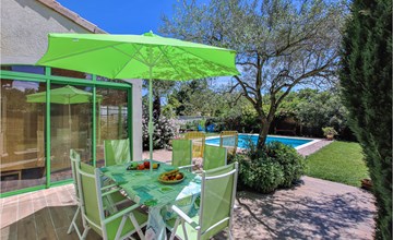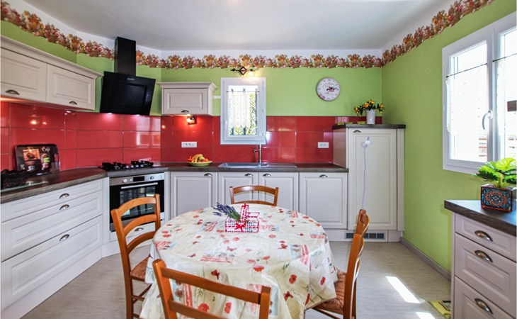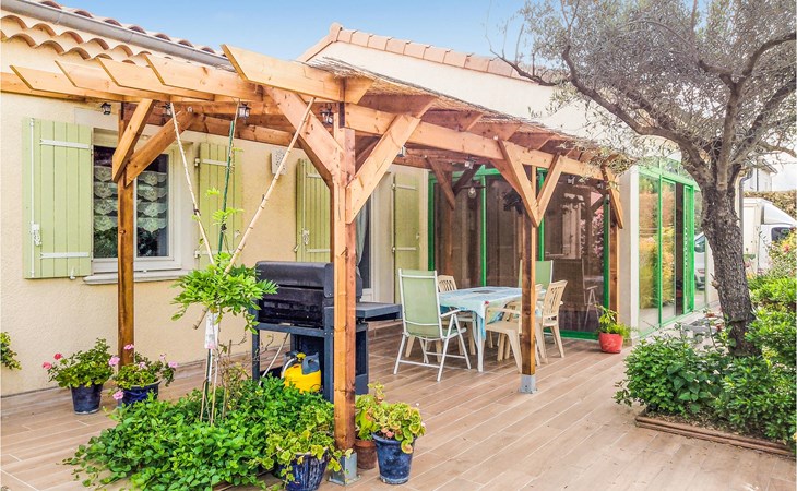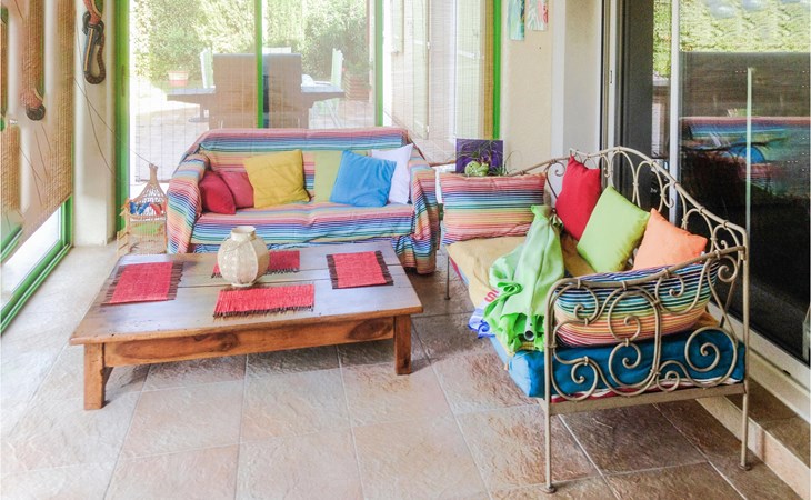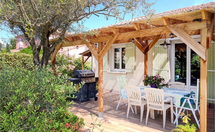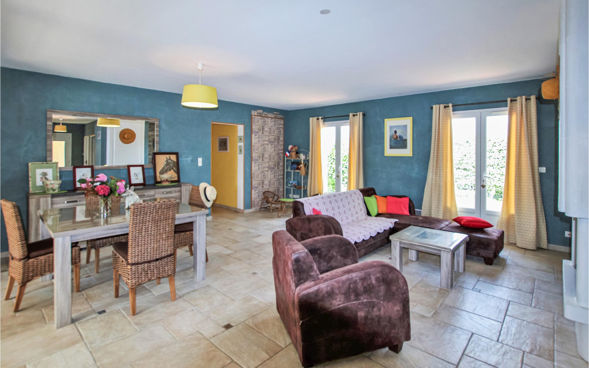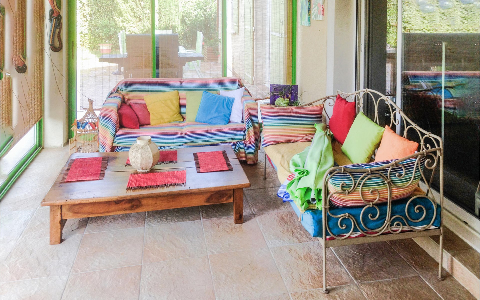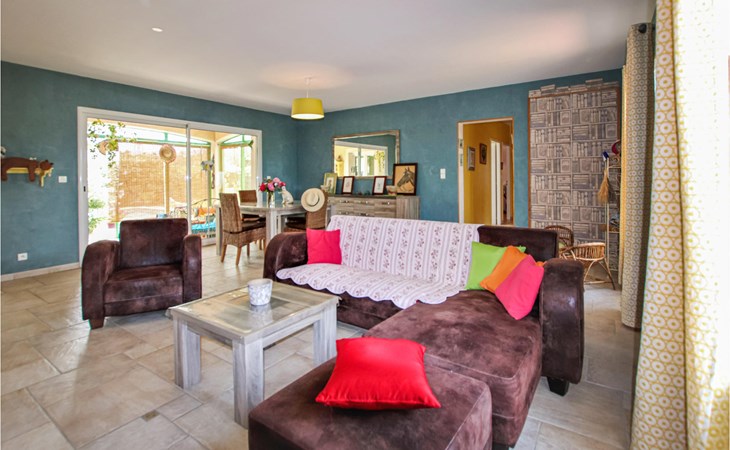 The spacious, bright and warm interior is very comfortable, the shimmering decoration is a mix of Provençal and modern style. The large living room, extended by the fitted kitchen, opens on both sides of the pavilion onto a beautiful veranda and terraces suitable for outdoor meals and evenings around the barbecue.