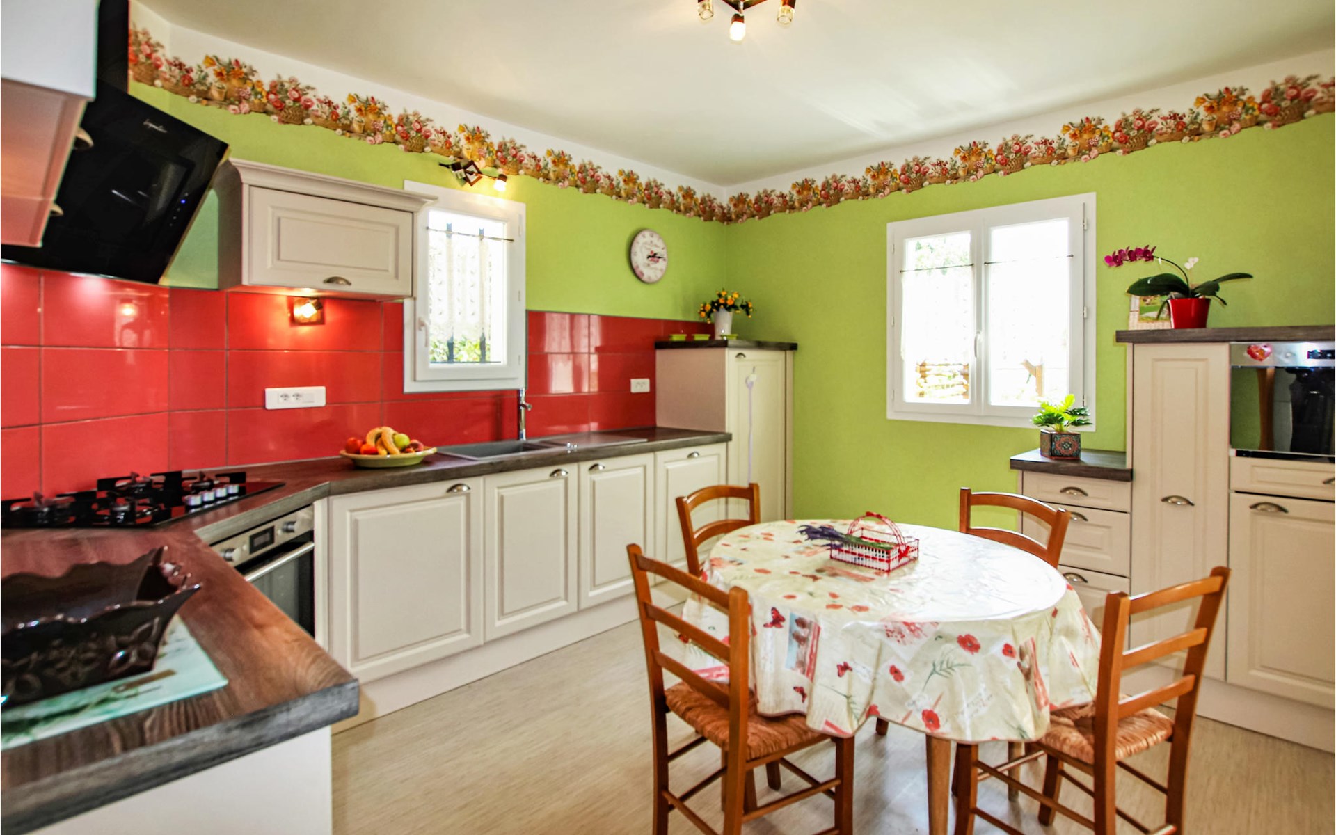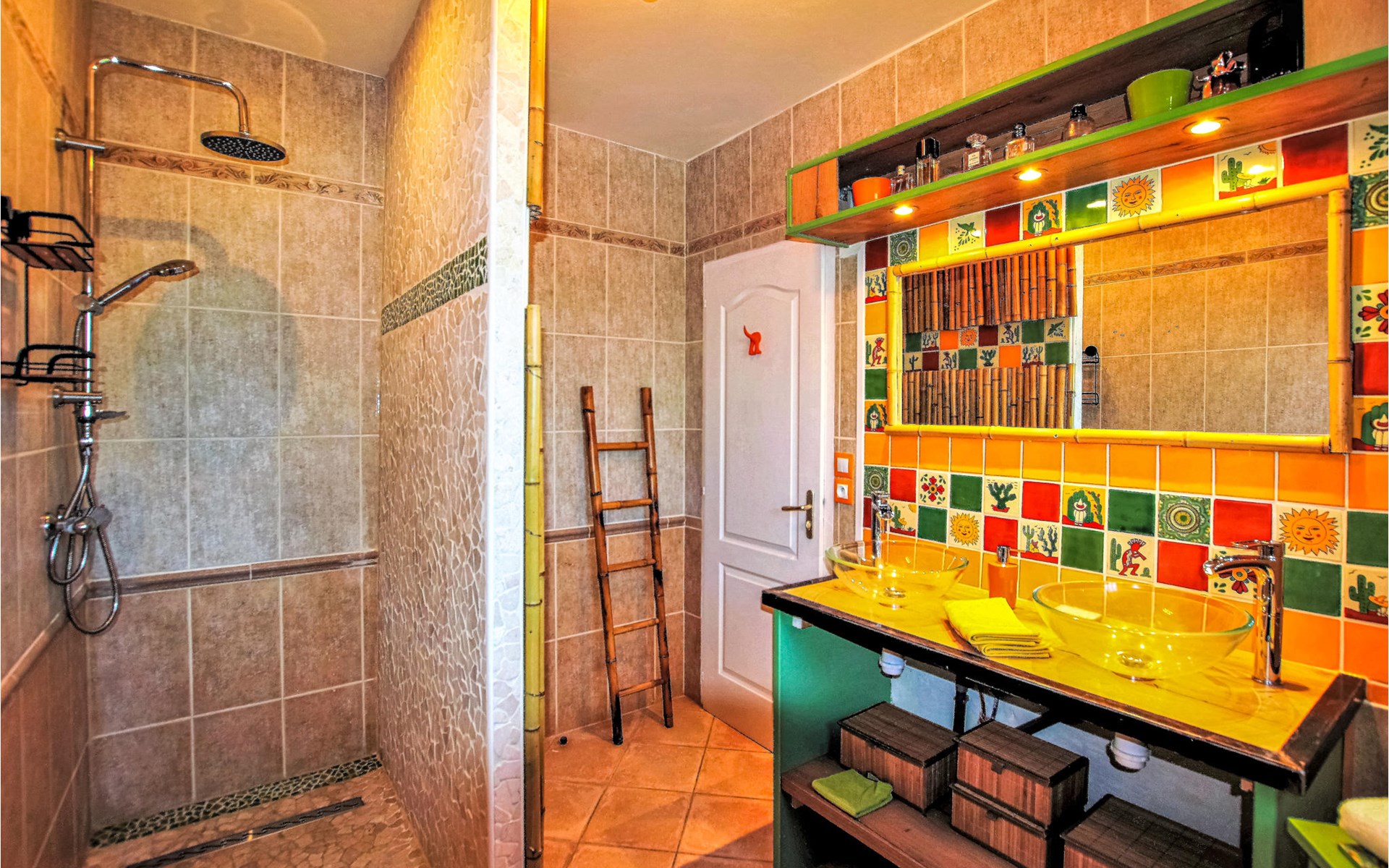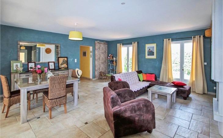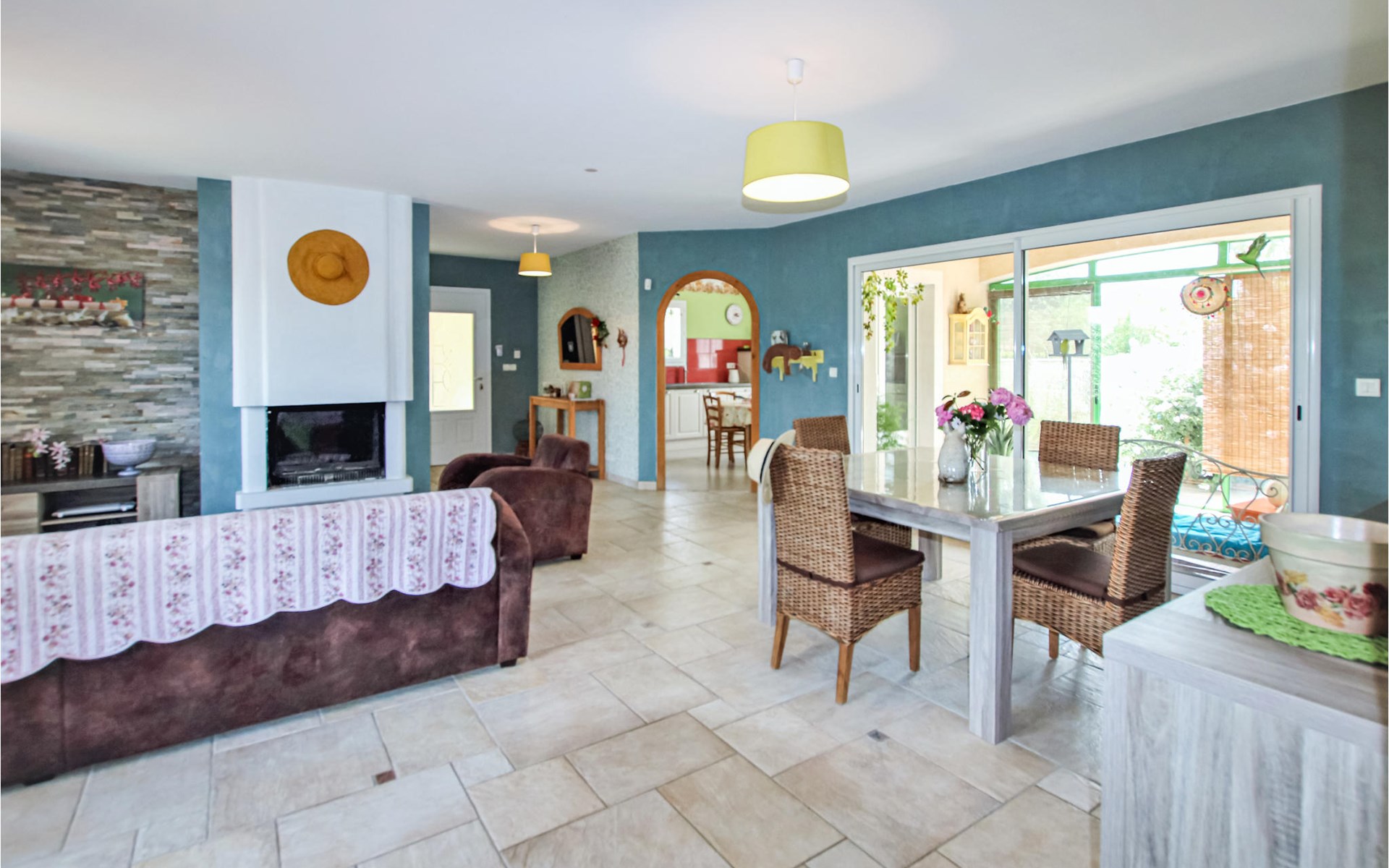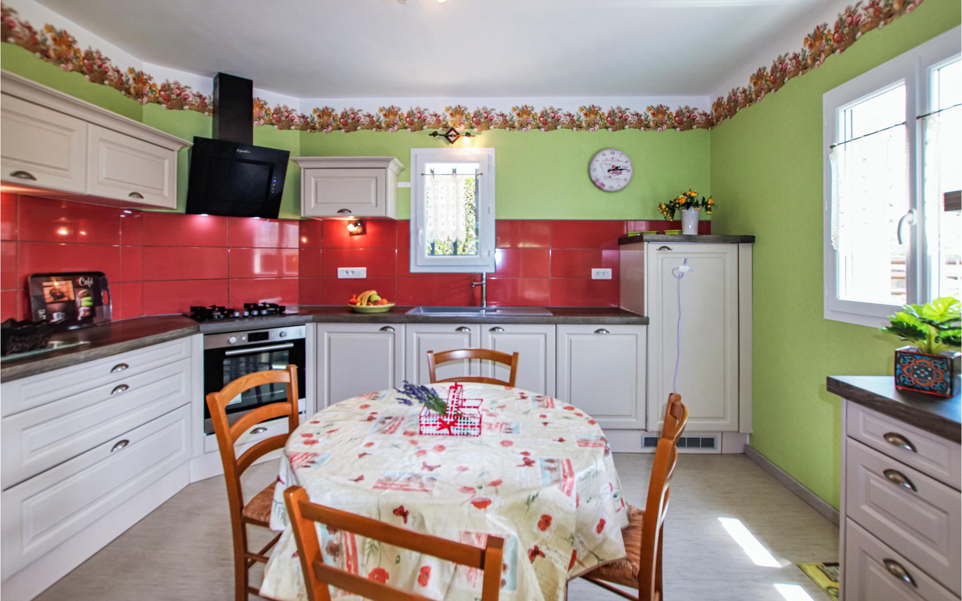 The spacious, bright and warm interior is very comfortable, the shimmering decoration is a mix of Provençal and modern style. The large living room, extended by the fitted kitchen, opens on both sides of the pavilion onto a beautiful veranda and terraces suitable for outdoor meals and evenings around the barbecue.