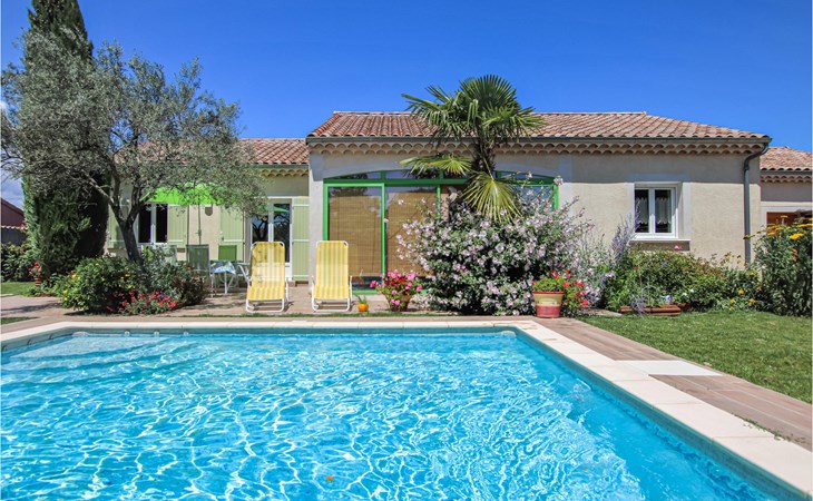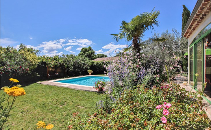 This charming vacation home is located in the south of the Drôme Provençale, at the gates of the capital of Nougat, on the left bank of the Rhône, in a quiet area. It offers a pretty private pool, which is hidden from view and is nestled in a magnificent, lush and flowery garden.