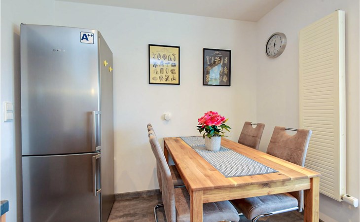 Plan your family vacation in the heart of Germany. This beautiful apartment offers you all the comfort you want with your family. The beautiful apartment on the first floor of the apartment building offers you practical bedrooms and a bathroom oasis where you can take a relaxing bath. The cozy living area invites you to relax and watch your favorite movie after an eventful day. The kitchen with a large fridge offers you the space to prepare delicious meals and dine together at the large dining table.