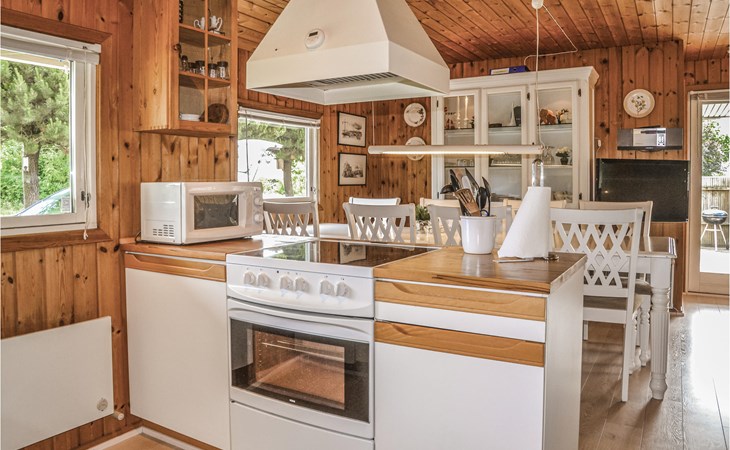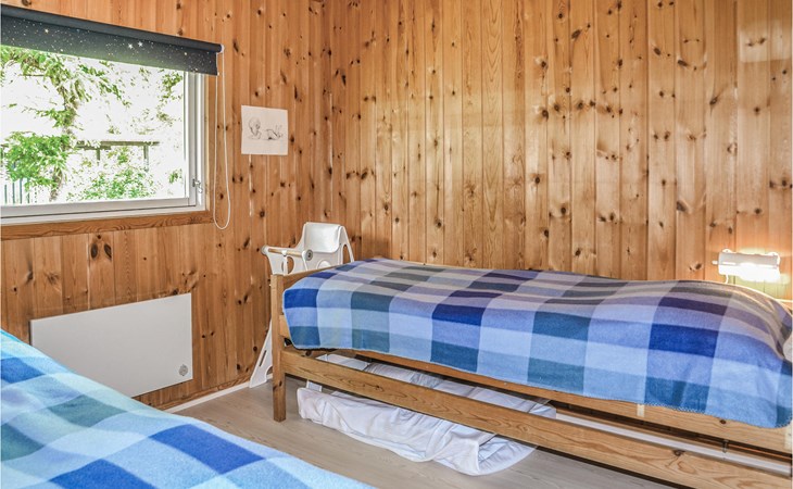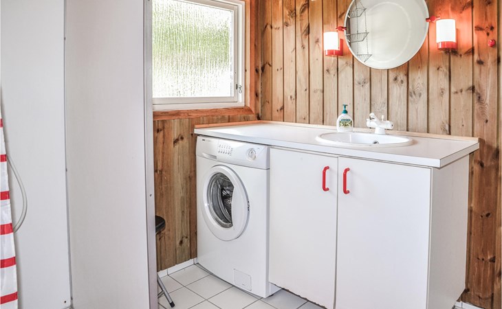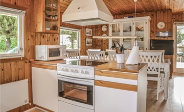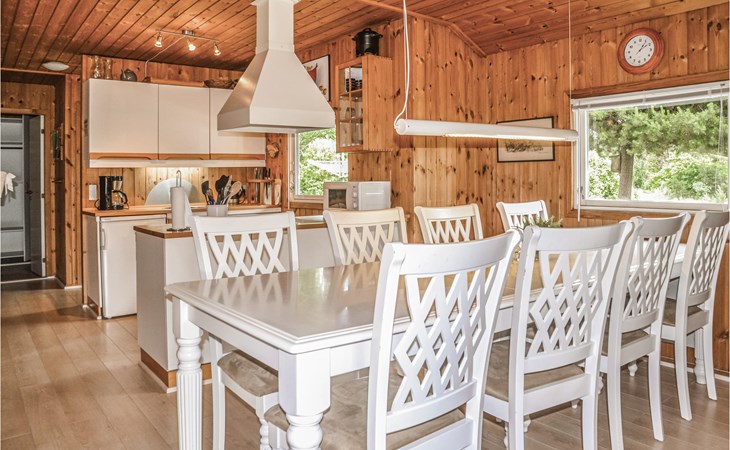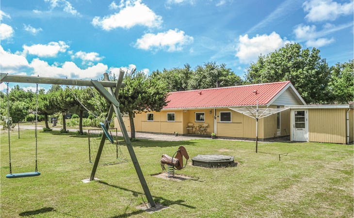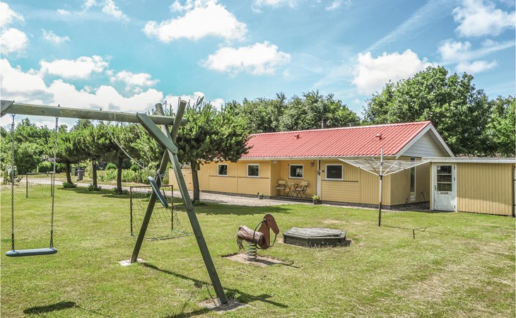 Cozy wooden house on a partly open nature plot and in the middle of Jegum Ferieland. On the property are activity facilities for children and adults. The house has an open architecture and a fireplace in the living room. Directly in front of the living room is a fenced terrace. Within walking distance you can shop for groceries at the activity center. There is also a large playground, tennis courts, soccer fields, a large barbecue area with cabins and a petting zoo with goats. In the area there are walking and lawn paths, several golf courses and fishing lakes. Visit Oksbøl.