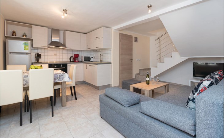 This modern terraced house is located near a beautiful pebble beach. Parking is on the street, but usually next to the nearby bar there are usually free parking spaces for parking. Both floors are connected by an interior staircase. A sandy beach about 300 meters away can be used for an entrance fee. Many historical sights can be admired in Zadar. Rich gastronomic offer, many events in summer and the fact that Zadar was voted the best European destination in 2016 will make your vacation unforgettable.