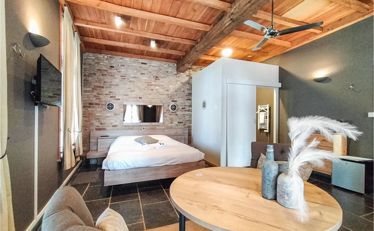 The stately building called De Gouden Kop dates back to 1600 and is located on the beautiful market square of the authentic town, Damme. The property has been converted with great attention to detail into a comfortable vacation home. The vacation home consists of a very large suite with double bed, TV and private bathroom on the first floor. On the second floor is the huge living room with beautiful views over the market square of Damme and the fully equipped kitchen with access to the open terrace. There is also a separate toilet on the second floor. On the second floor there are two bedrooms, a bathroom and a separate toilet. The bedroom for three people is located in the attic.