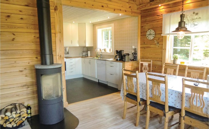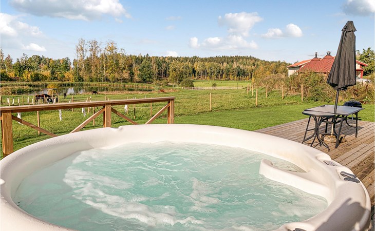 This charming holiday home invites you to linger with its secluded location and a fantastic view of an idyllic pond. The rustic interior combines open-plan rooms with high ceilings to create an inviting atmosphere. Enjoy your coffee from the espresso machine with a view through the large windows or in the cosy barbecue hut. A perfect place to switch off and enjoy nature.