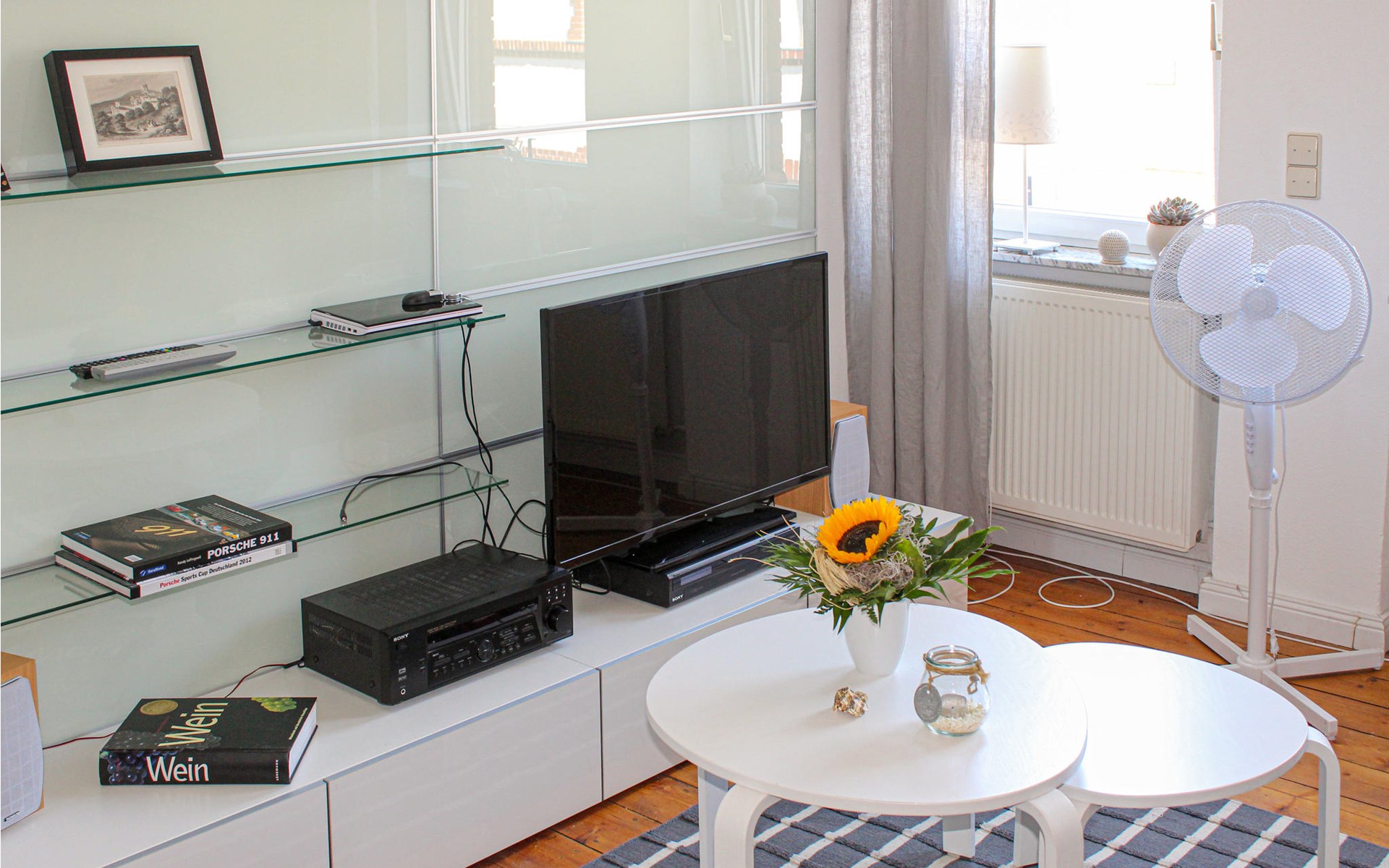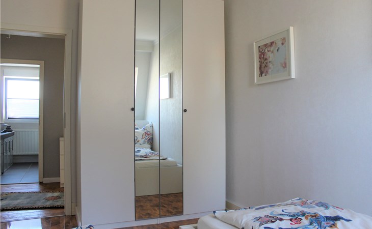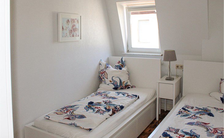 The living area has a comfortable sofa, Smart TV, receiver, radio, DVD/CD player, safe and a small notebook. The bedroom has two single beds and a spacious built-in wardrobe. The bright bathroom with a large bathtub, separate shower, large washbasin and WC can be accessed directly via the hallway with additional storage space. All windows can be darkened with electric blinds. A washing machine is located on the mezzanine floor in the hallway. A carport is available behind the house; loading and unloading takes place directly at the house. You can also park your bicycles here.