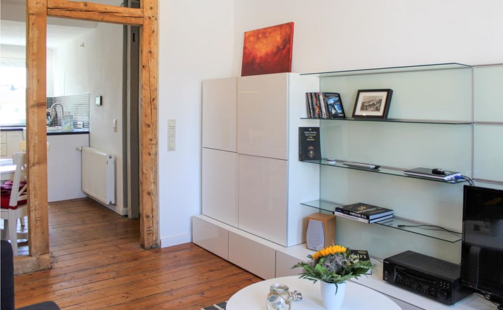 The Friedrich holiday apartment in Lahnstein exudes a feel-good factor with its modern and tasteful furnishings. The wooden flooring and modern furnishings are just as impressive as the preserved half-timbering that separates the living/kitchen area. In the kitchen area, you will find a fully equipped kitchen with induction hob, dishwasher and American fridge with ice cube function.