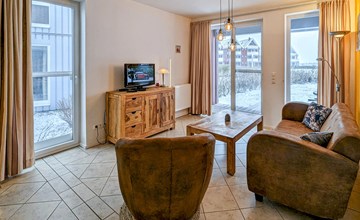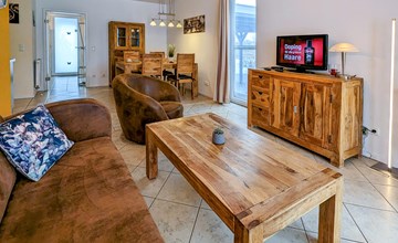 The 'Gartendeck' apartment is located on the first floor of the Kapitänshaus and can accommodate up to four people. From the terrace you can enjoy a wonderful view of the Müritz and your private garden. The children can play here while you relax on the terrace.
