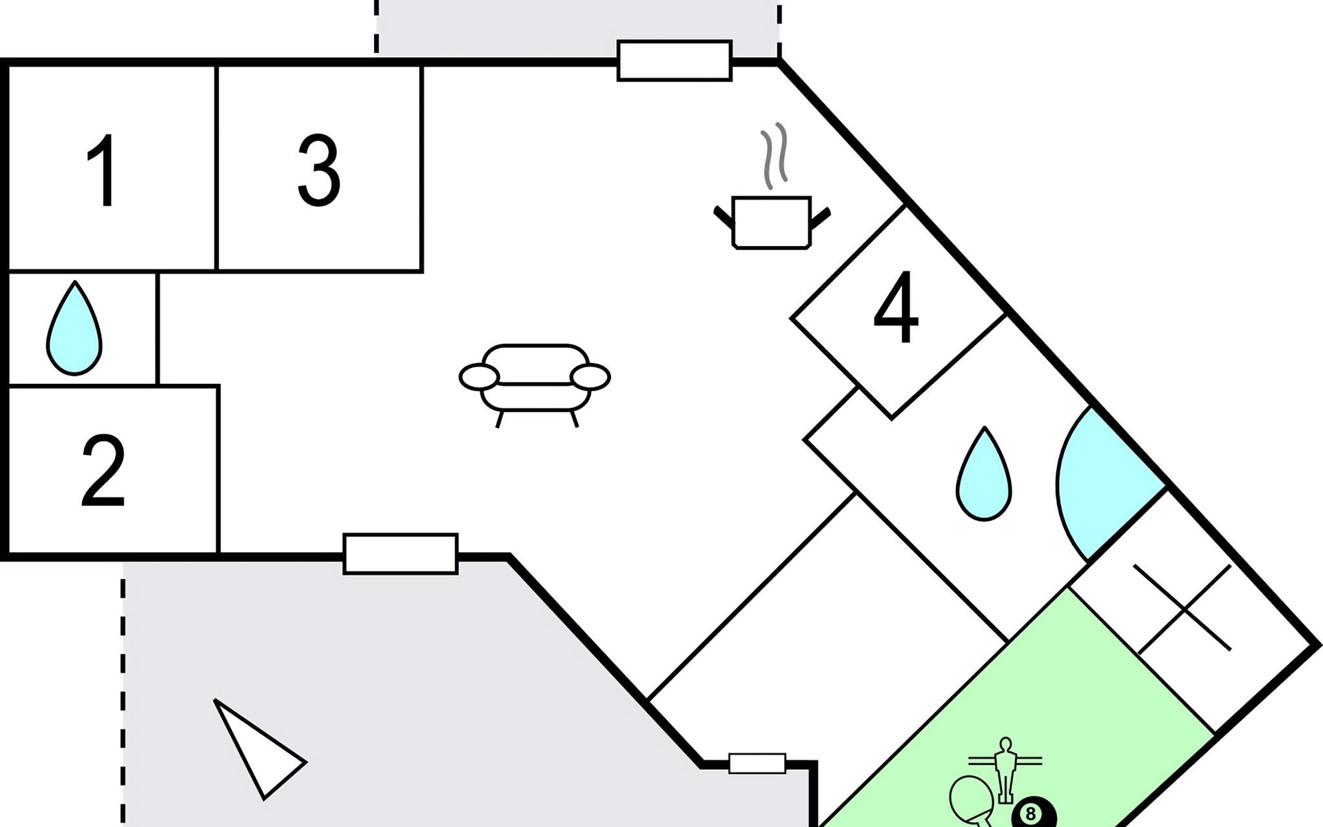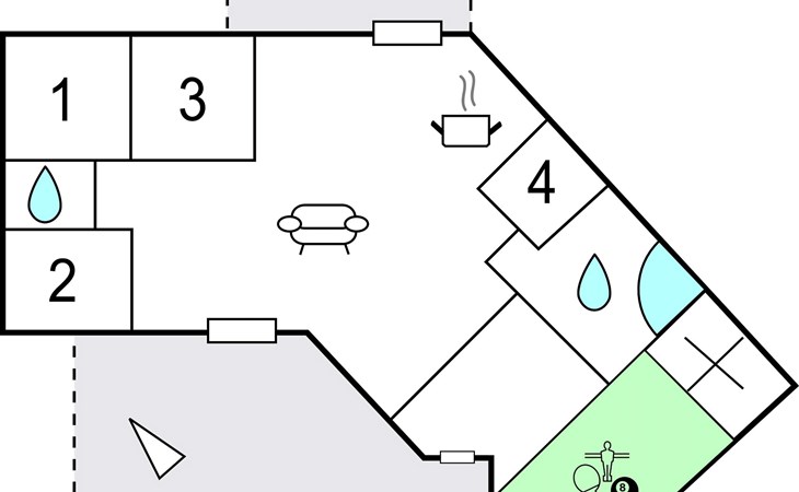 Beautiful, exciting and well furnished vacation home where you can both relax and enjoy an active vacation with the family. It is centrally located in a newer and beautiful cottage area near the beach, harbor and town. Central to the house is the large, open kitchen/multi-purpose room with access to the terraces where you can spend time throughout the day. The activity room, which includes various games, will delight the whole family. Enjoy an evening stroll to the beautiful and cozy harbor with several good restaurants.