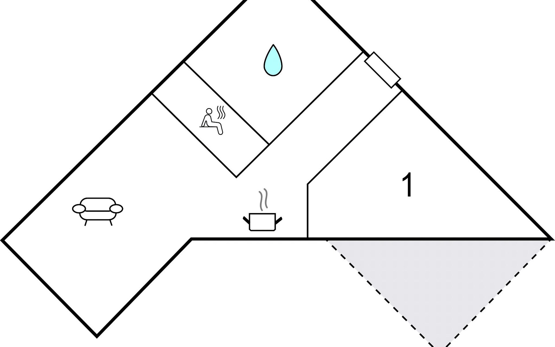 The living area has a glass bay window, making the holiday apartment particularly bright and flooded with light. The kitchenette, sofa bed and bio-ethanol fireplace are also located here. You can reach the balcony from the separate bedroom. Here you can have breakfast together or simply enjoy the fresh Baltic Sea air.