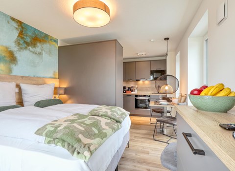 Living in a listed building - exclusive designer holiday apartment on approx. 40 m² in Prora Solitaire, directly on the Baltic Sea (apartment type "Baltic")
