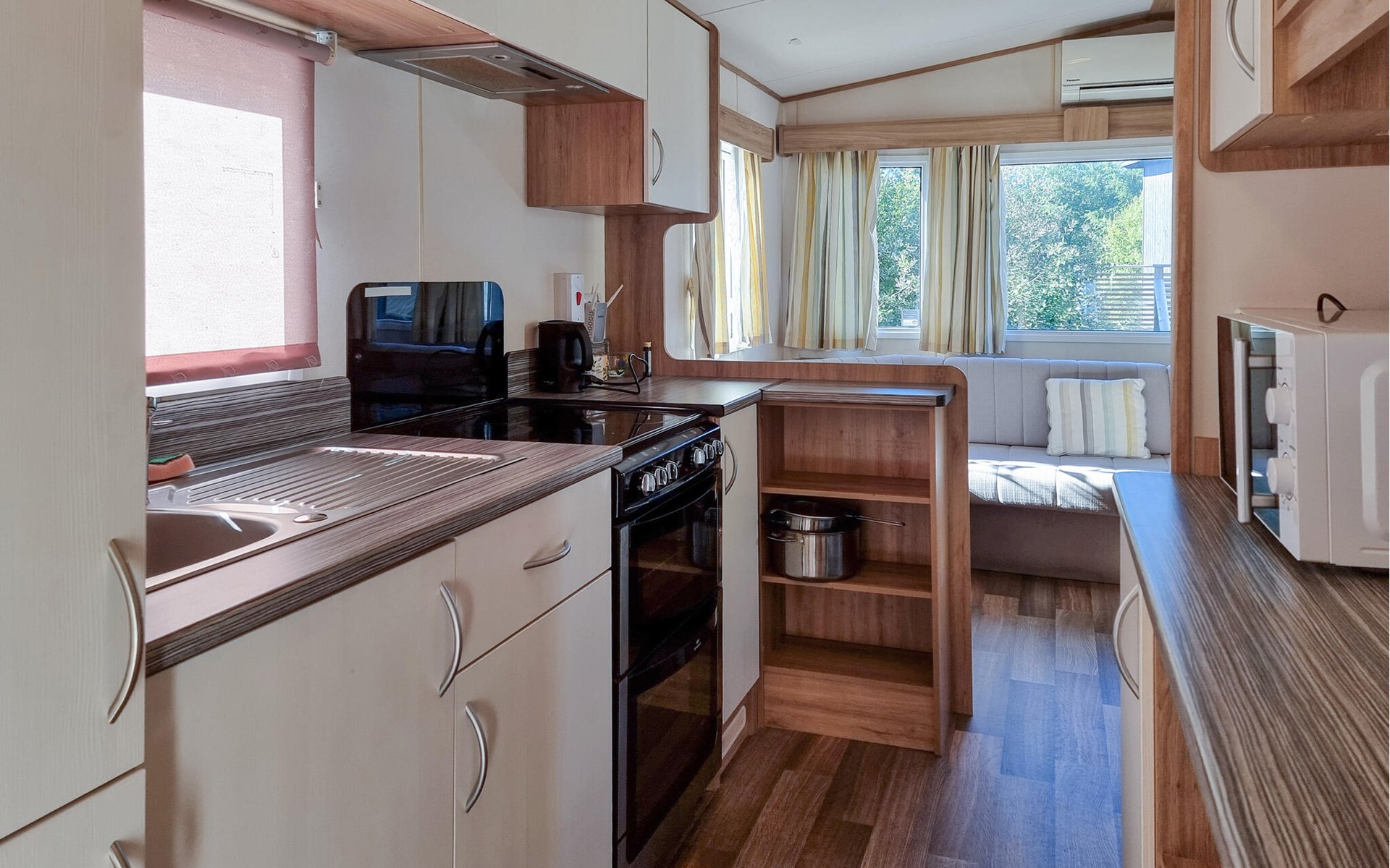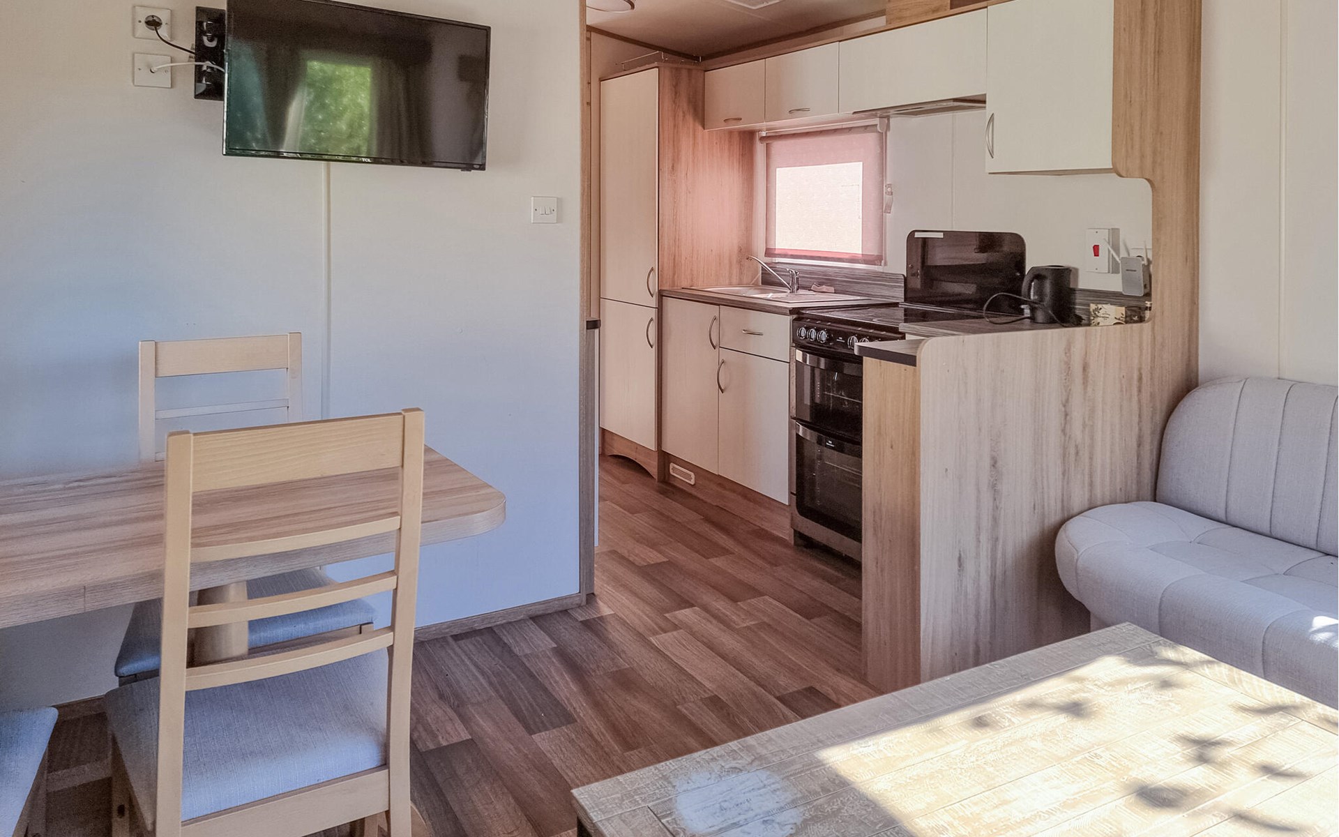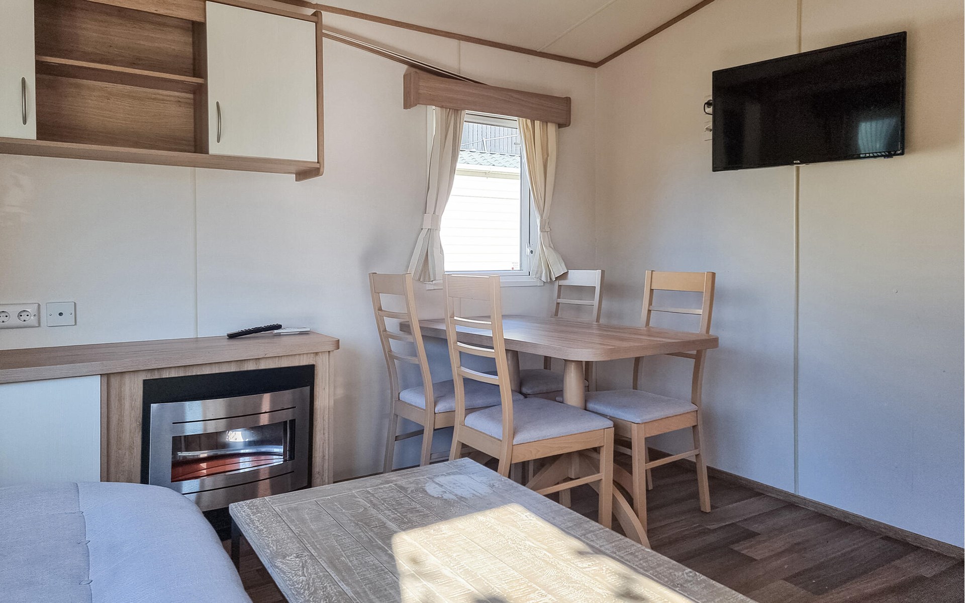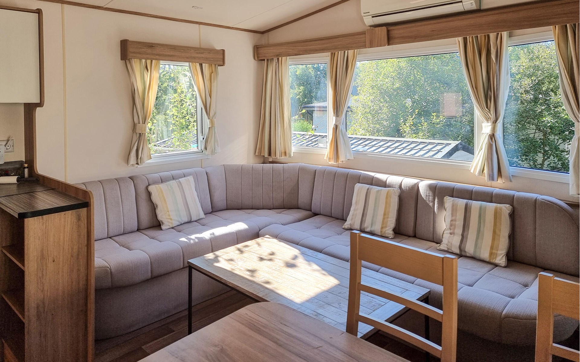 You can also make yourself comfortable in the cosy conservatory or in the outdoor area. Relax on the deckchairs and enjoy the sun and fresh air in the spacious garden. End the day by the campfire while the children play on the swings or run around the lawn.