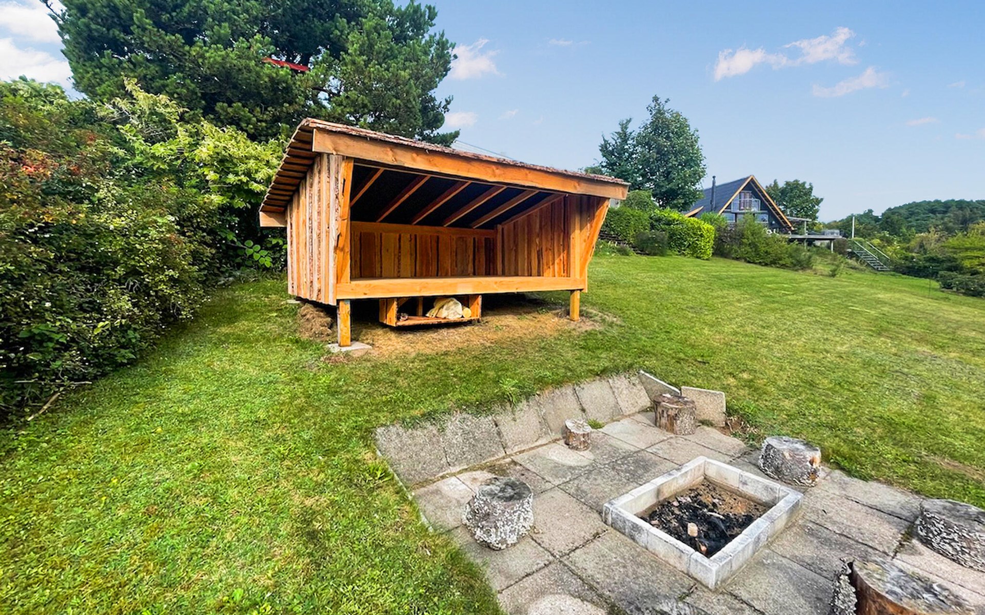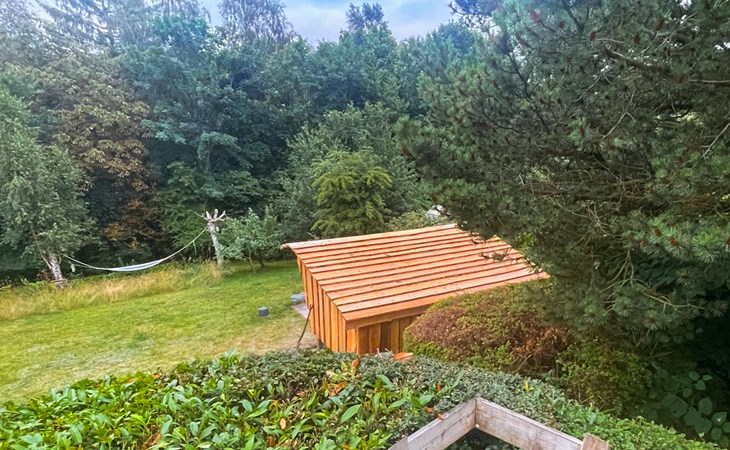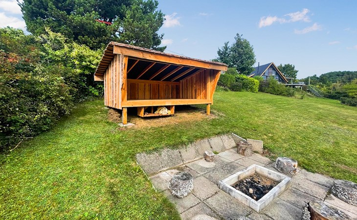 Enjoy your stay in this charming holiday home on Handrup Strand. The large window front in the living room lets in plenty of natural light and offers you a wonderful view of the spacious terrace and garden. Make yourself comfortable on the sofa and relax. The wood-burning stove creates a cosy atmosphere on cooler days. The classic furnishings create a cosy ambience, while the spacious terrace and garden with shelter hut are ideal for families. Here you can relax and socialise around the campfire in the evening.